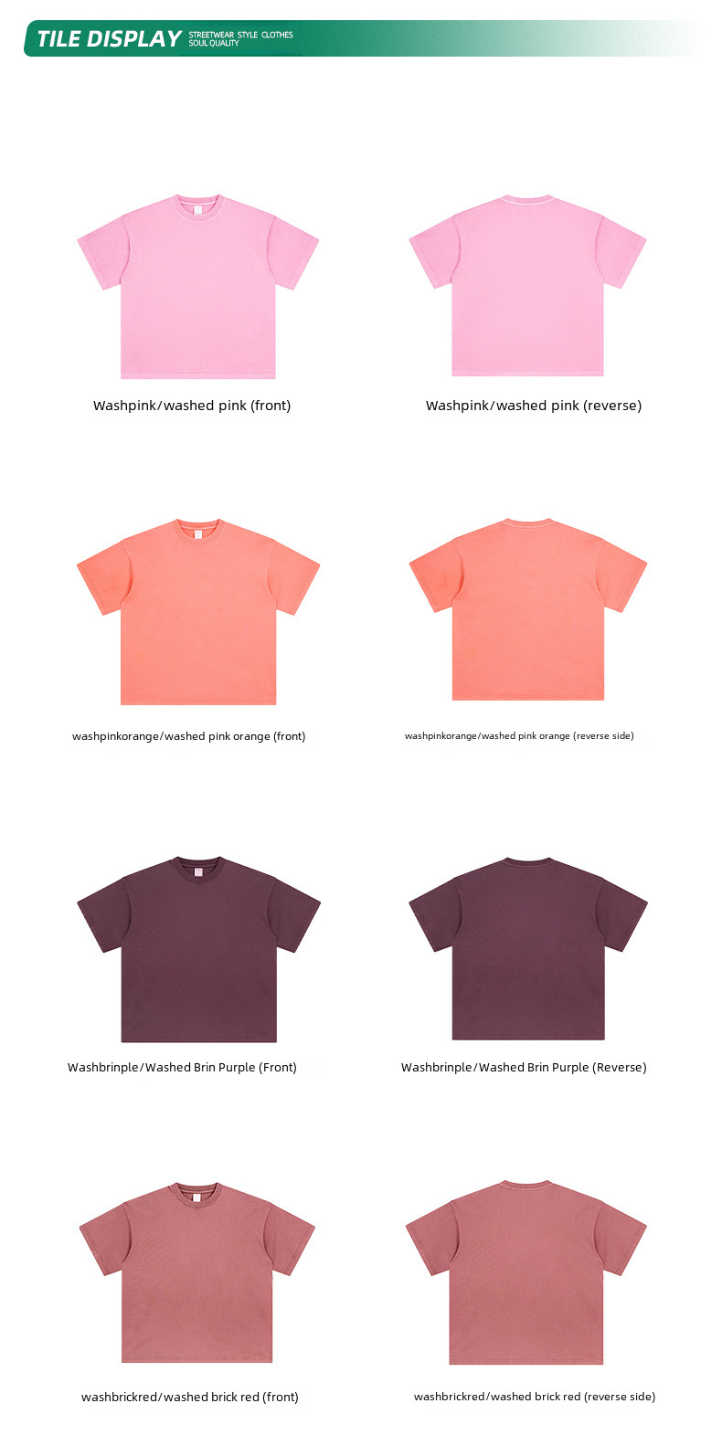 复古黑色, 水洗白色, 水洗深灰, 水洗中灰, 水洗卡其, 水洗杏色, 水洗驼色, 水洗砖红, 水洗灰蓝, 水洗灰绿, 水洗青铜绿, 水洗粉色, 水洗粉橙, 水洗巴黎蓝, 水洗布林紫, 水洗森绿, 水洗藏青蓝, 水洗咖啡