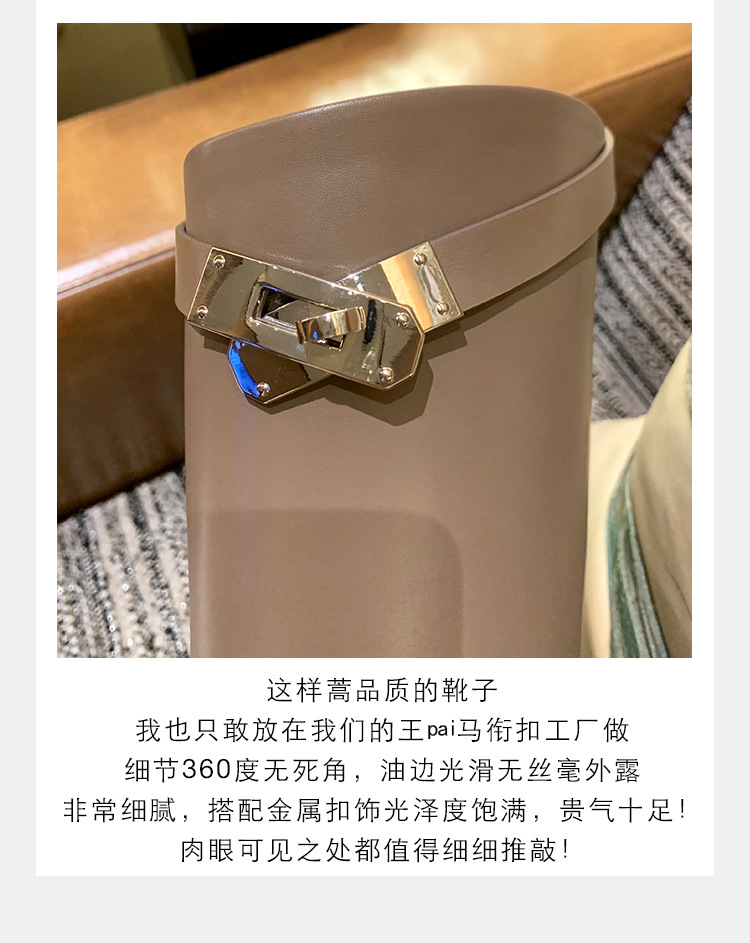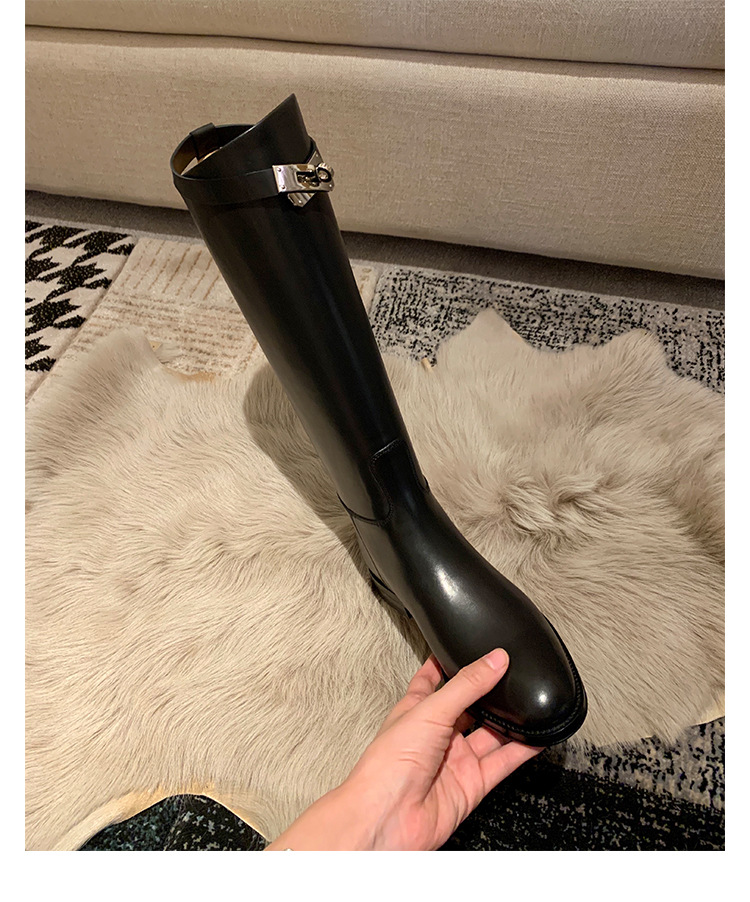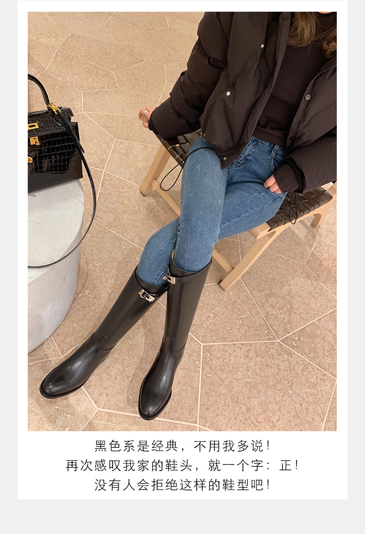 2024 new round head metal buckle boots women's winter but knee Joker casual high knight boots batch