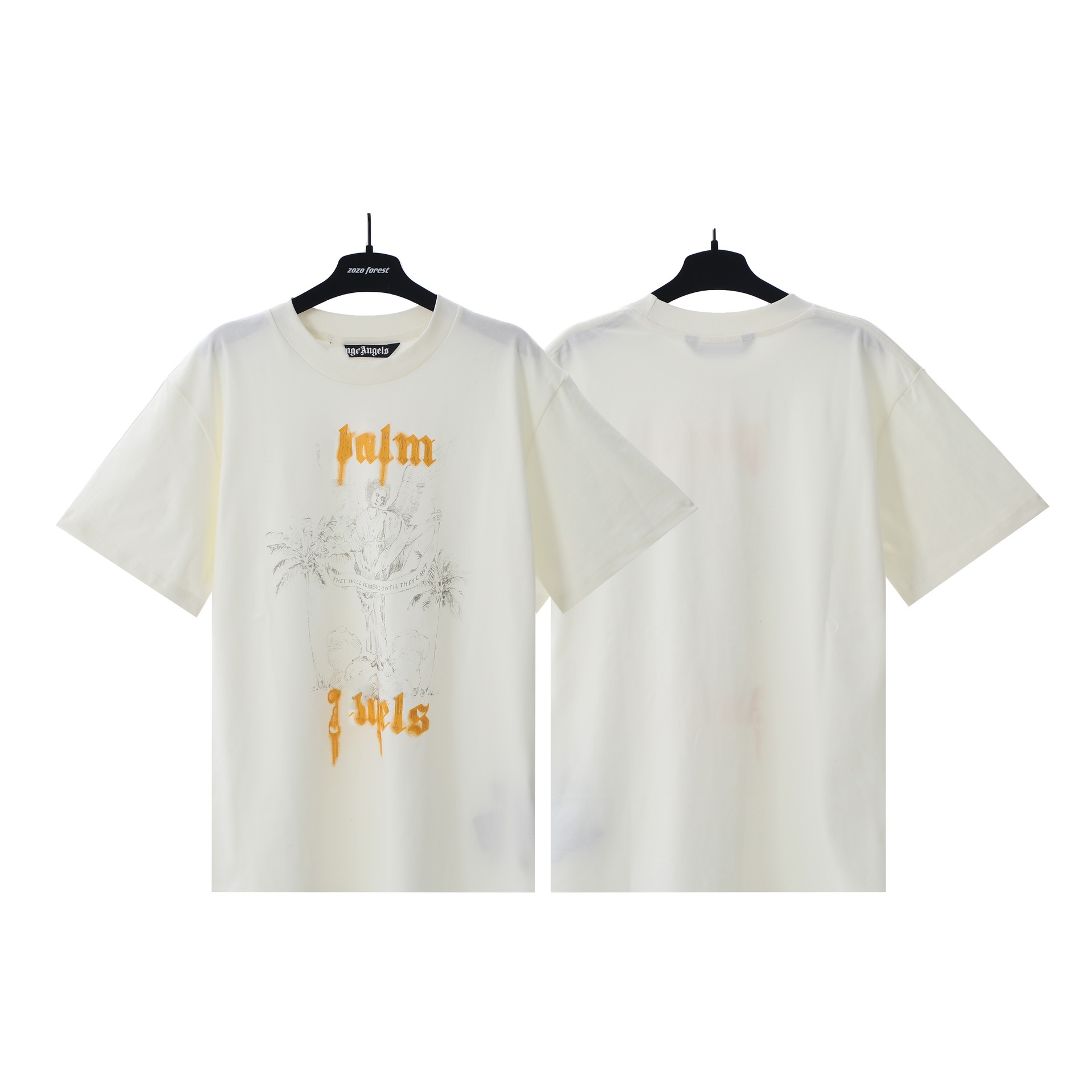 Right Palm Palm Angel angels Cross Border Splash Ink Letter Printed Round Neck Short Sleeve Loose in stock T-Shirt