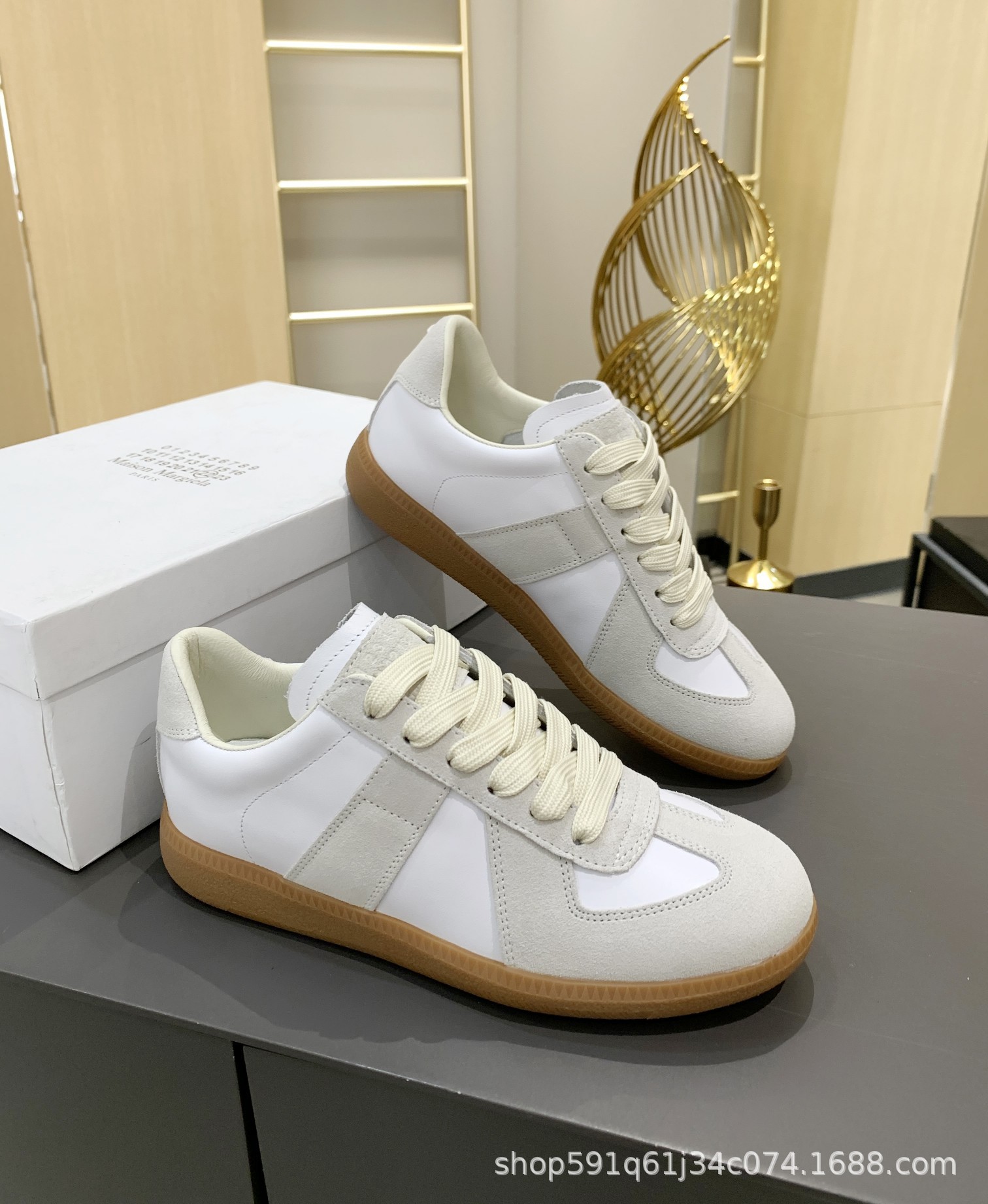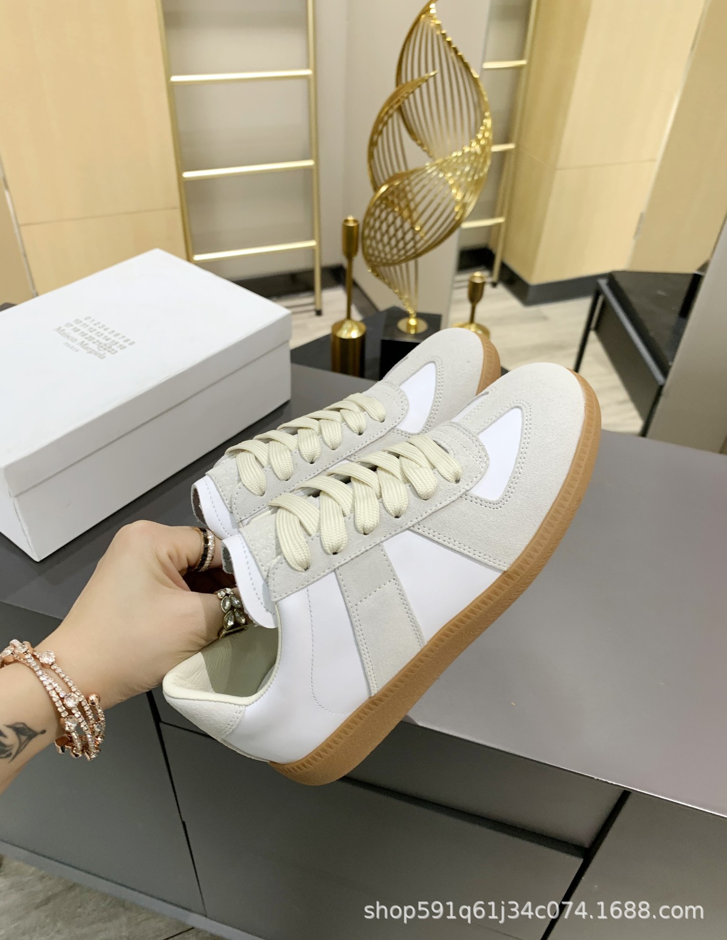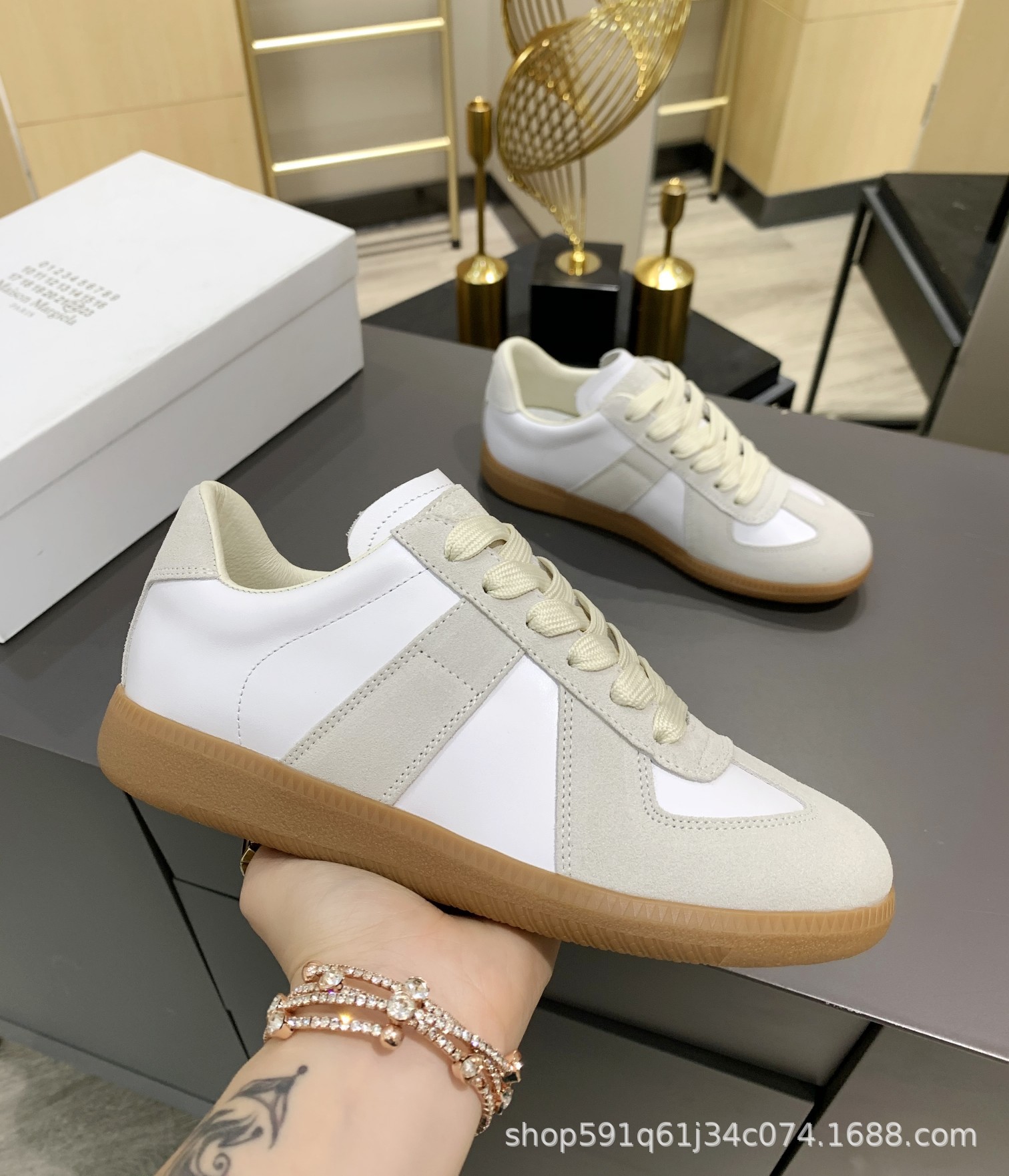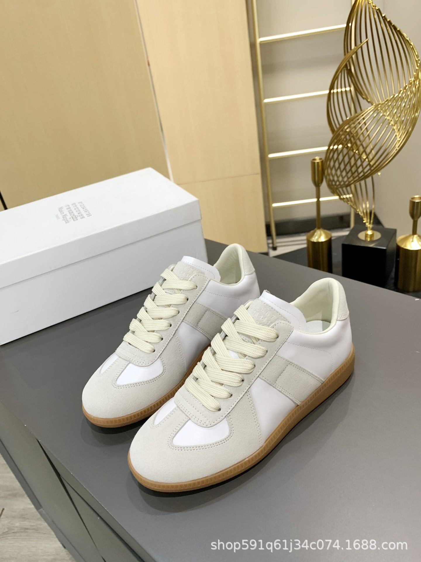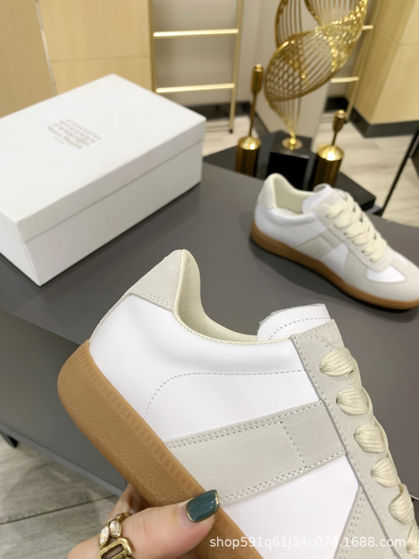 24MM6 Vintage German Training Shoes New Leather White Shoes Men's Lace-up Round Toe Flat Casual Sports Couple's Board Shoes