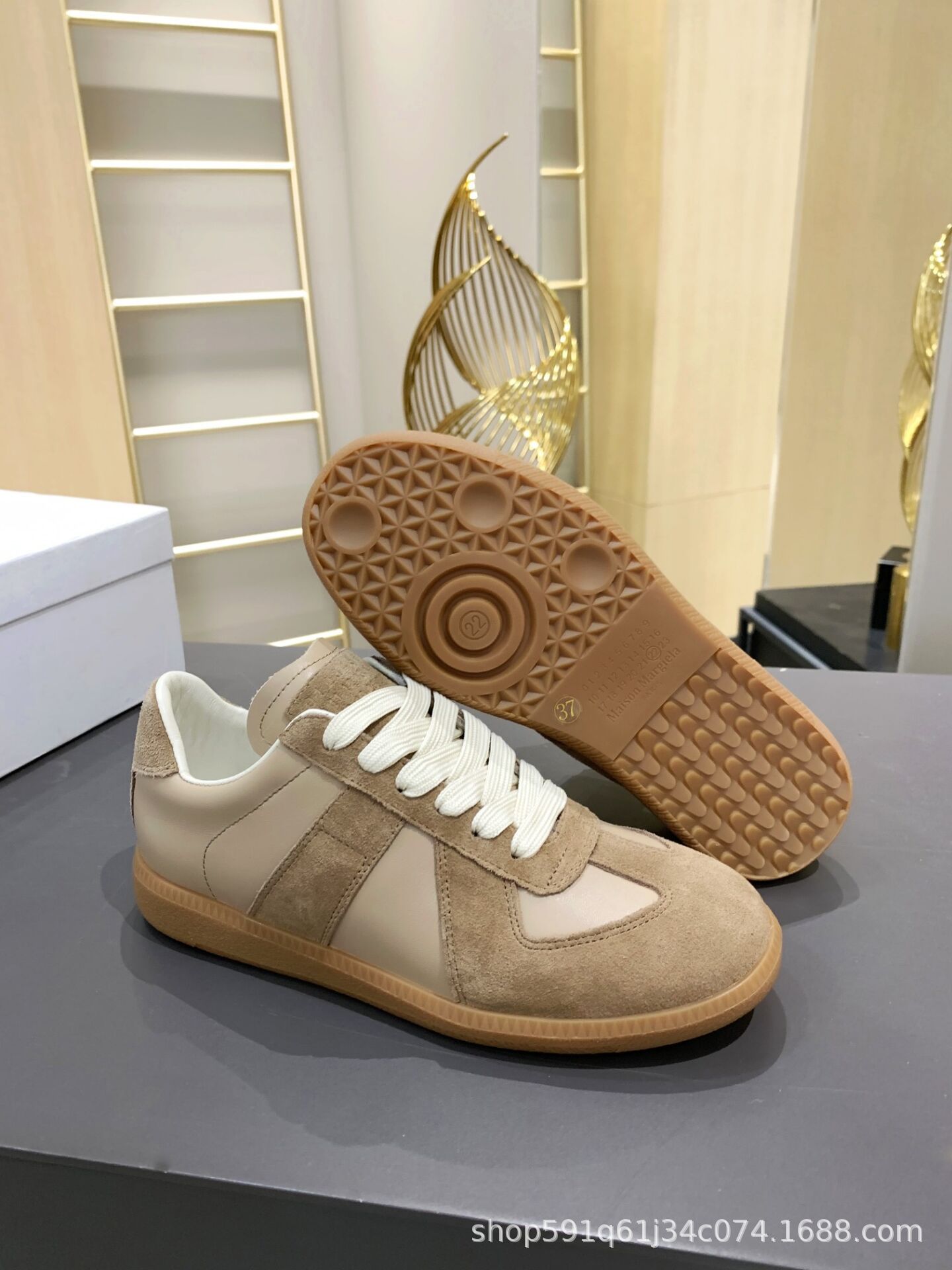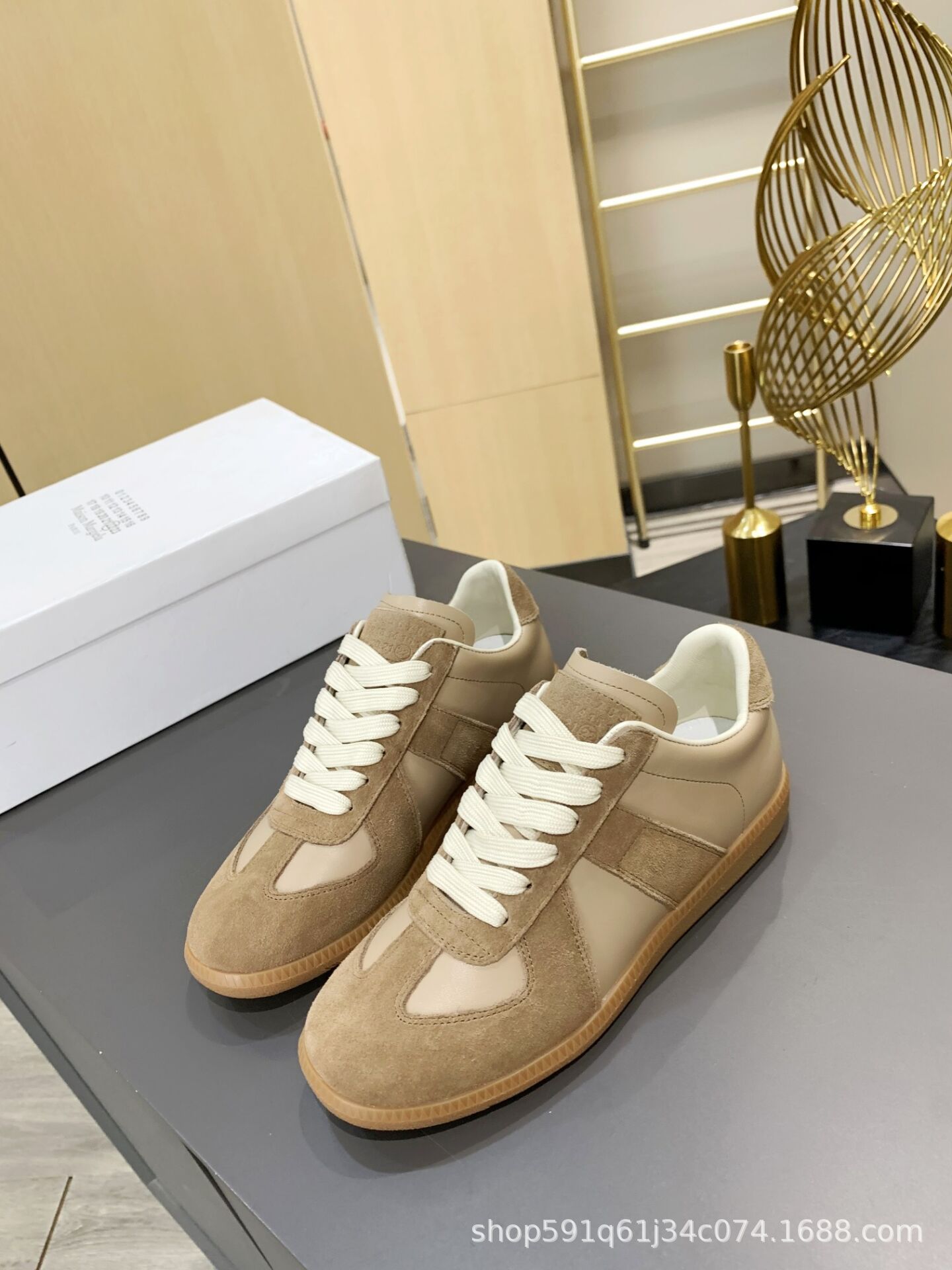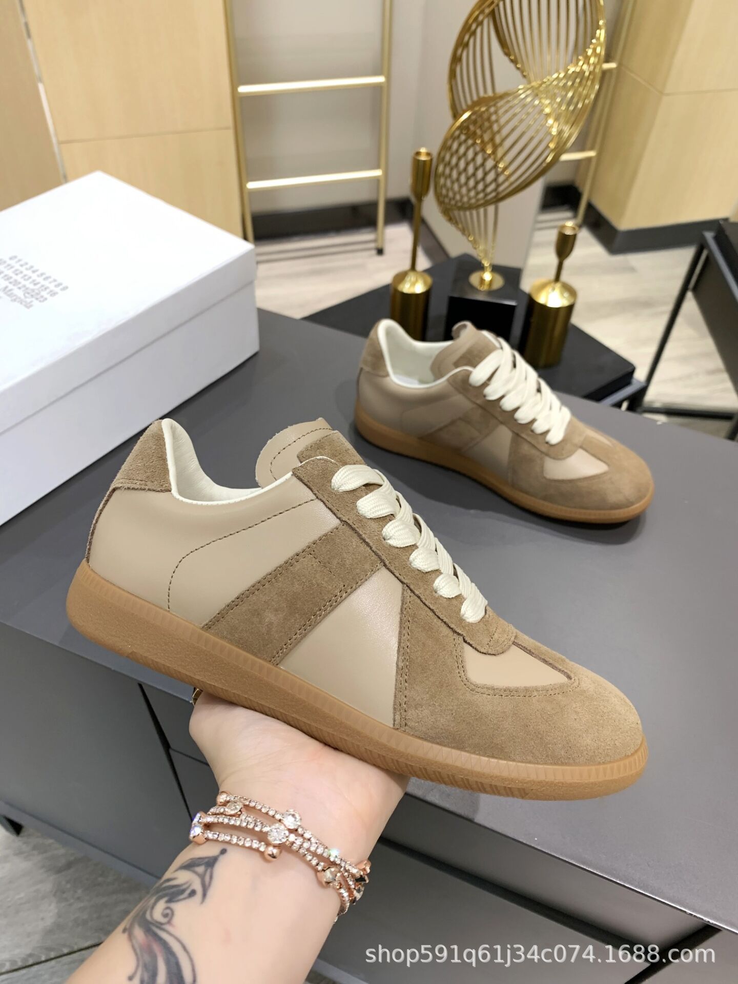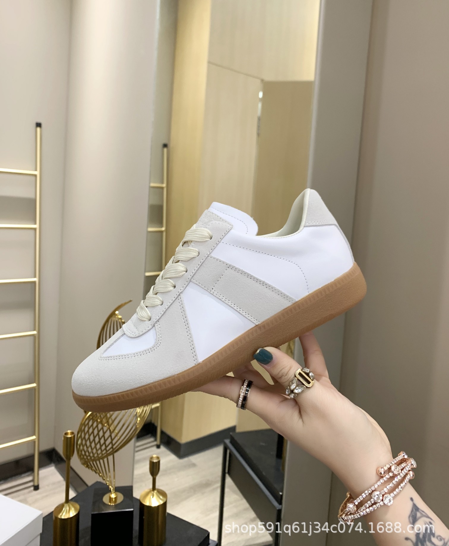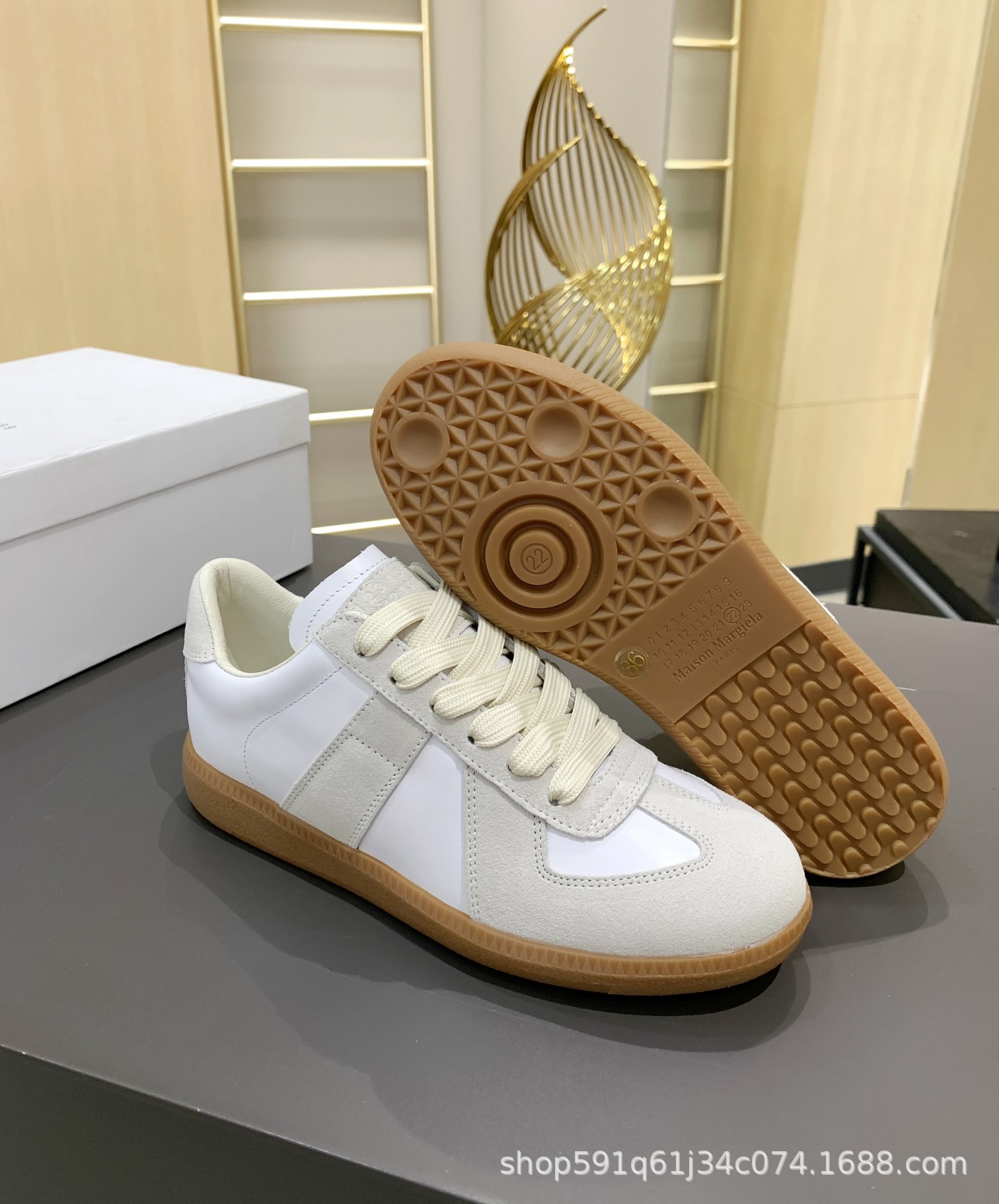 24MM6 Vintage German Training Shoes New Leather White Shoes Men's Lace-up Round Toe Flat Casual Sports Couple's Board Shoes