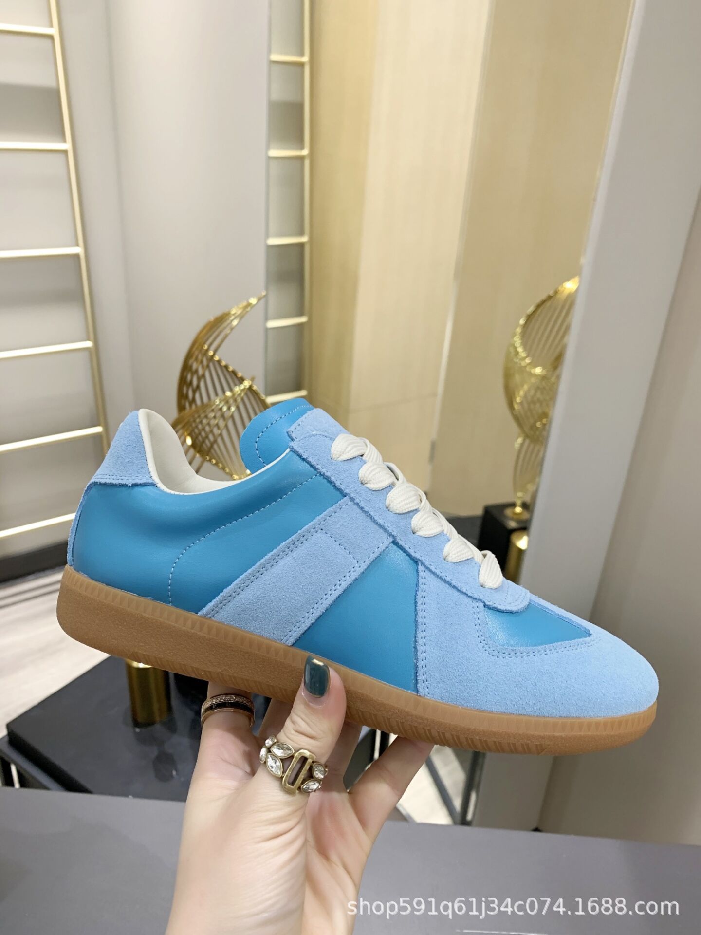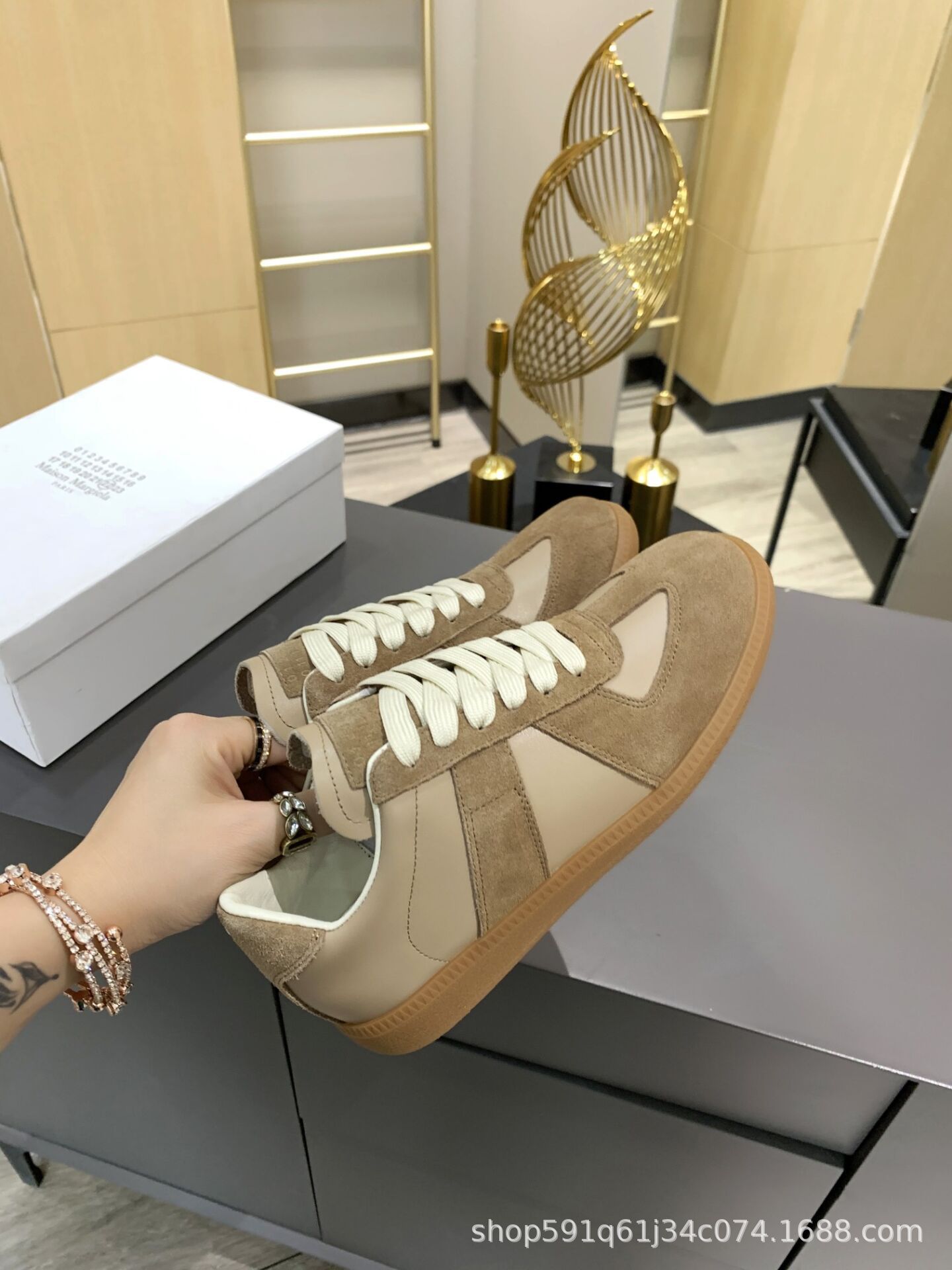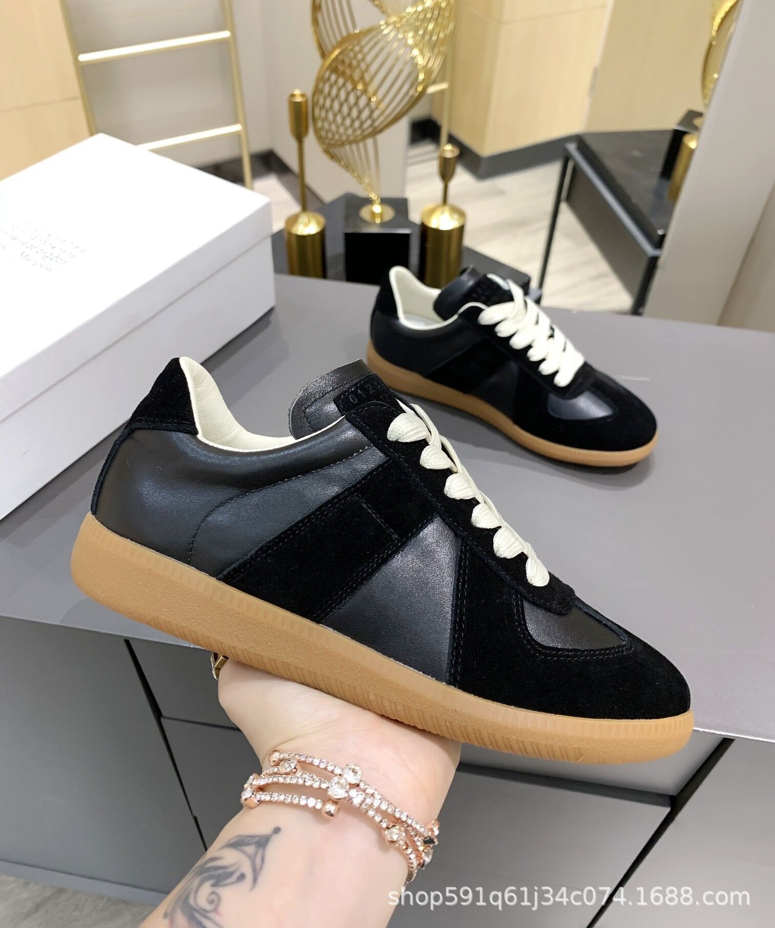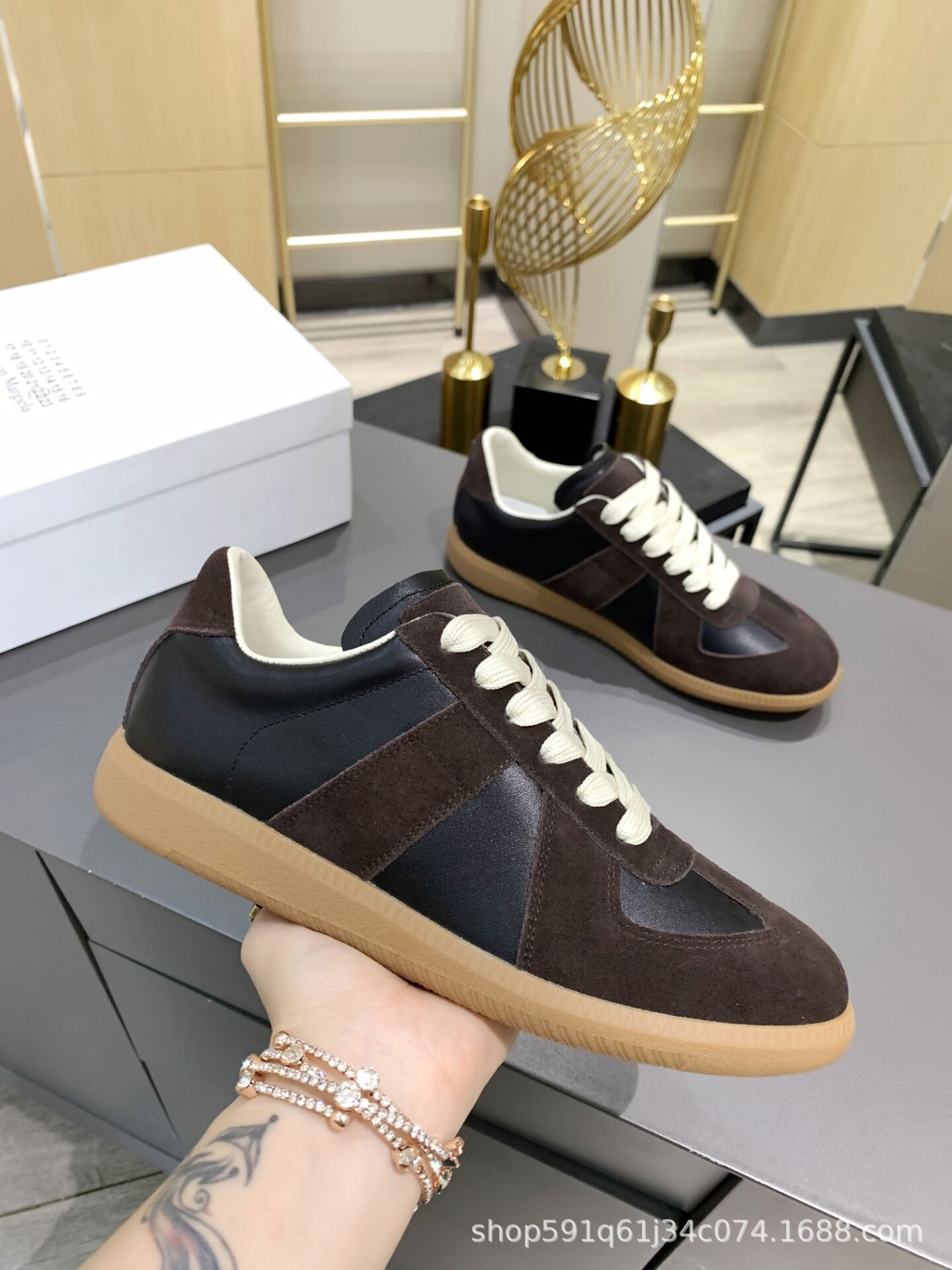 24MM6 Vintage German Training Shoes New Leather White Shoes Men's Lace-up Round Toe Flat Casual Sports Couple's Board Shoes