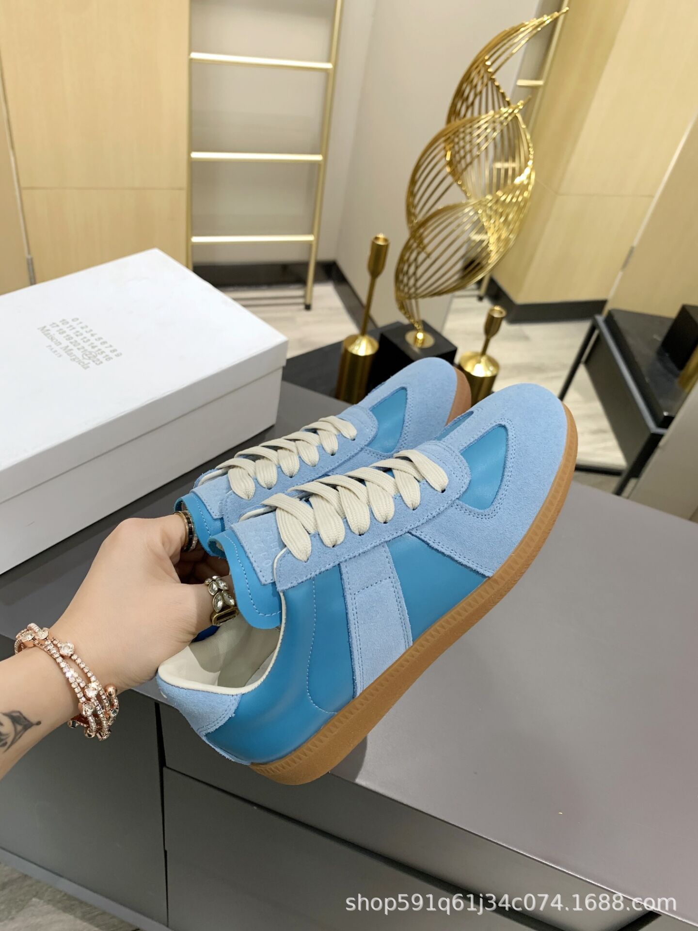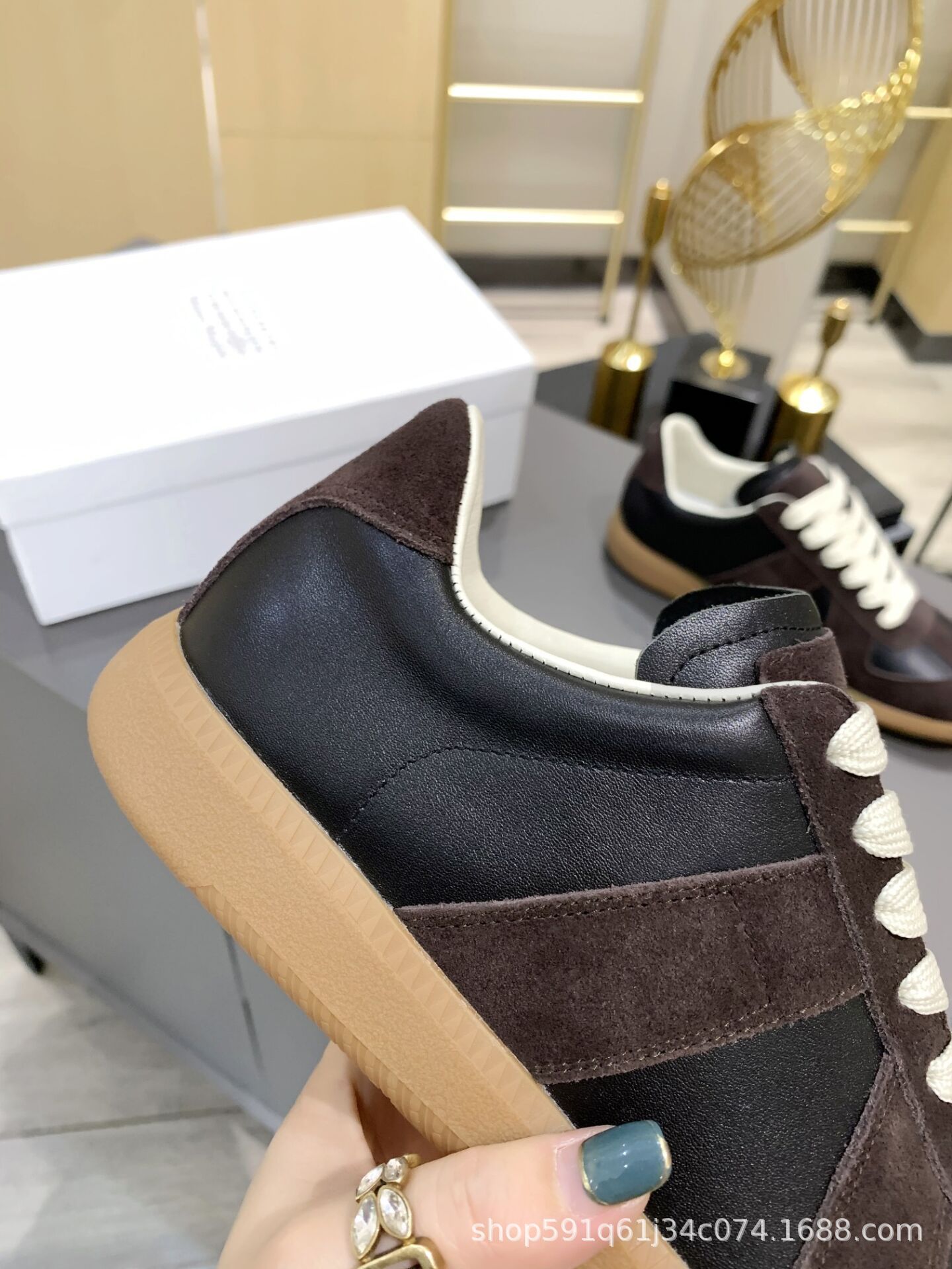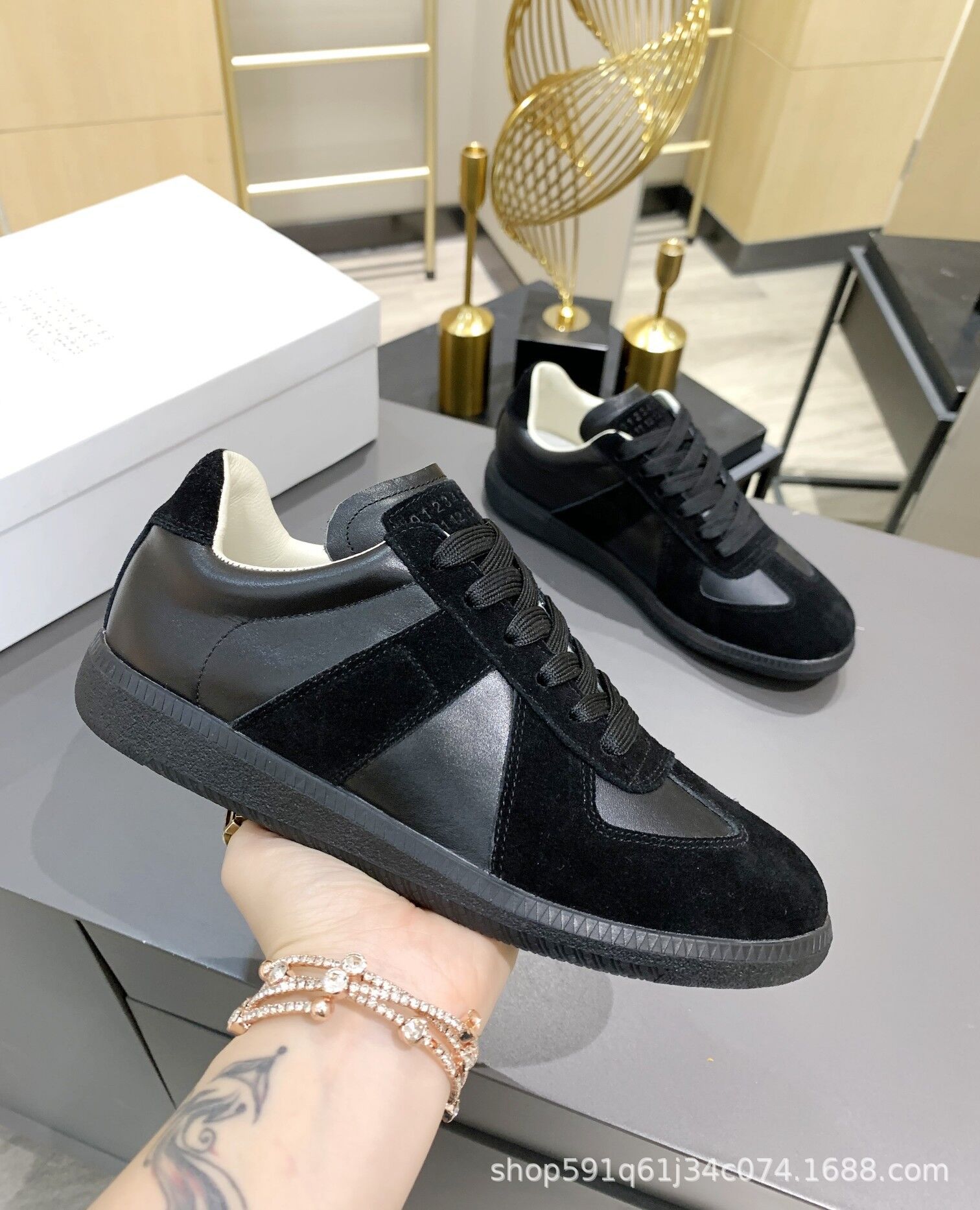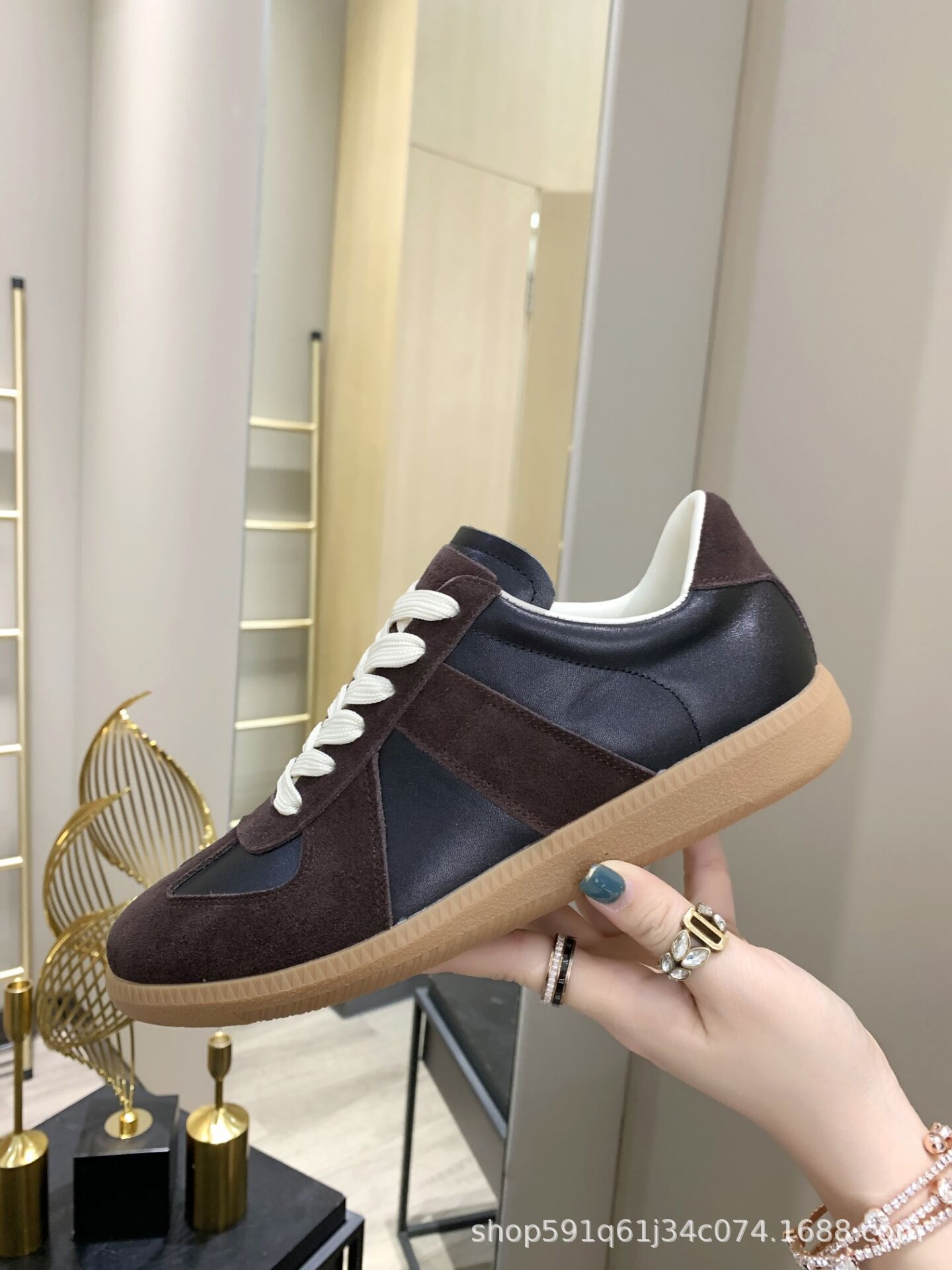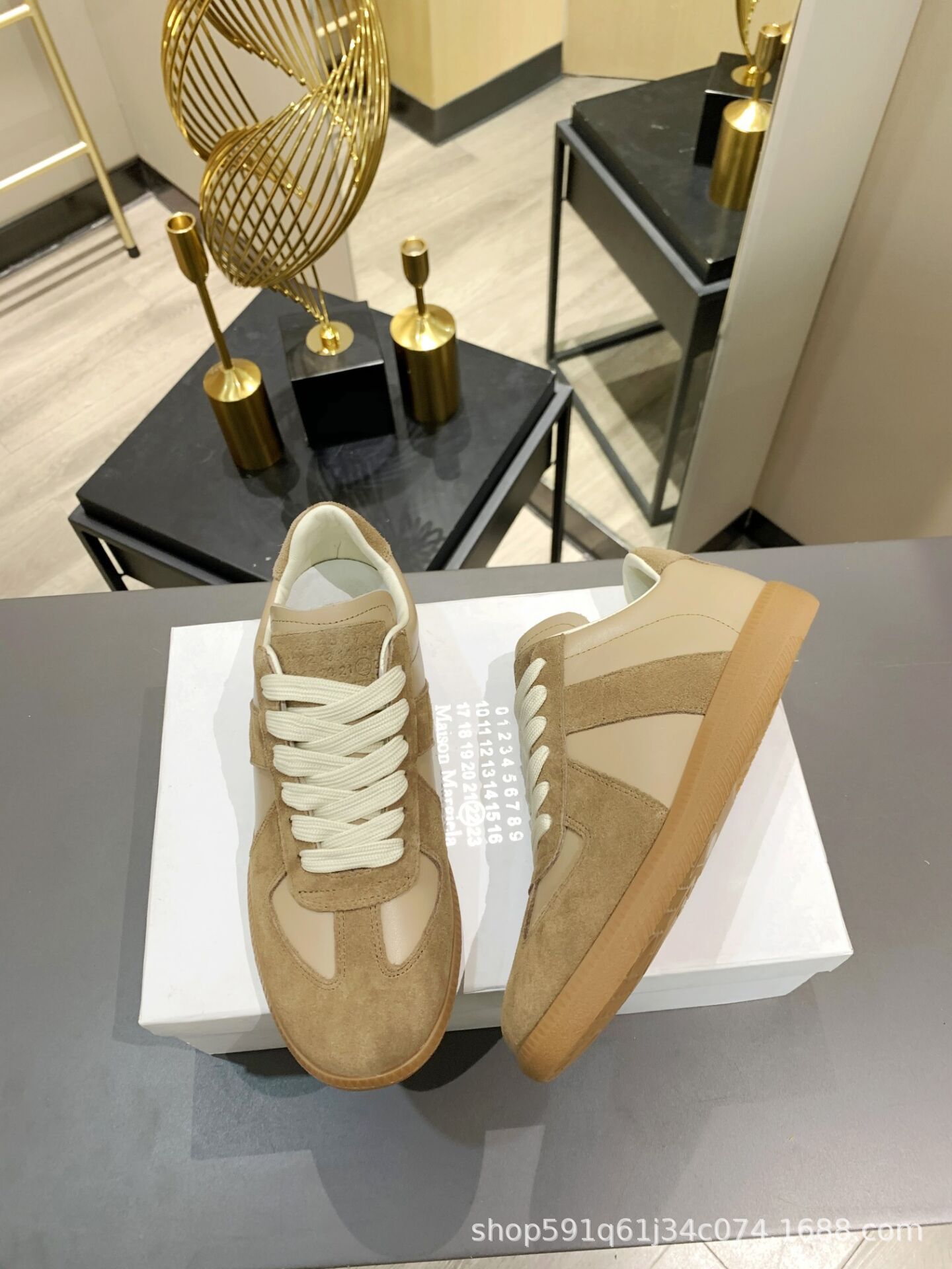 24MM6 Vintage German Training Shoes New Leather White Shoes Men's Lace-up Round Toe Flat Casual Sports Couple's Board Shoes