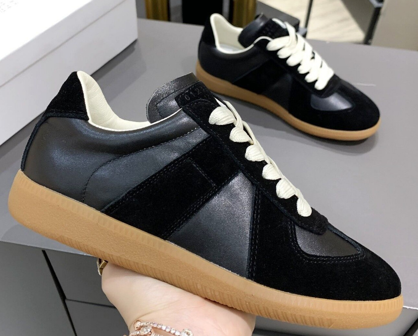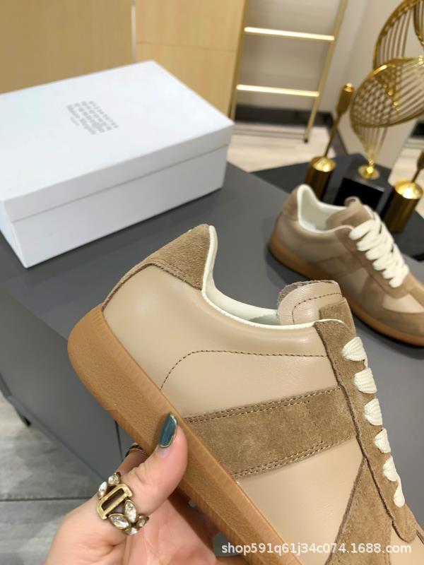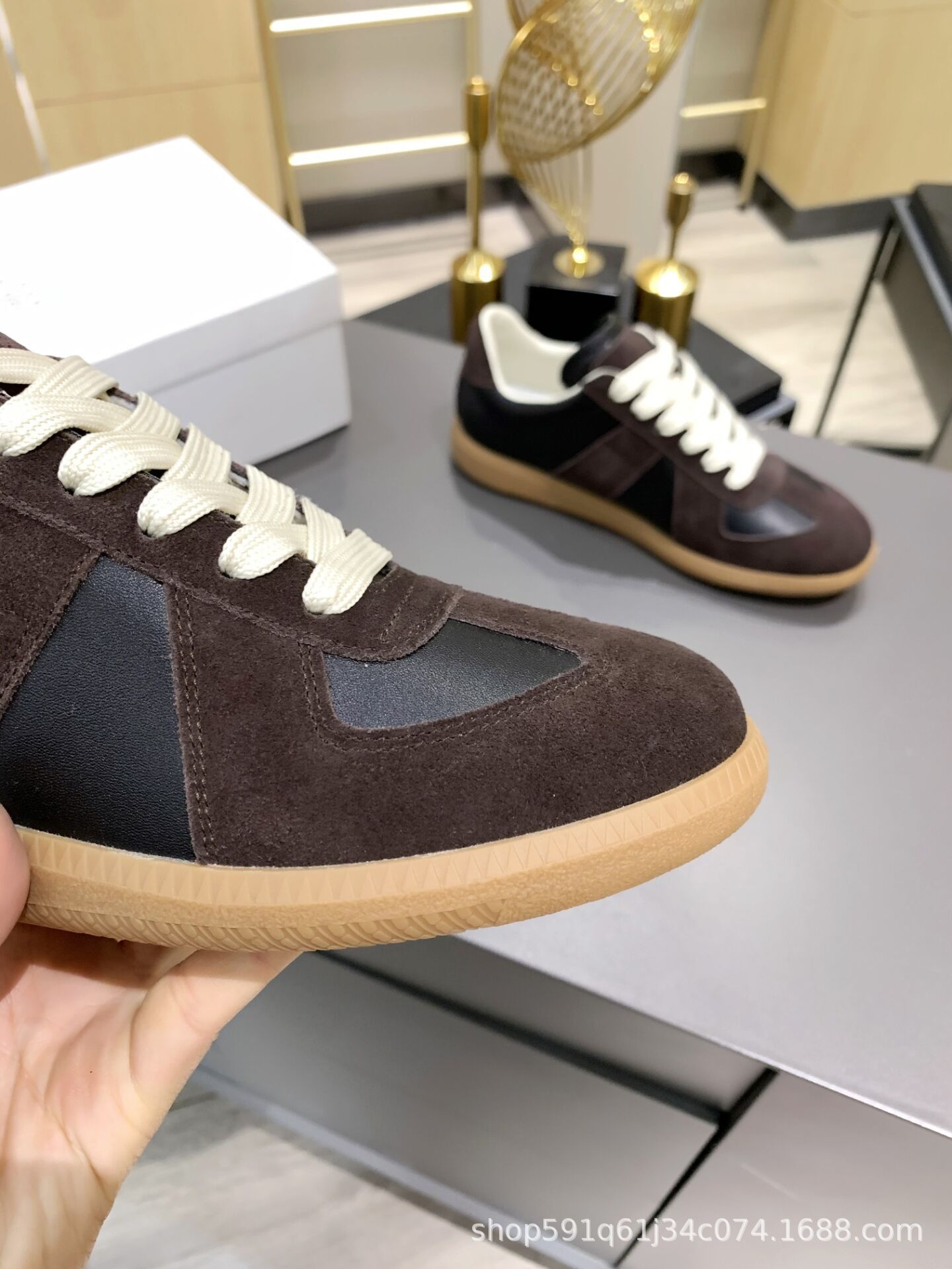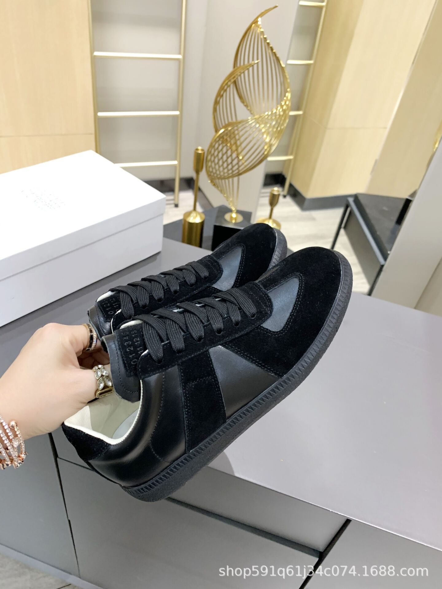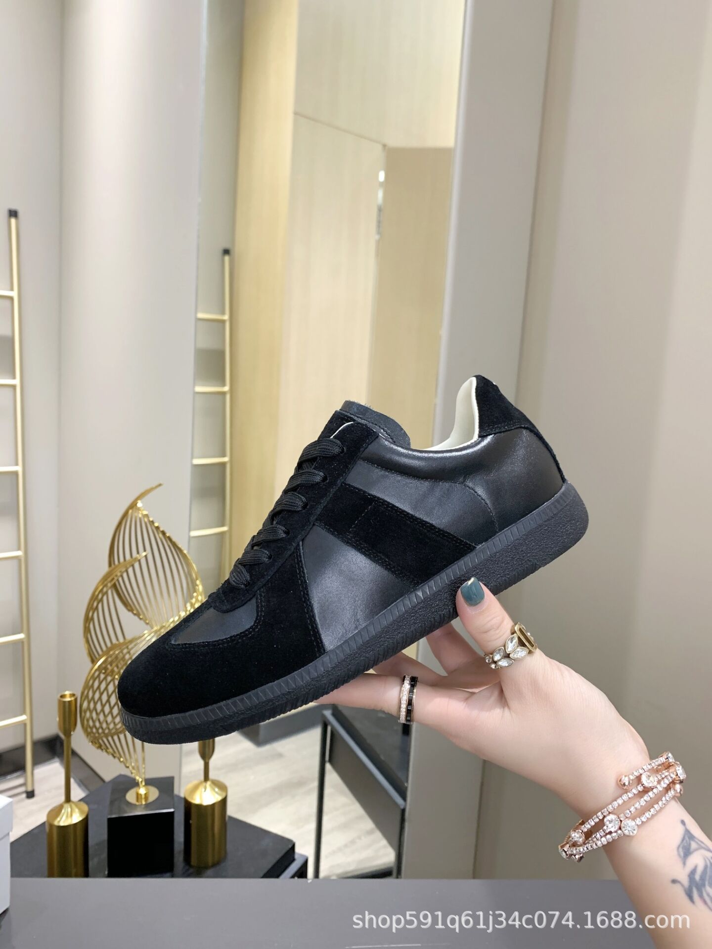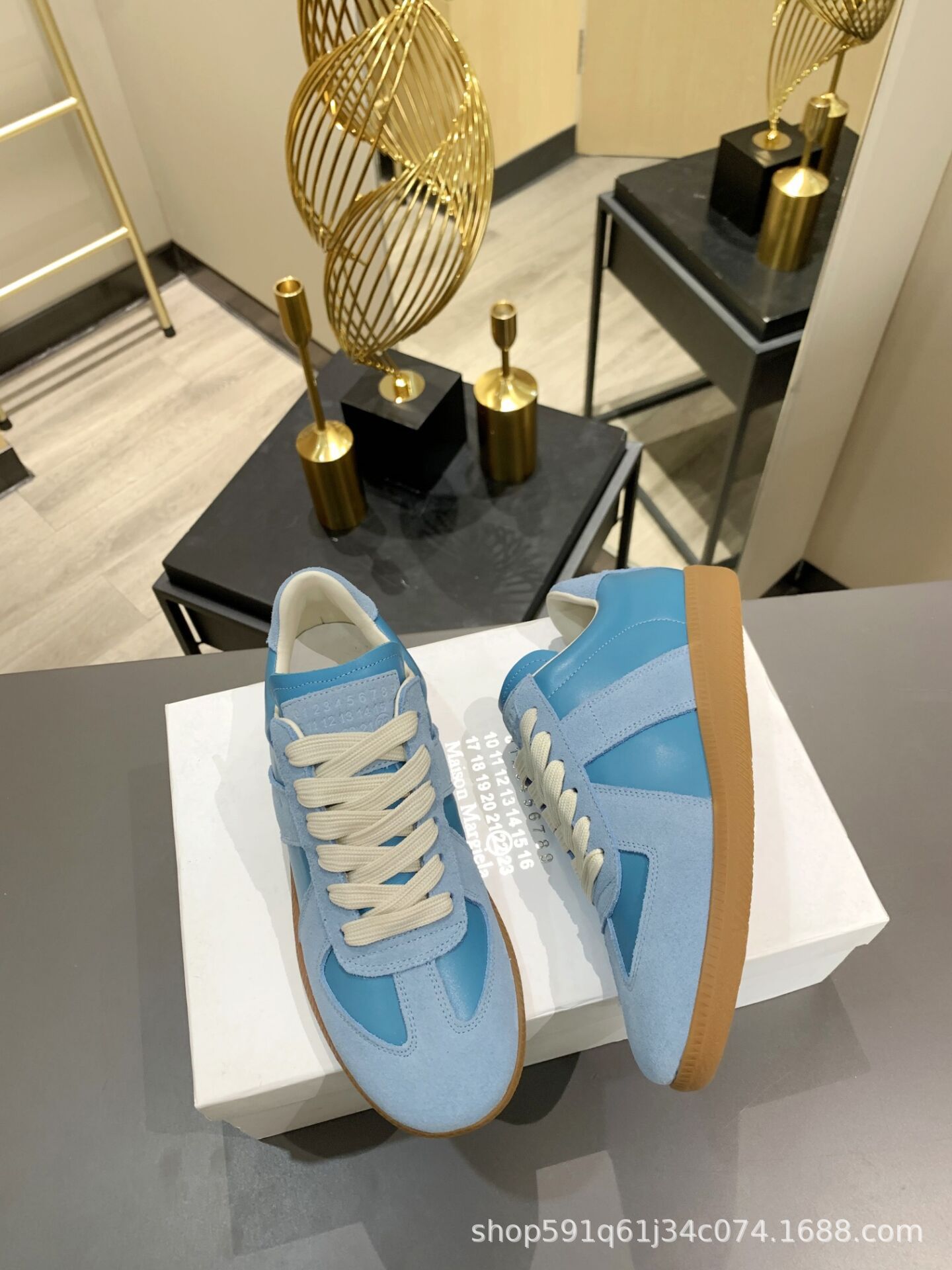 24MM6 Vintage German Training Shoes New Leather White Shoes Men's Lace-up Round Toe Flat Casual Sports Couple's Board Shoes