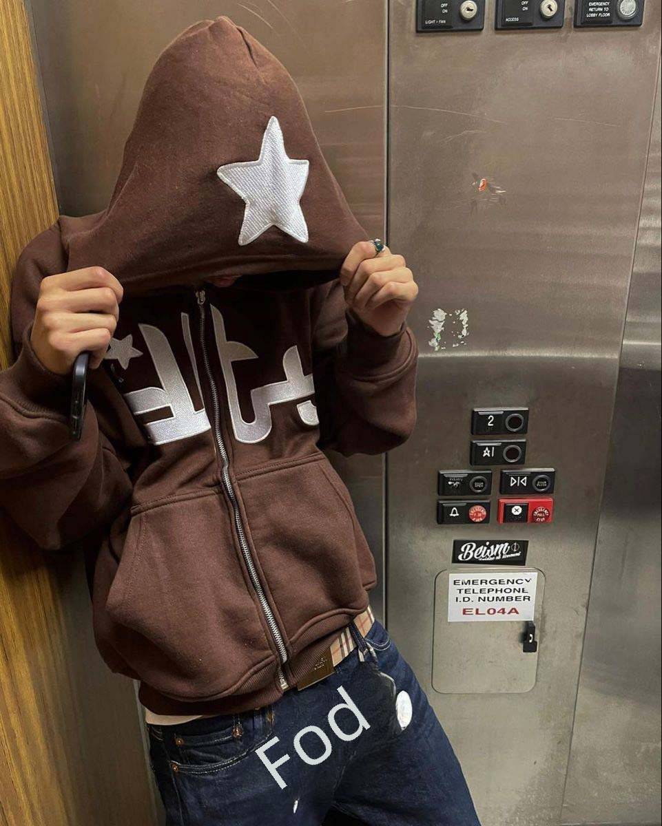 Autumn and Winter New European and American Style Fashionable Embroidered Printed Sweater Cardigan High Street Casual Hip Hop Metal Zipper Jacket