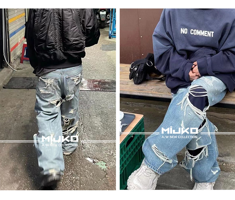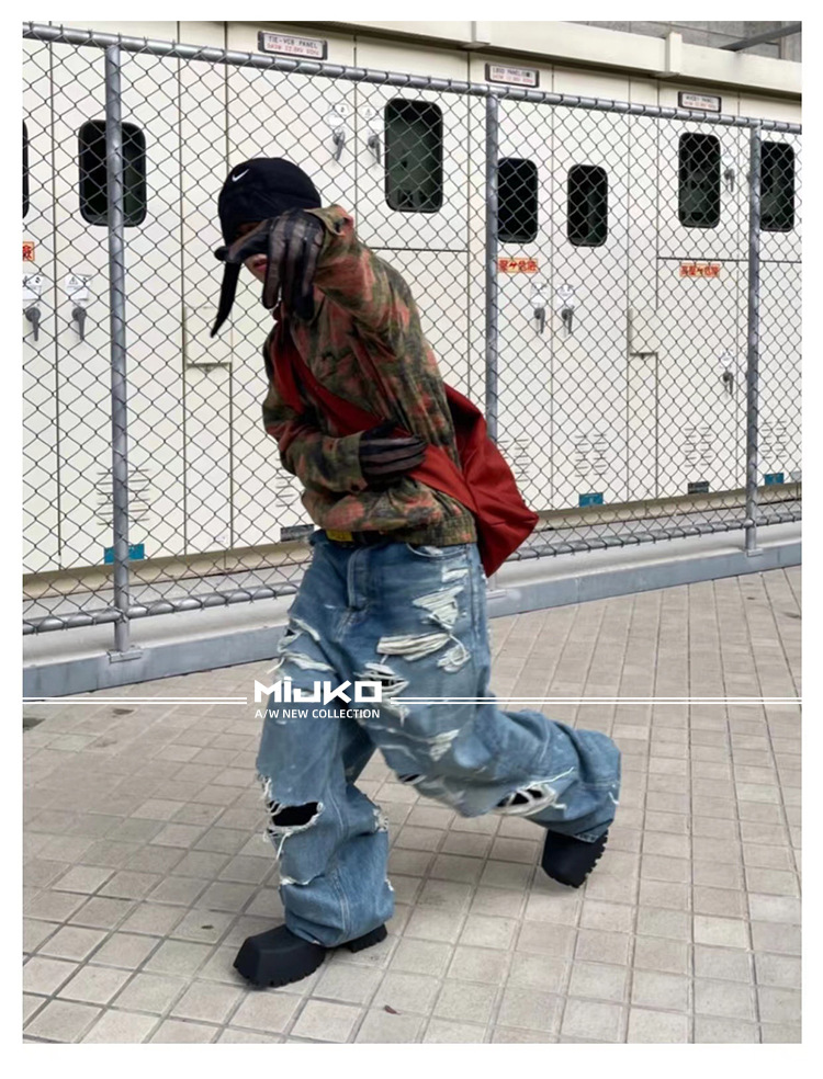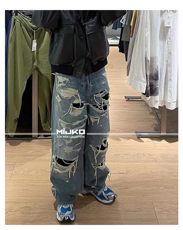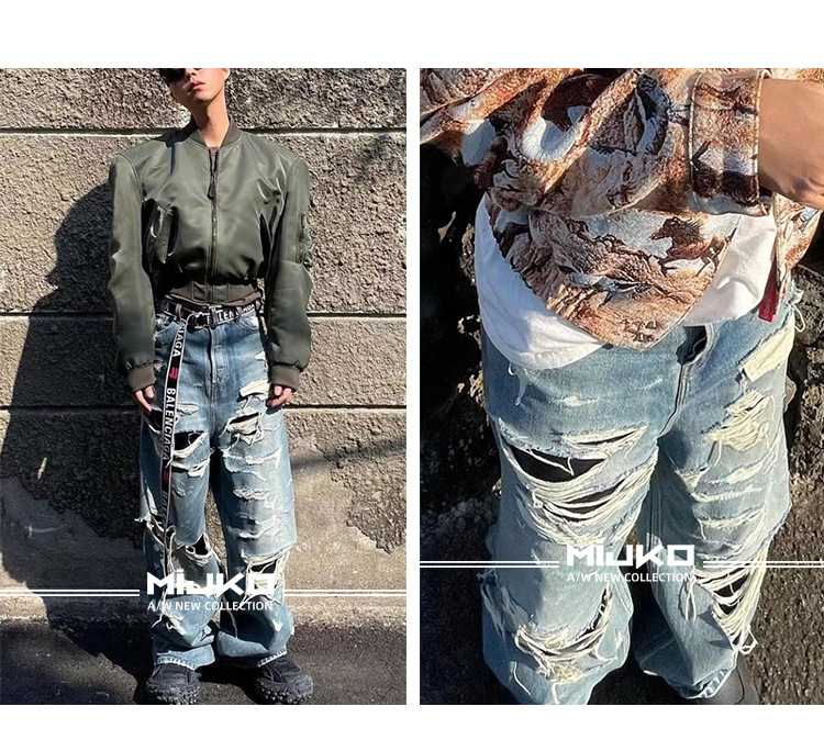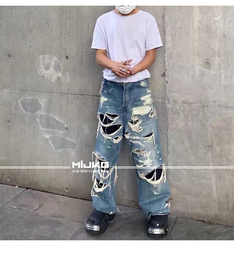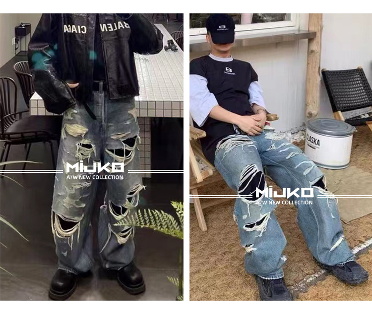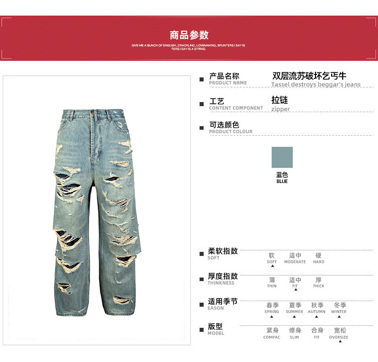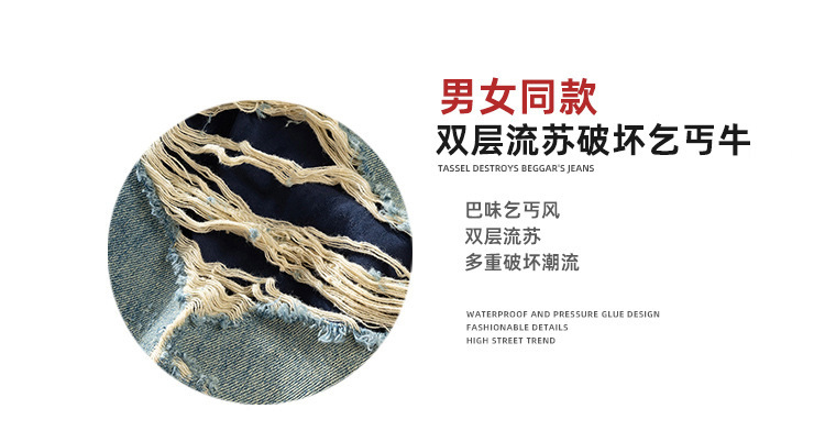 MIJKO Men's Wear Women's Bazaar Double-layer Tassel Destroys Beggar's Wind Men's and Women's Style Destroys Ripped Jeans