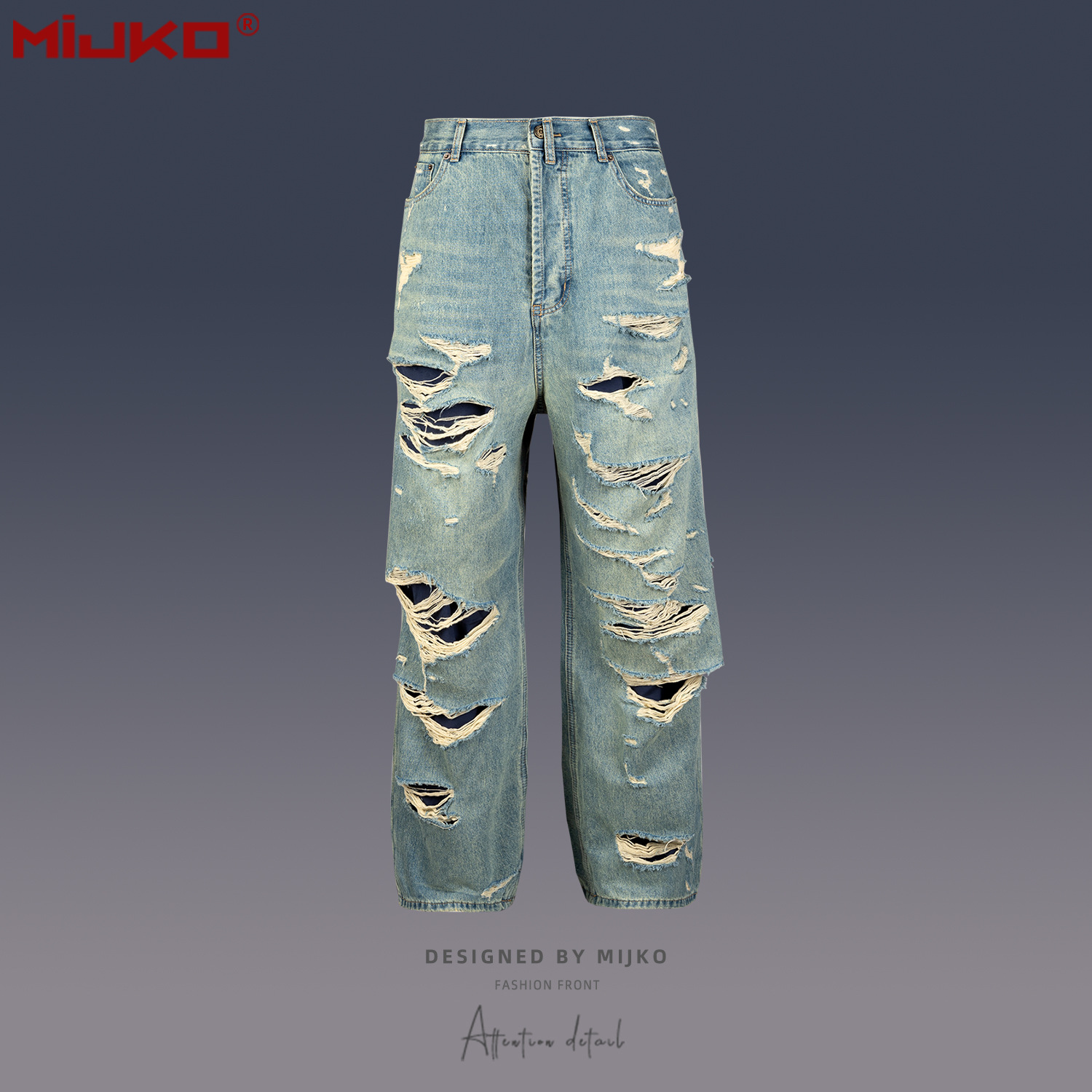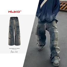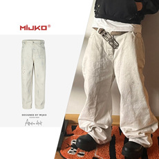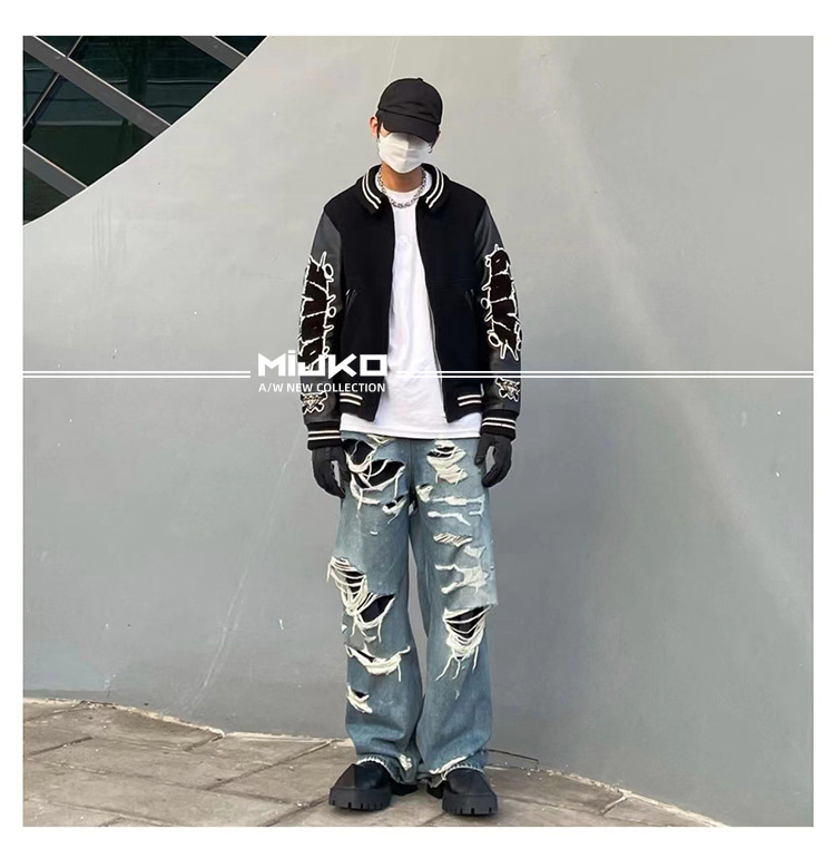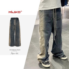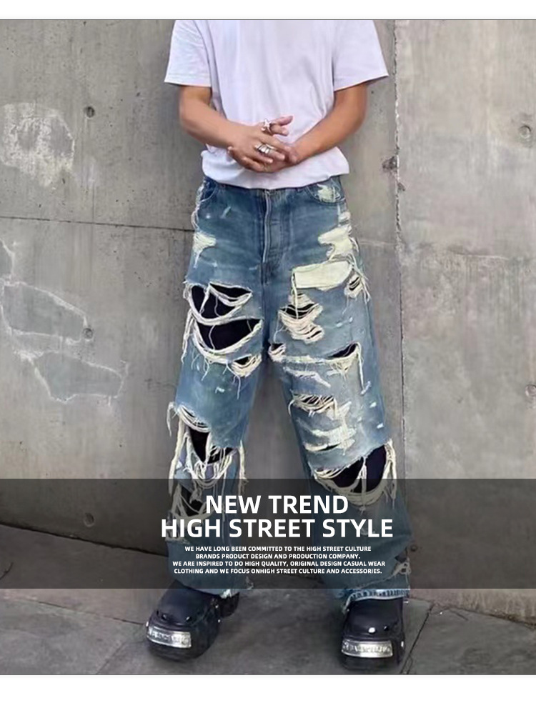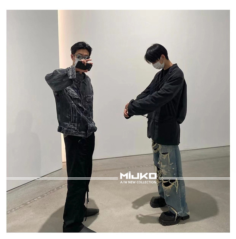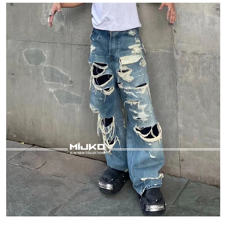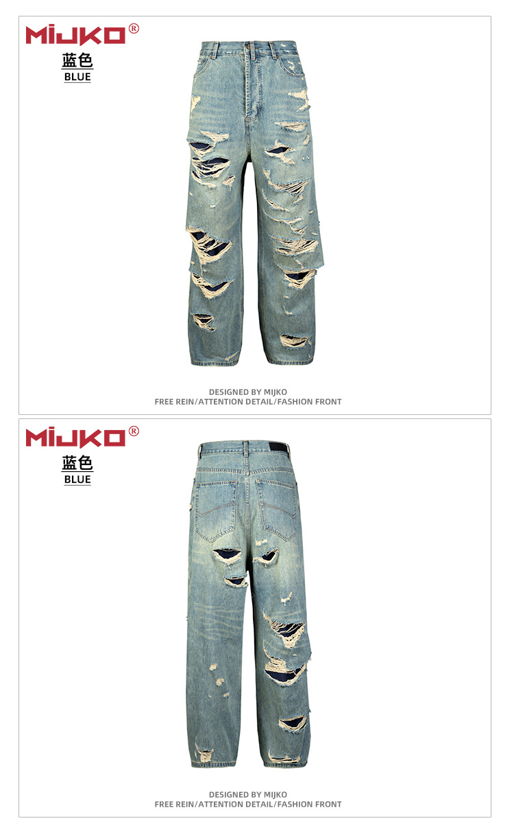 MIJKO Men's Wear Women's Bazaar Double-layer Tassel Destroys Beggar's Wind Men's and Women's Style Destroys Ripped Jeans