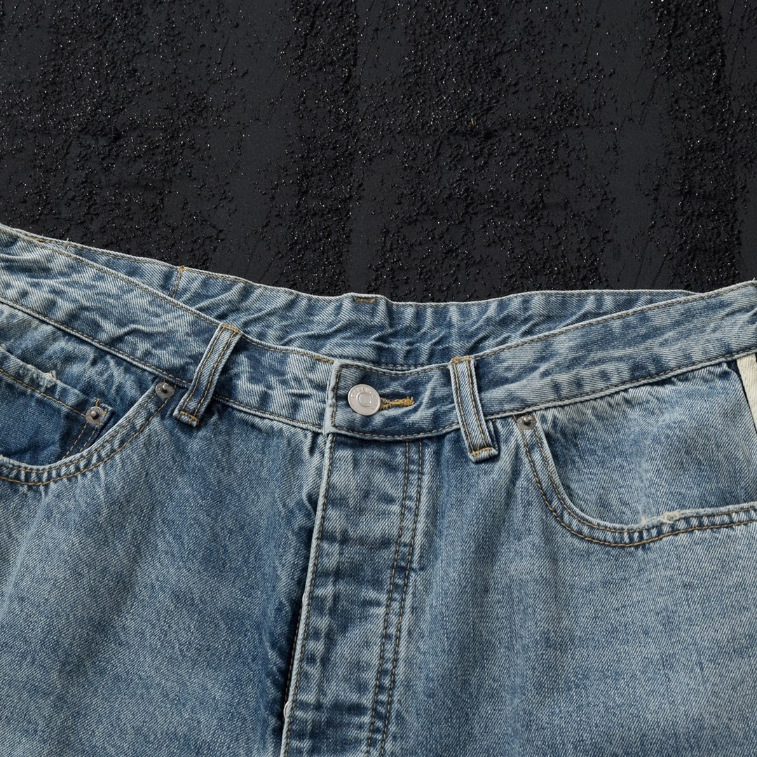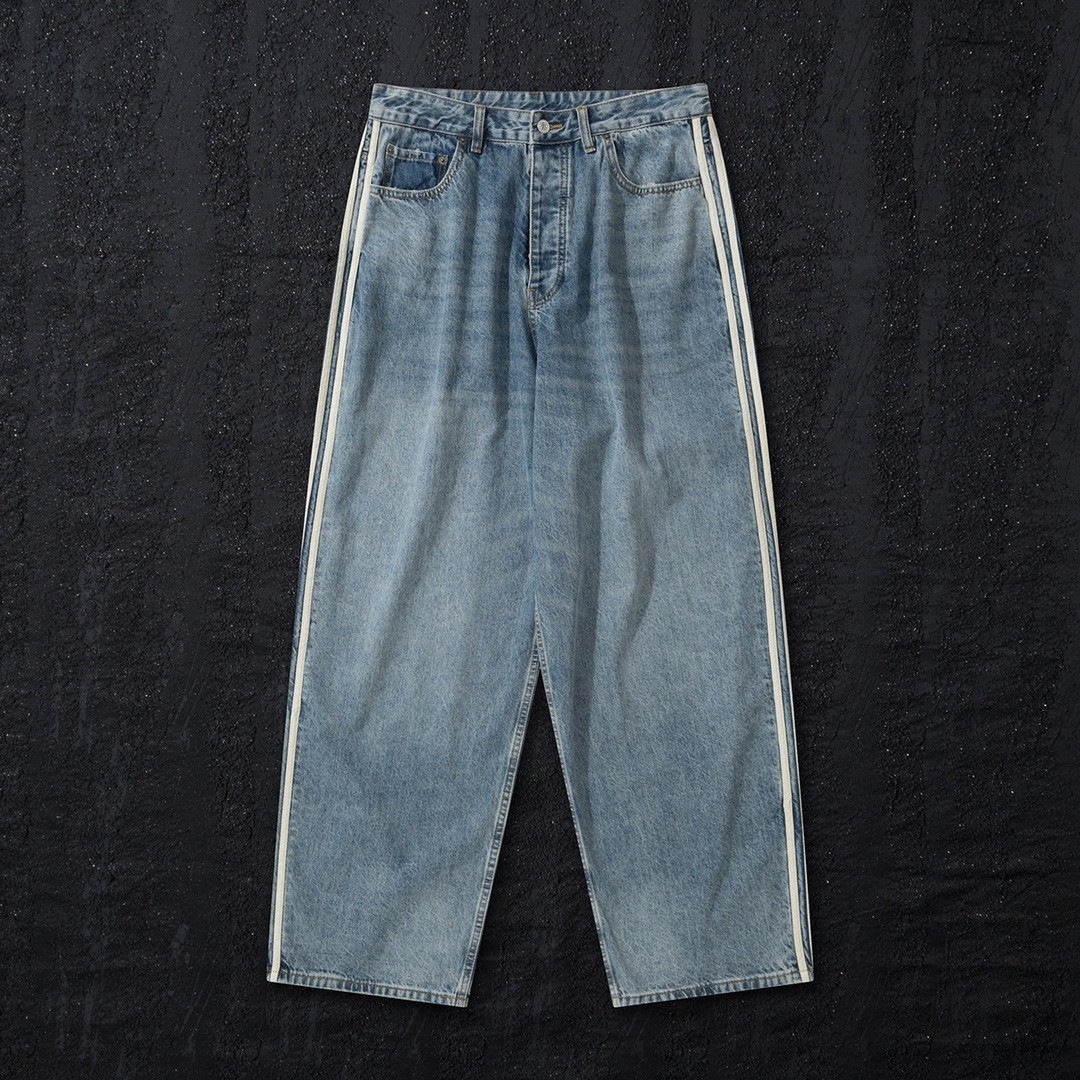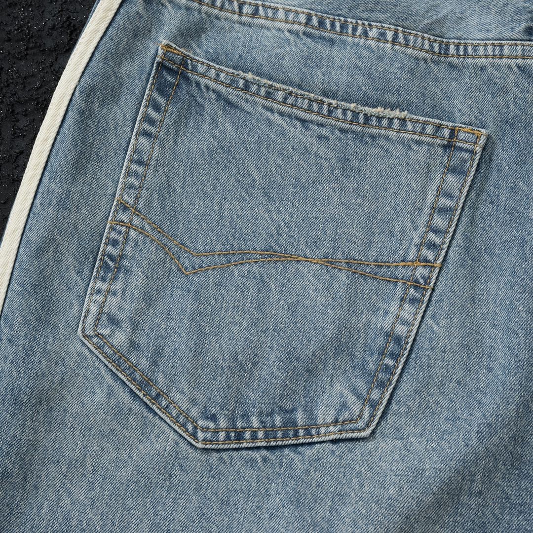 23SS high quality Side Ribbon Blue Jeans Unisex Loose Trousers