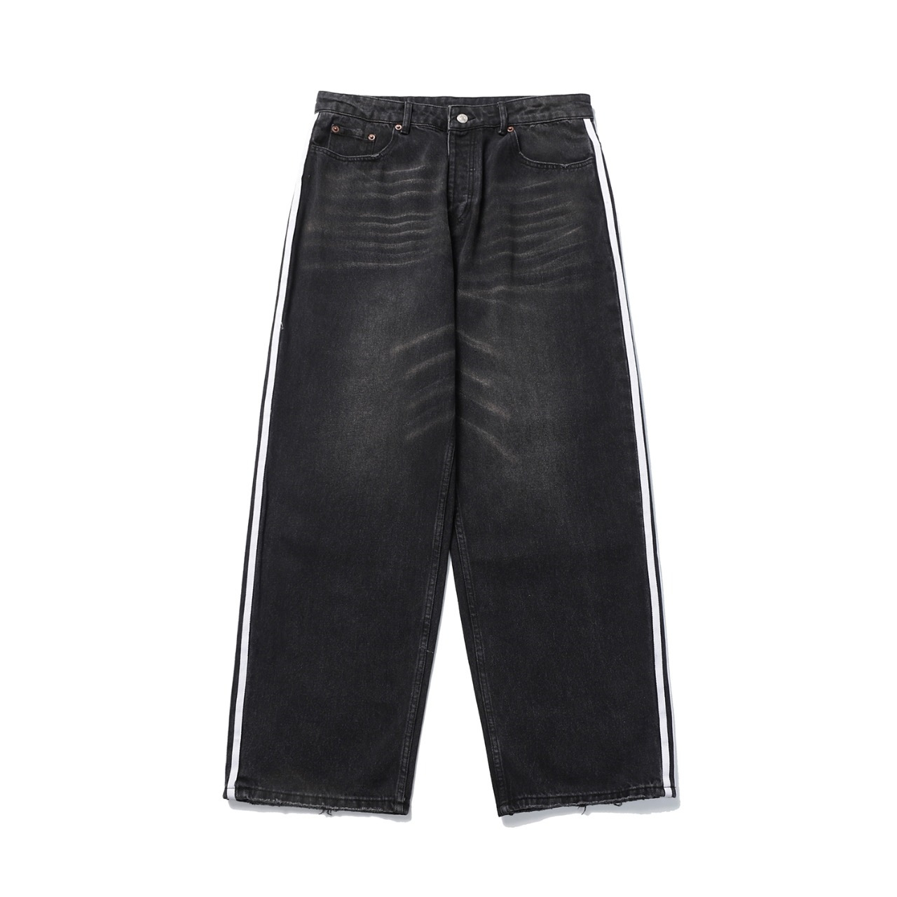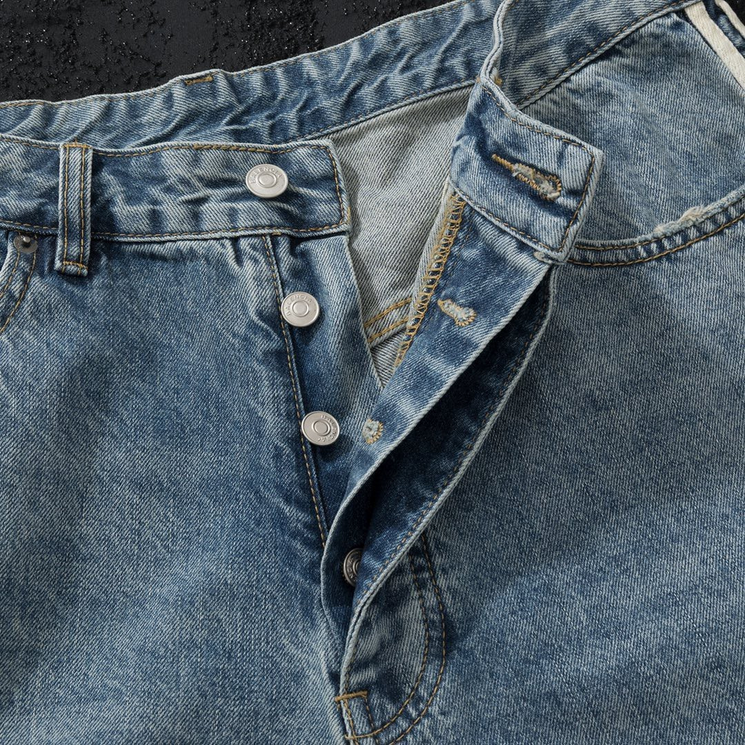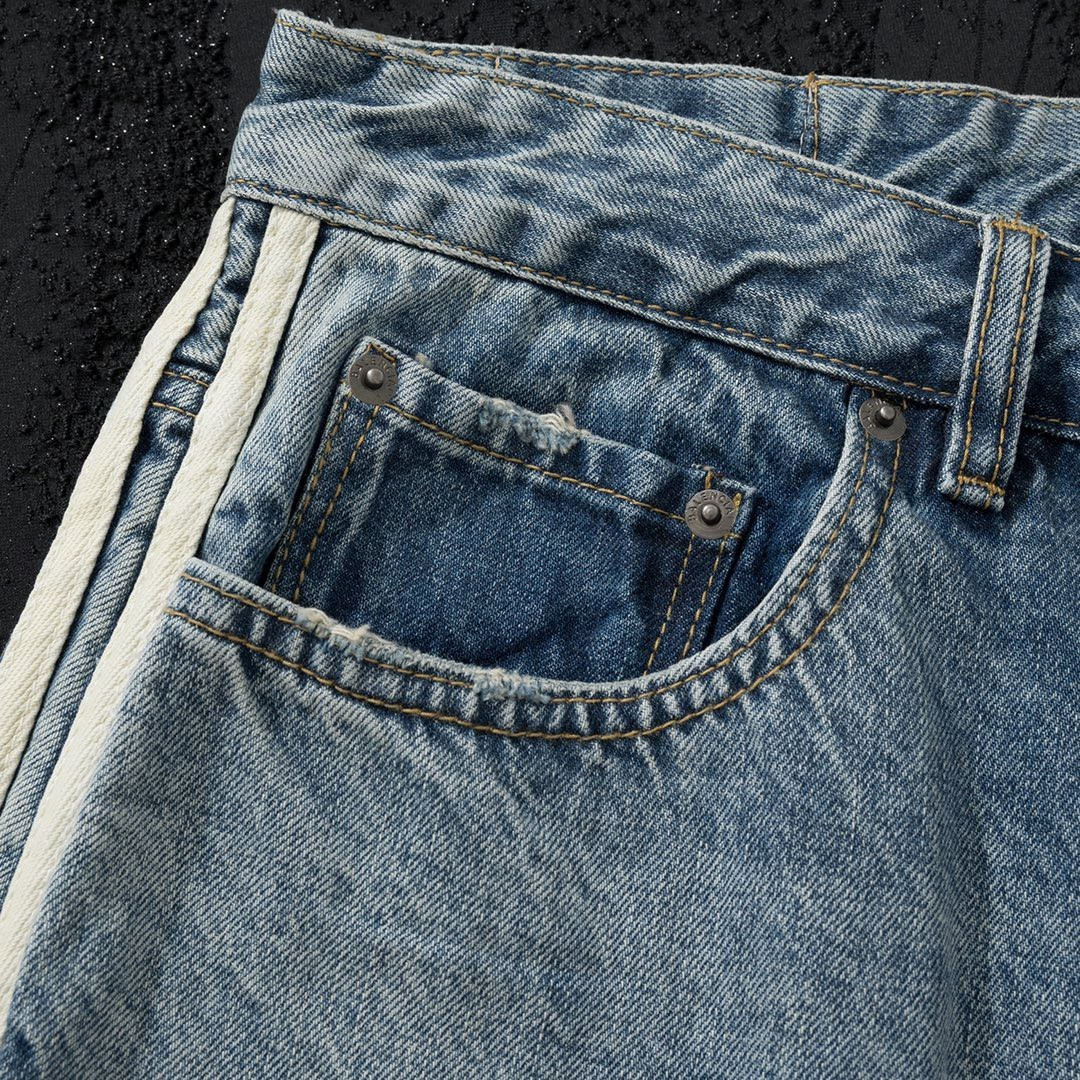 23SS high quality Side Ribbon Blue Jeans Unisex Loose Trousers
