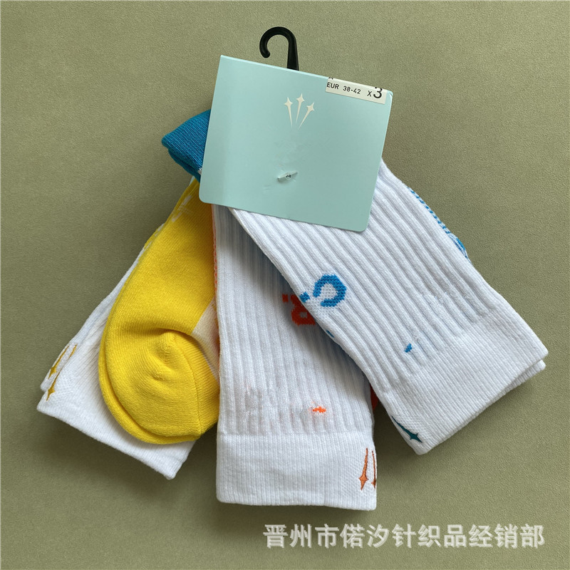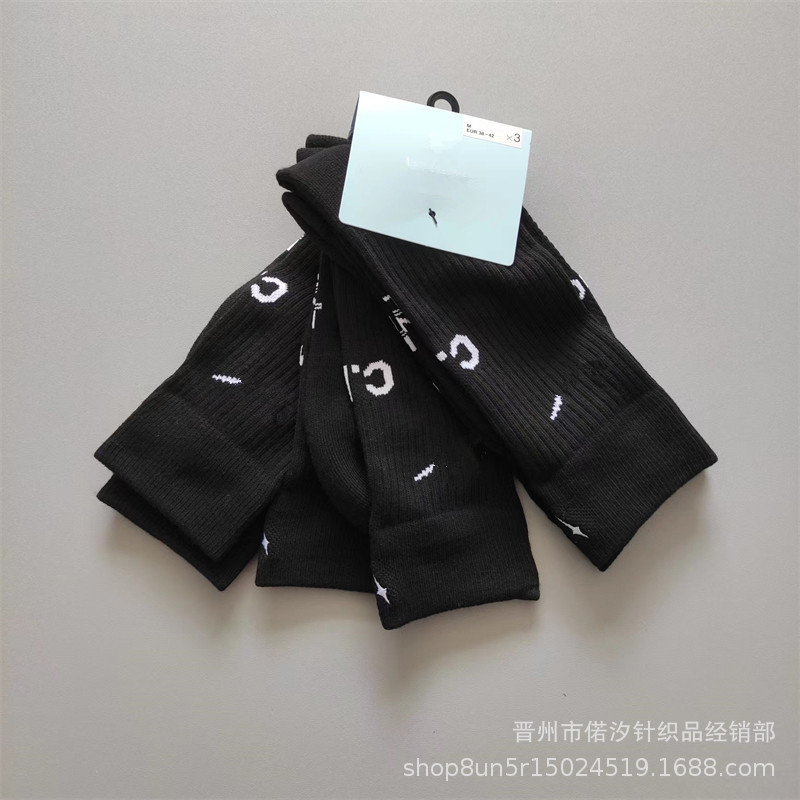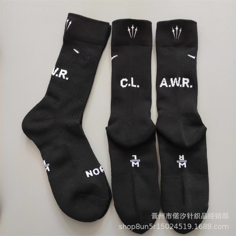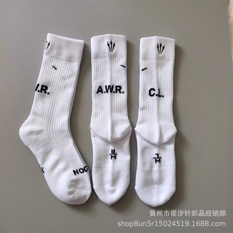 Foreign trade socks joint sports socks high black and white tide socks towel bottom breathable moisture wicking new cotton socks