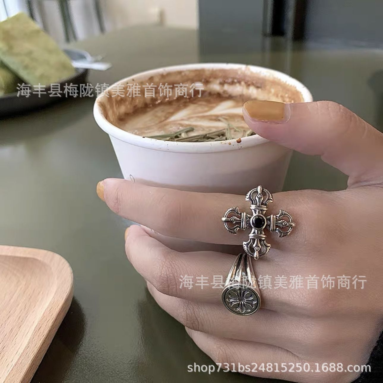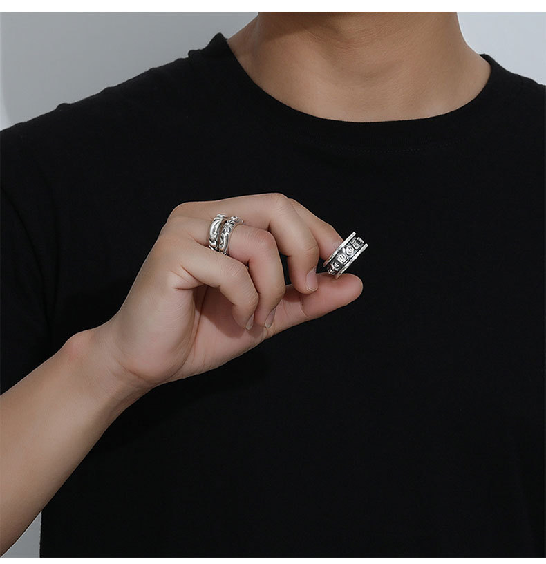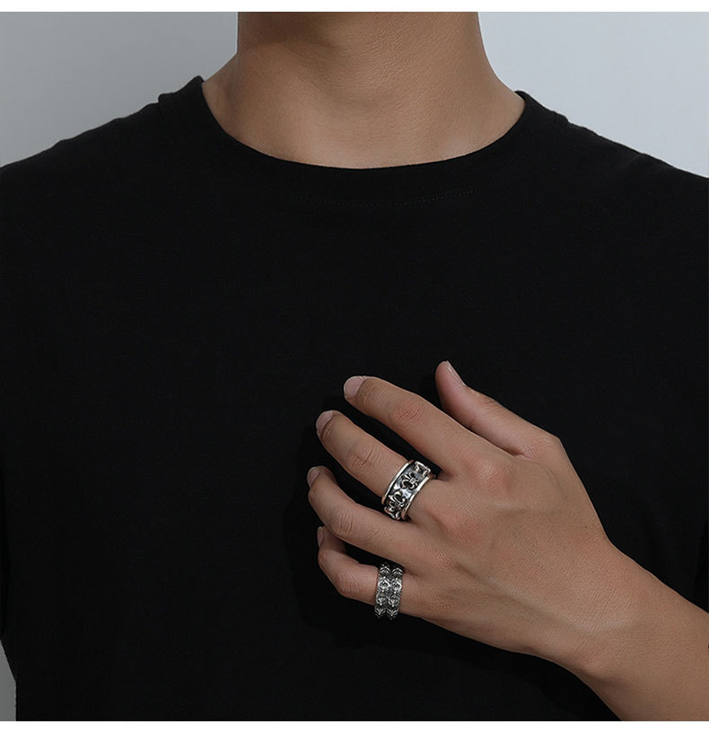European and American fashion brand Crow's punk style Thai silver alloy ring for lovers retro Thai silver cross ring food finger ring