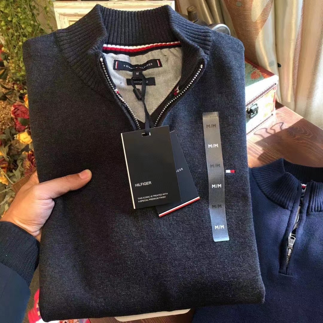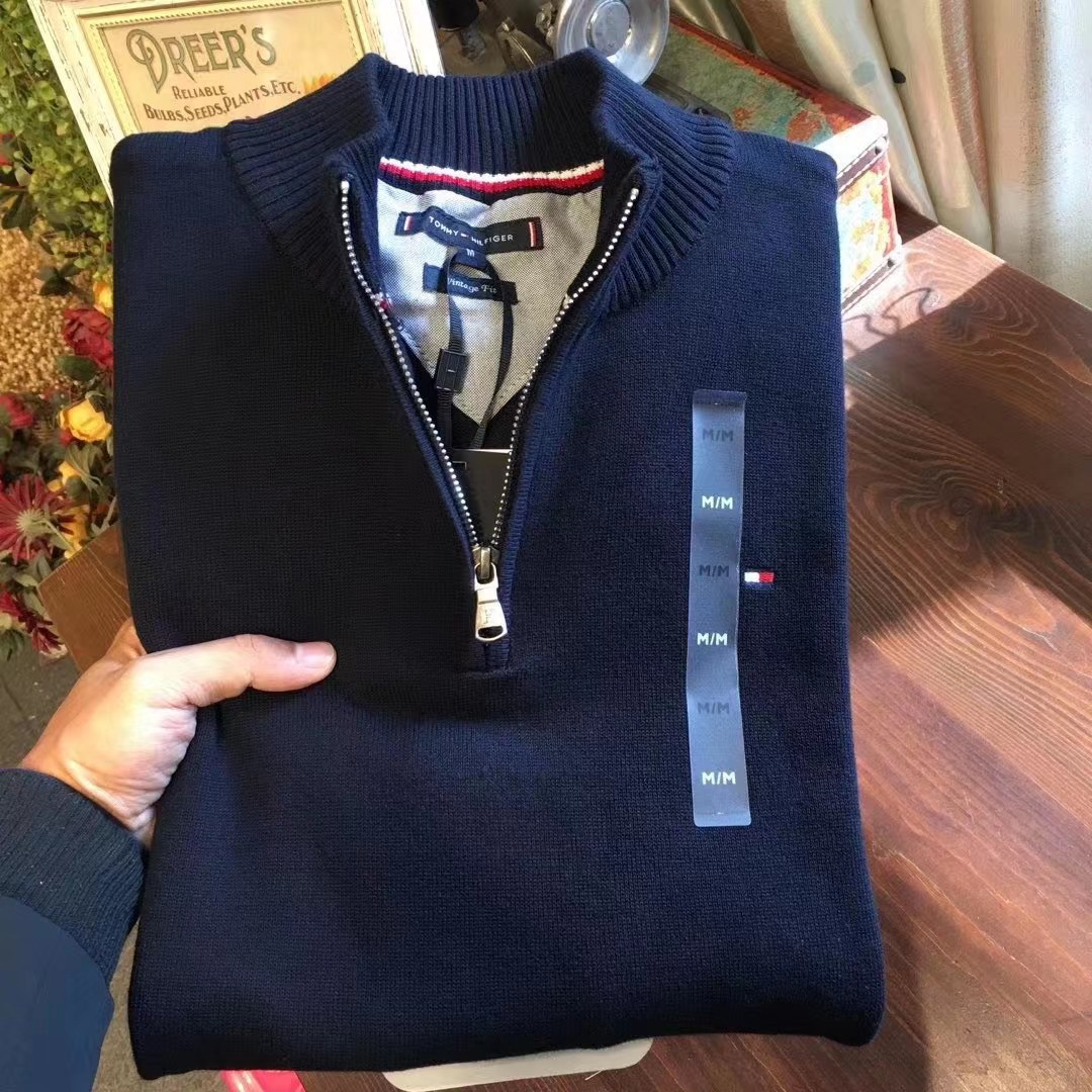 in stock Foreign Trade Autumn and Winter Tommy Men's Casual Half Zipper Embroidered Turtleneck Turtleneck Sweater Sweater 1