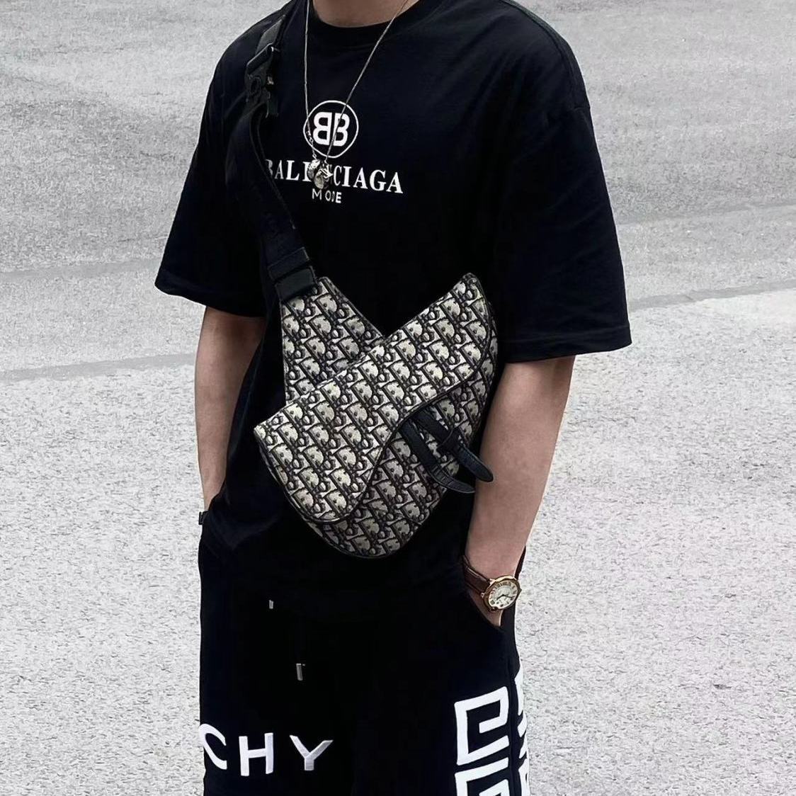 New Men's Chest Bag Saddle Bag Canvas Embroidered Jacquard Trendy Cross Bag Casual Crossbody Bag Men's and Women's Couple's Waist Bag