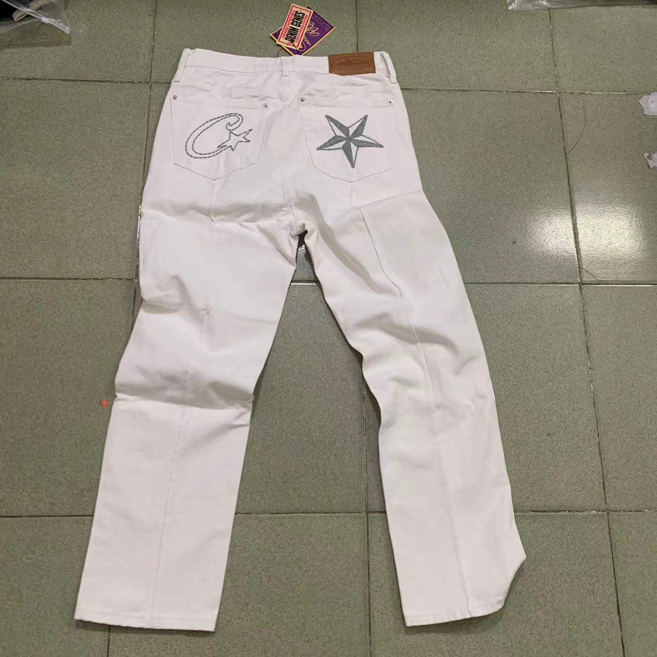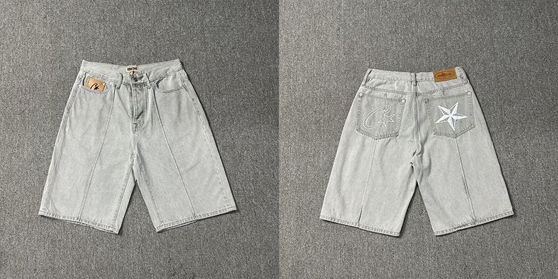 Corteiz 2024 New Embroidered Logo Heavy Industry Washed Denim Mid-length Pants Beautiful Trendy Casual Pants for Men and Women
