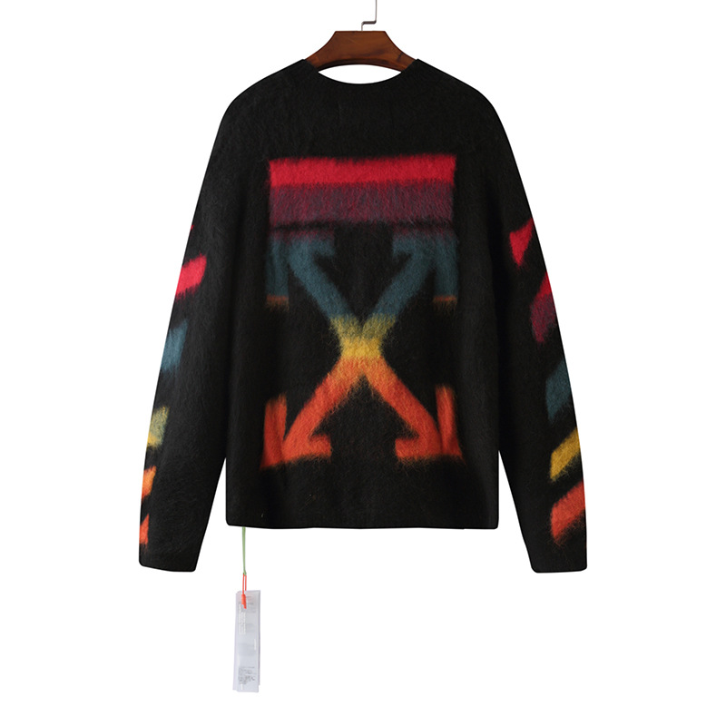 Wholesale classic off sweater long coat ow fashion brand gradient arrow mohair sweater sweater lovers outfit