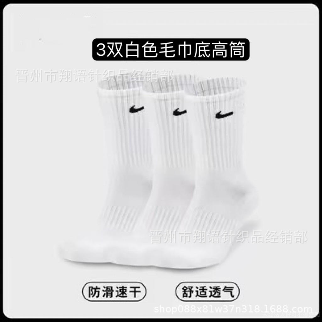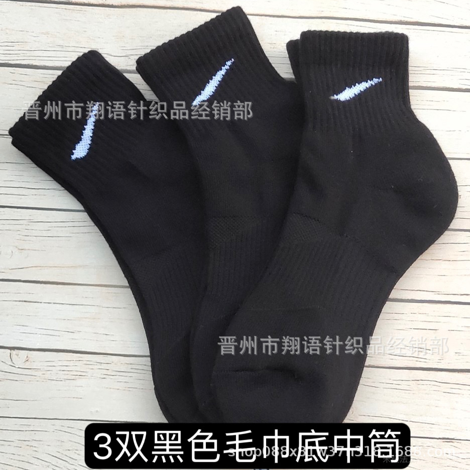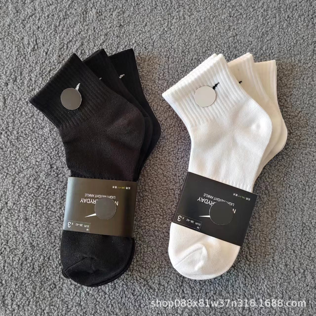 Classic Black and White Suwan Nest Socks Solid Color Medium and High Towel Bottom Running Training Socks for Men and Women Sweat Absorbing
