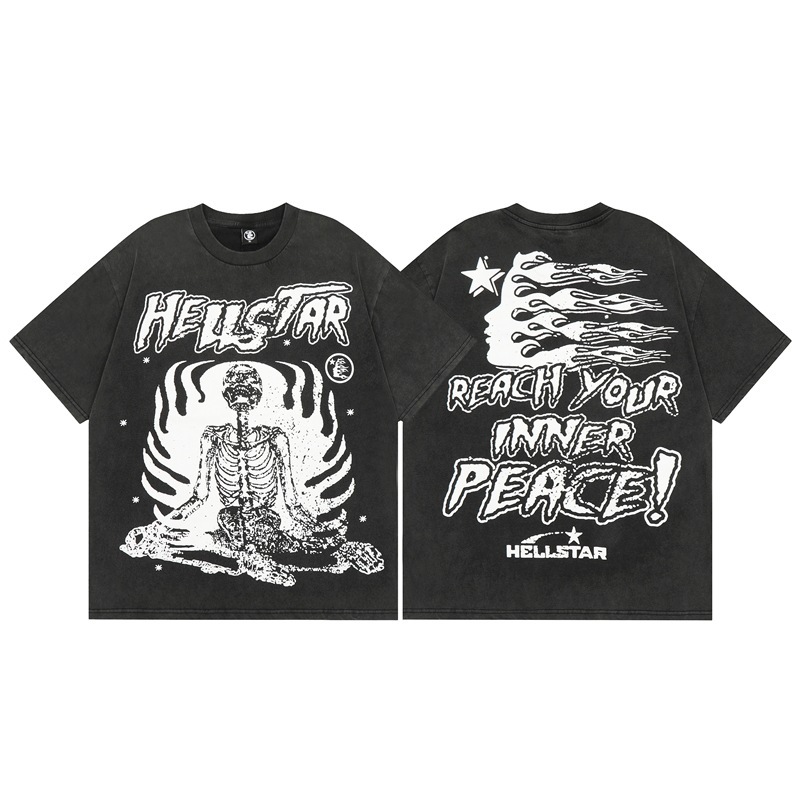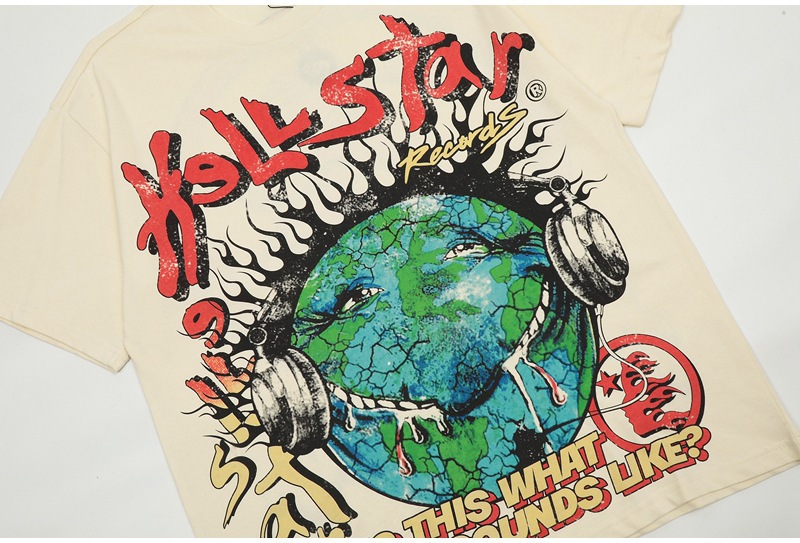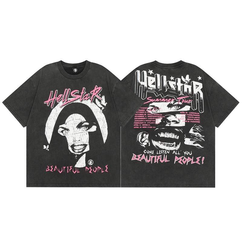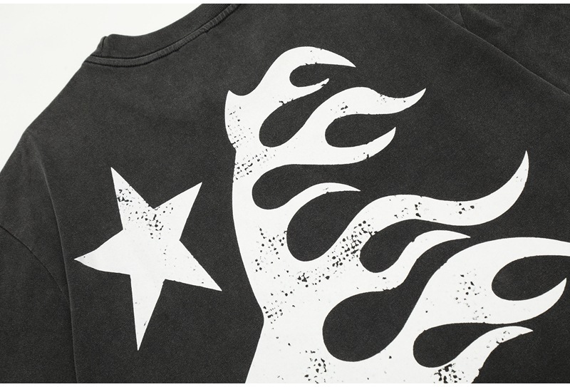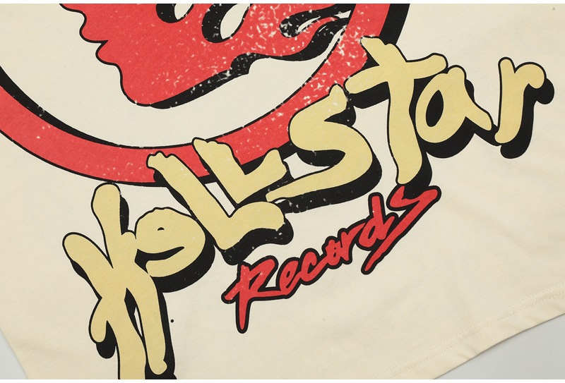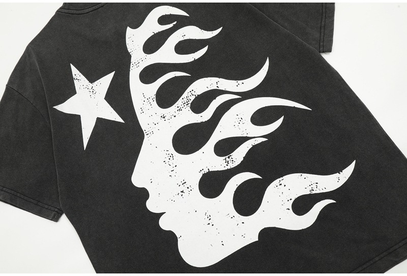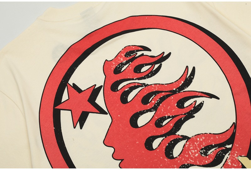 Beautiful Fashion Hell Star Ins Same Style Vintage Printed Top for Men and Women Casual Fashionable Pure Cotton Washable Short-Sleeved T-Shirt