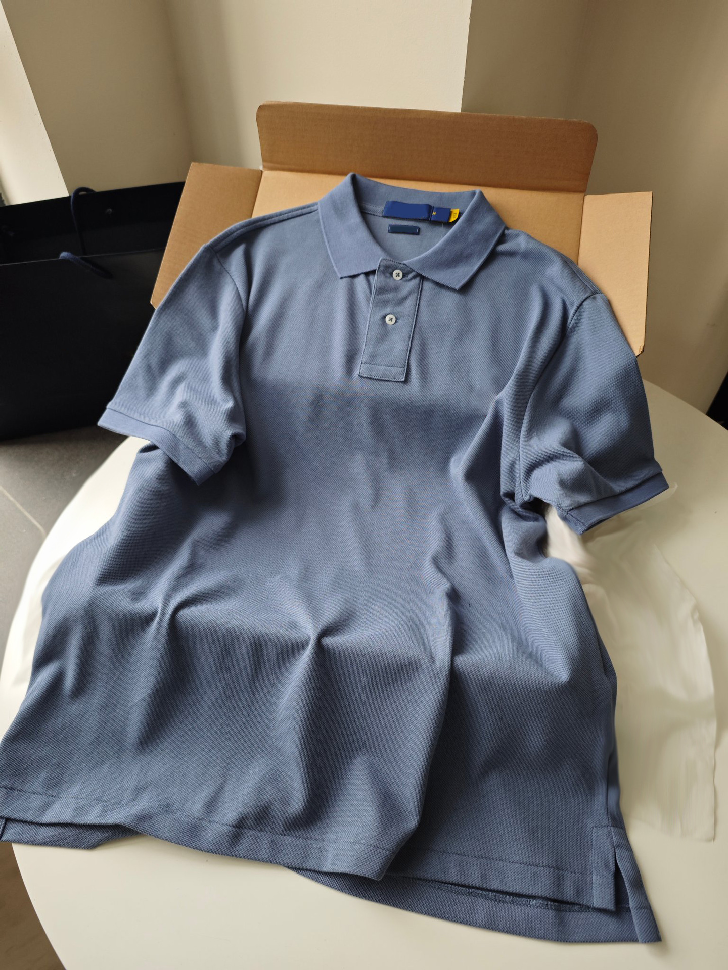New Entry Luxury Business Pure Cotton Short-sleeved T-shirt Pony Embroidered Two-button POLO Shirt Men's and Women's Top Commuter
