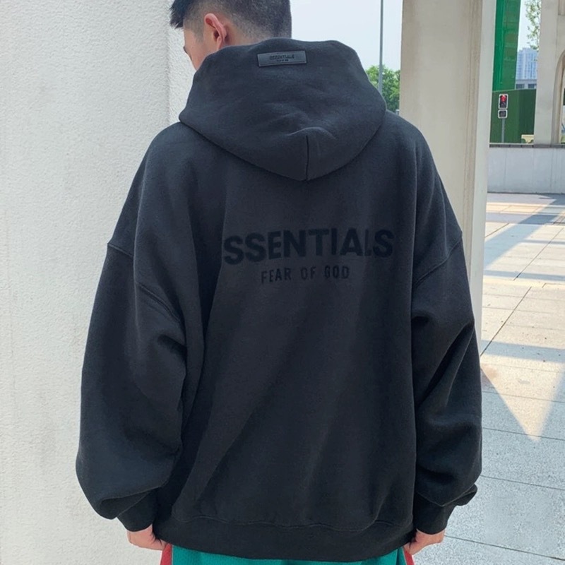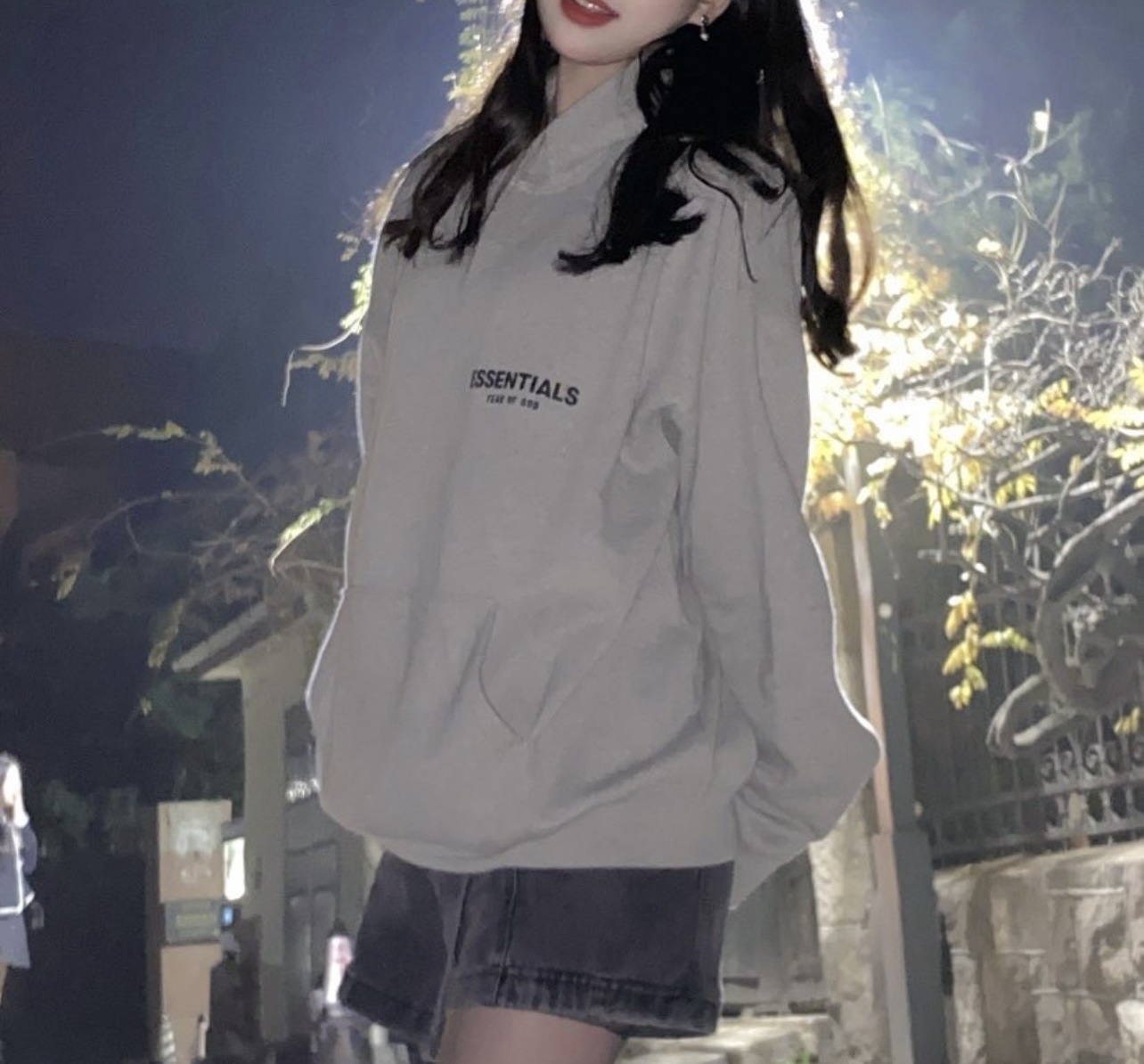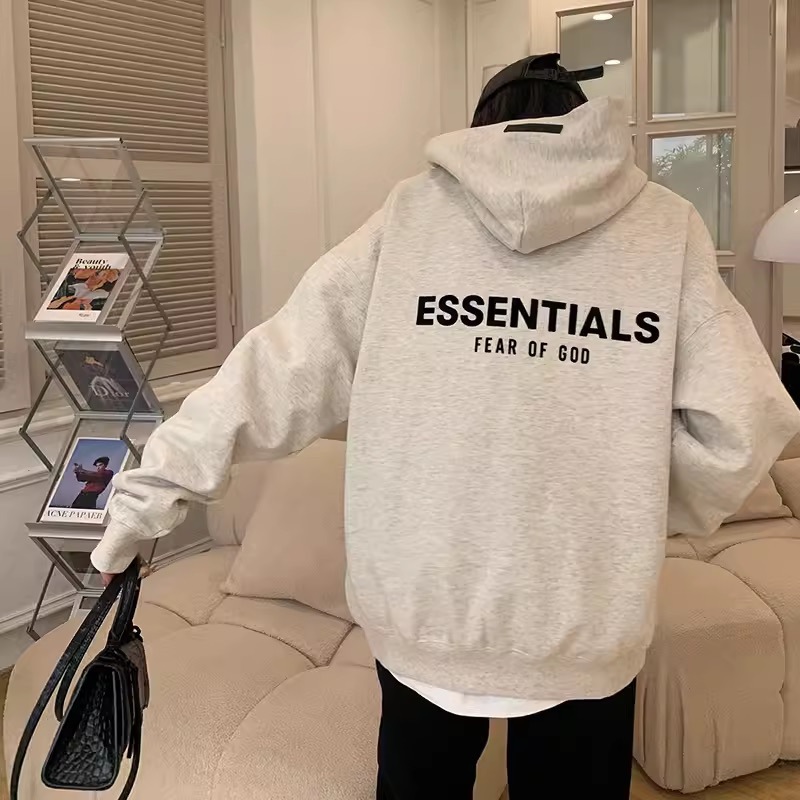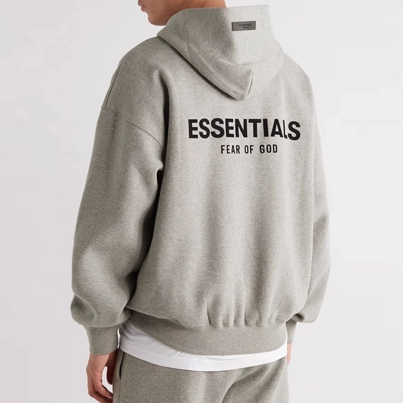 Essentials SS22 Light Oatmeal Logo字母植绒套头连帽卫衣
