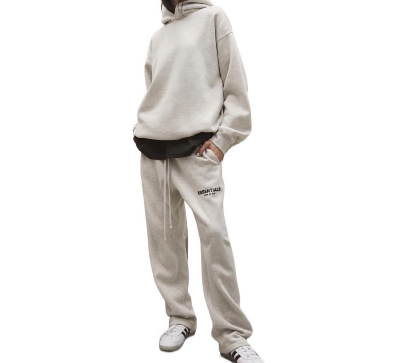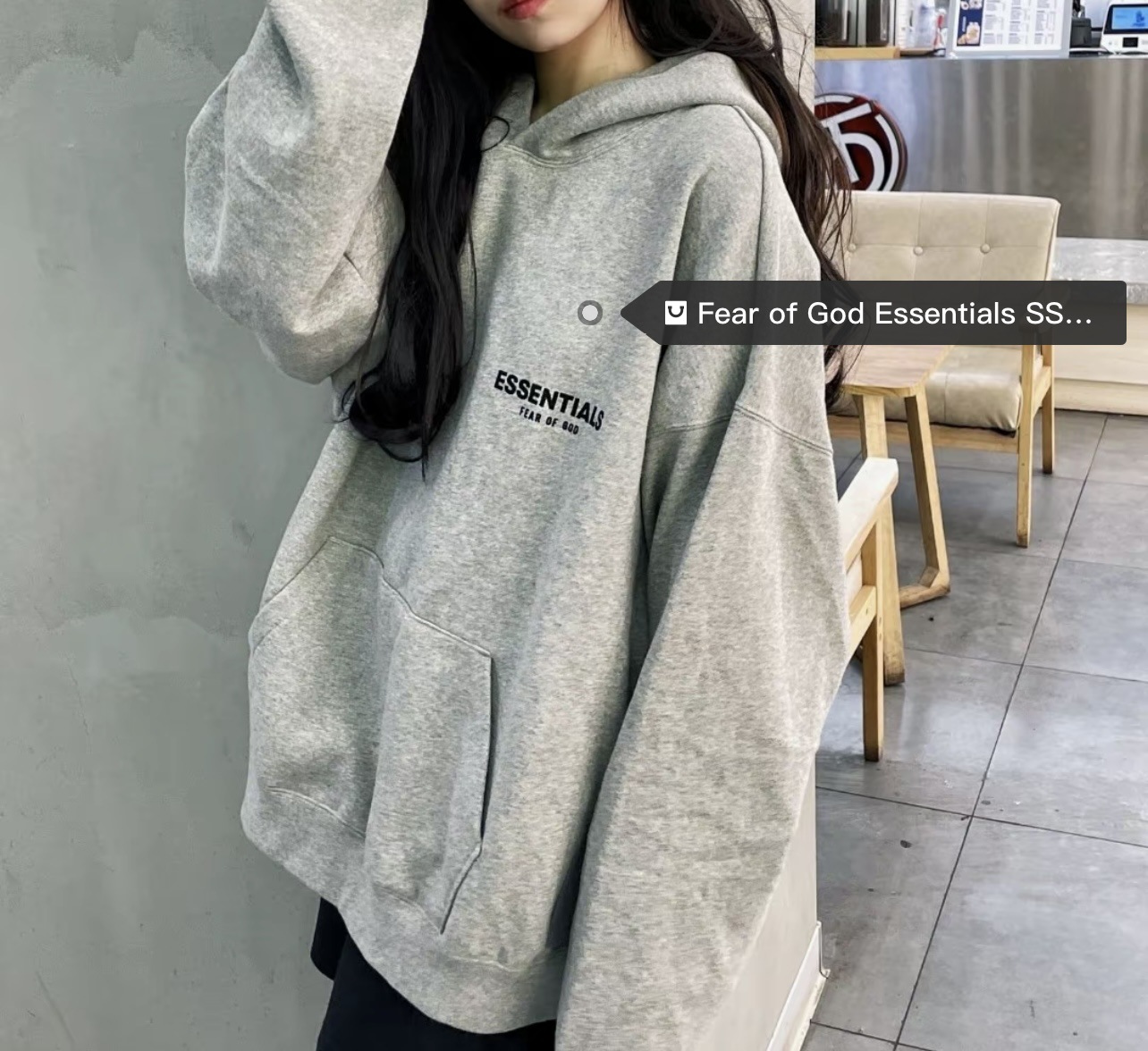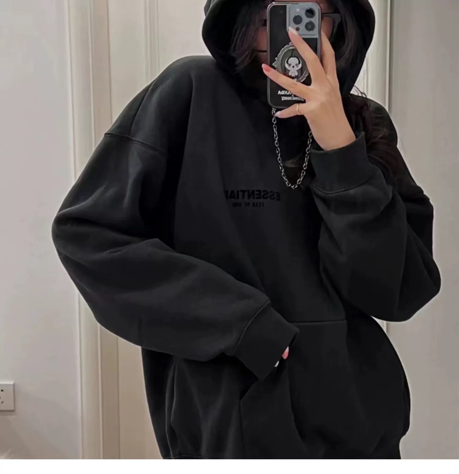 Essentials SS22 Light Oatmeal Logo字母植绒套头连帽卫衣