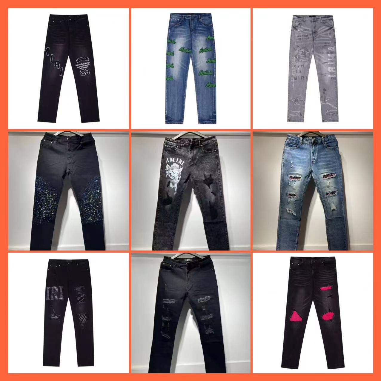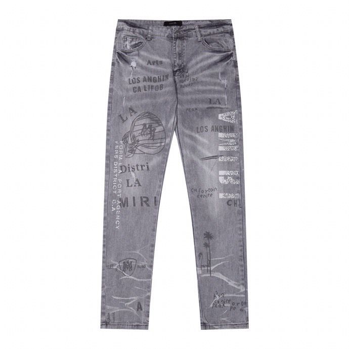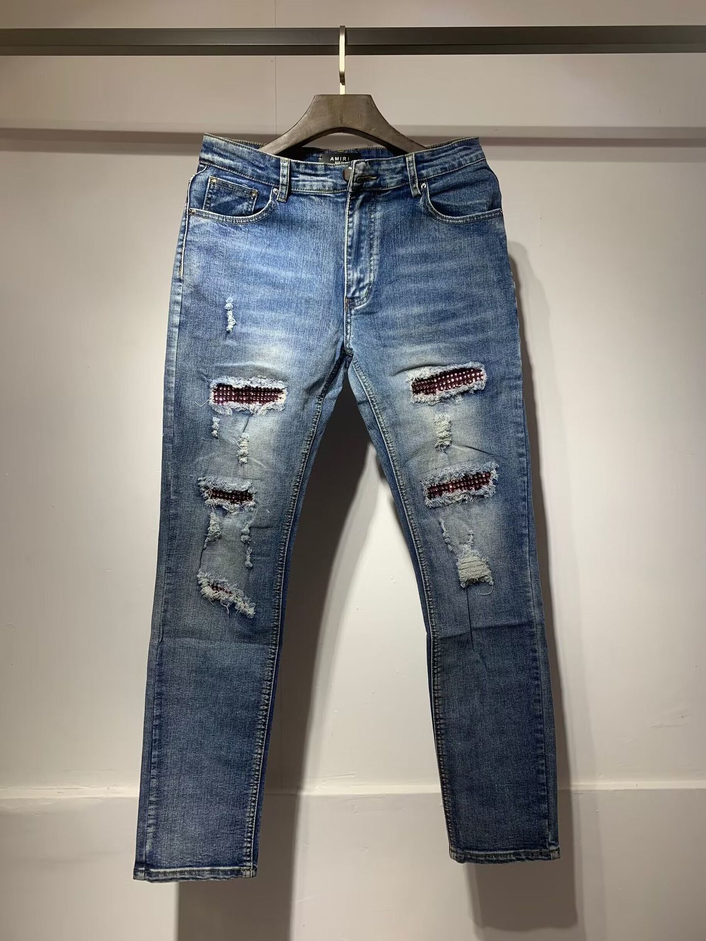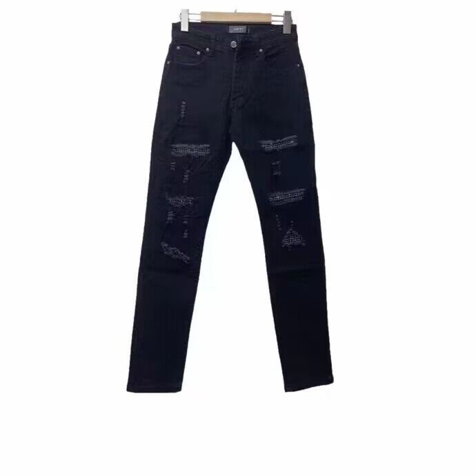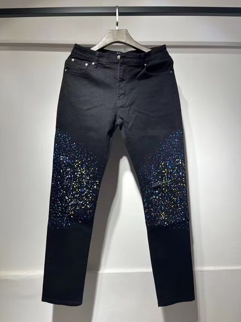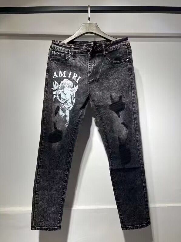 AM1R1 ICON American-style High Street Trendy Brand Angel Ripped Paint Hot Drilling Slim-fit Jeans Men's and Women's All-match Pants