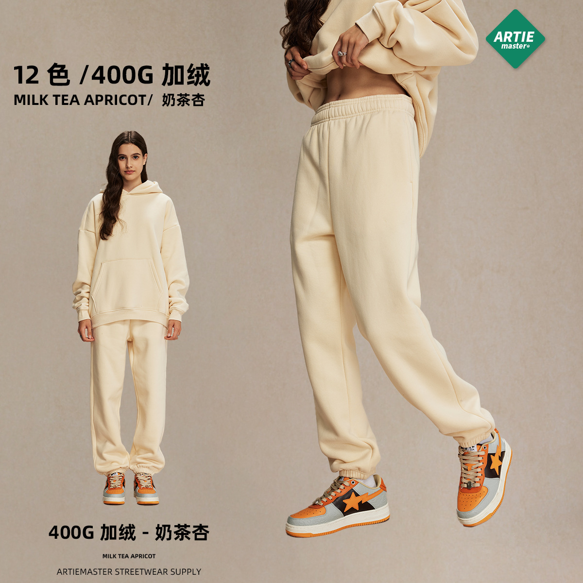 2025 winter polar fleece 400g fleece-lined padded casual men's pants toe drawstring loose tide brand men's and women's pants