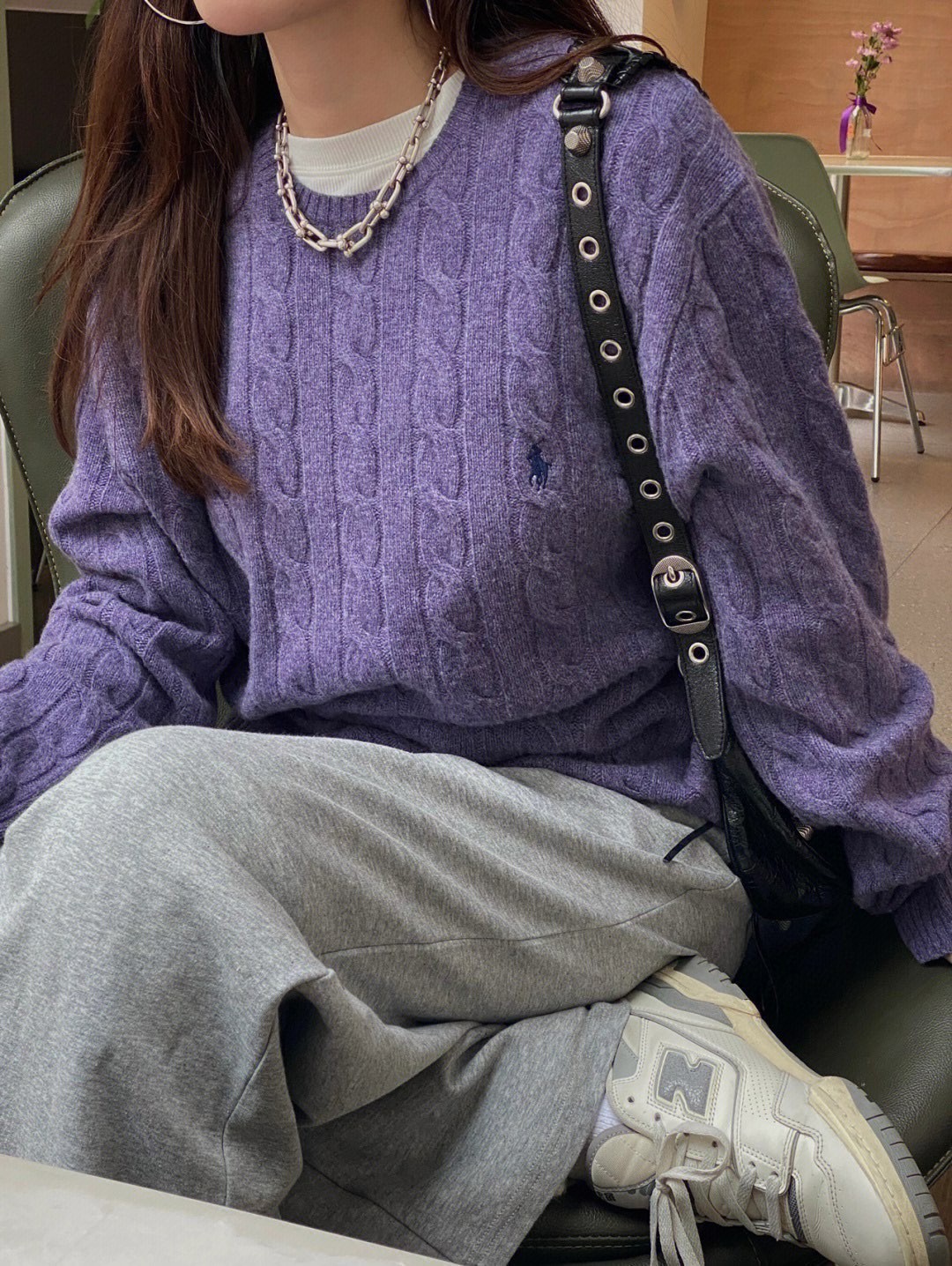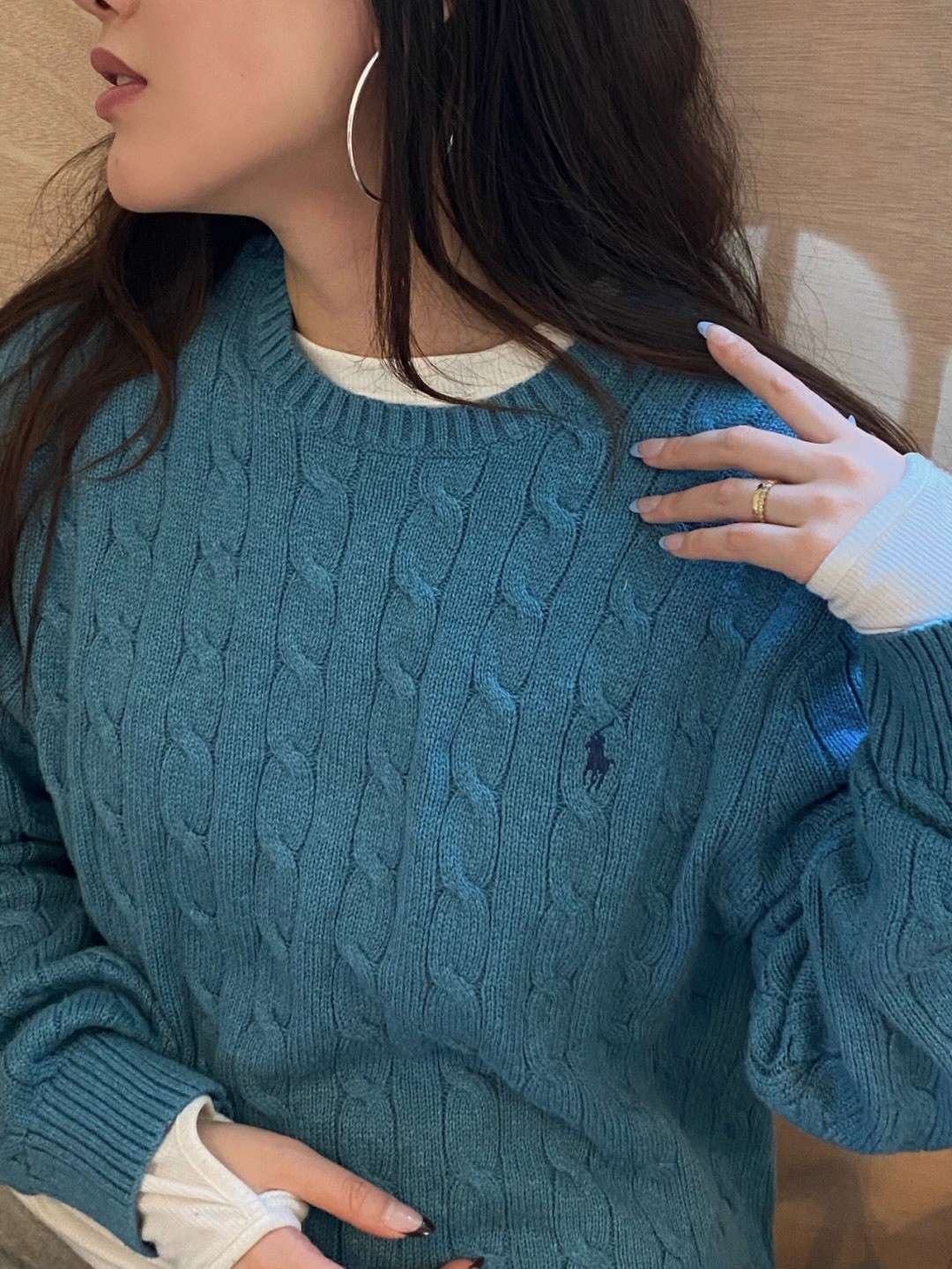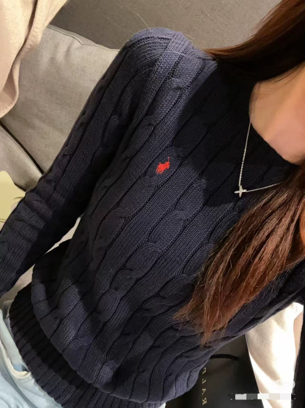 Original Foreign Trade Sweep Size Cotton Ralph Pony Embroidered Classic Twist Round Neck Knitted Long Sleeve Top
