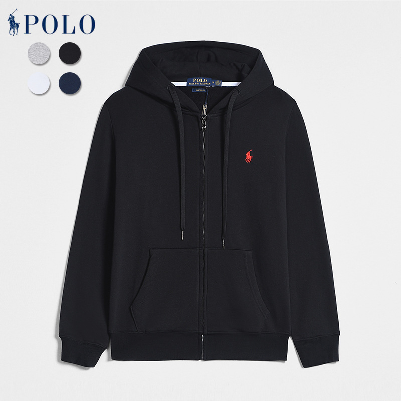 2024 Autumn and Winter Men's Casual All-match Polo Sweater Pure Cotton Solid Color Embroidered Pony Label Zipper Pullover Cardigan