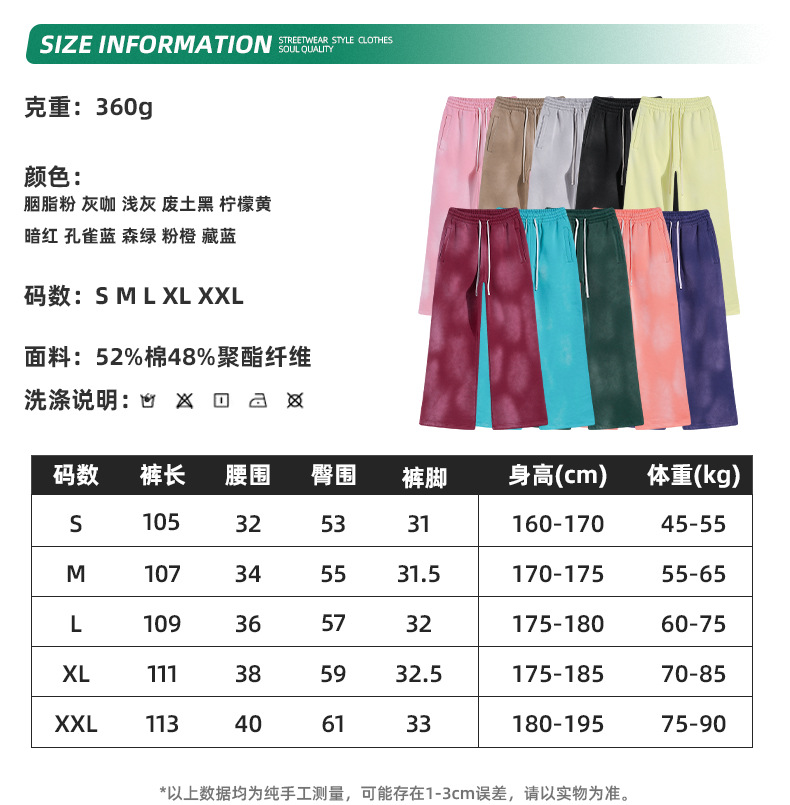 2024 autumn and winter new 360G splash ink white spray dye wash water do old grinding edge spray horse monkey loose fleece-lined trousers