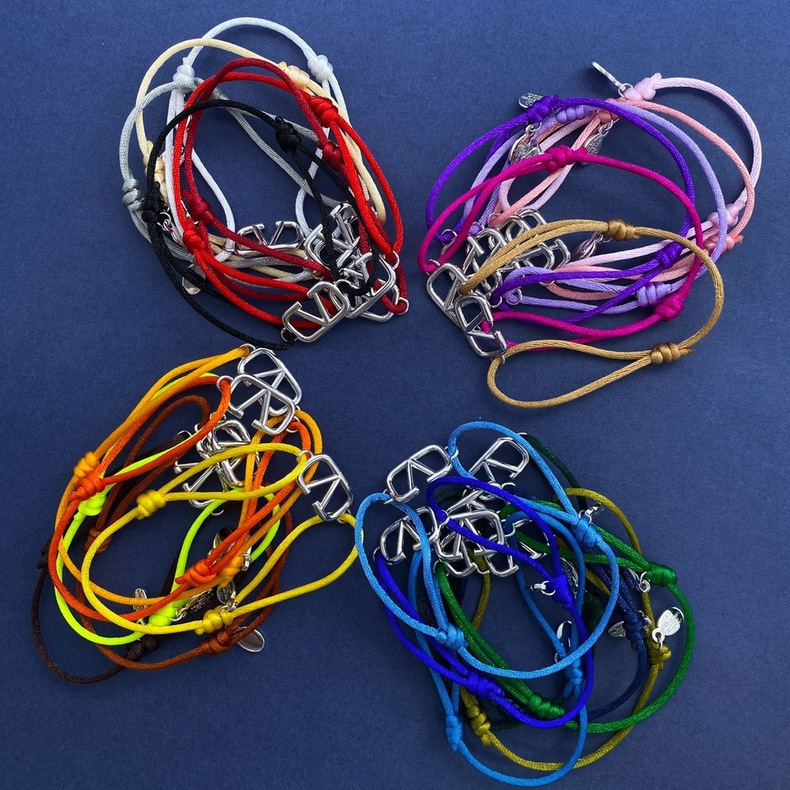 A curved face of the V letter sign hollowed out, long-sided card stretching, lucky rope multicolored hand lacering hand straps