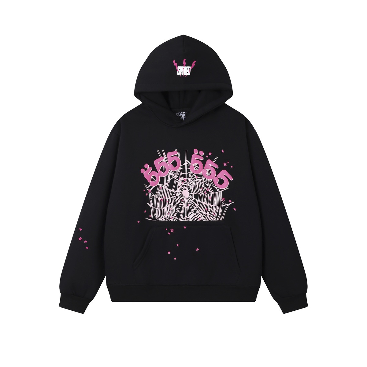 Beautiful Trendy Men's and Women's 555555 Spider Web Foam Printed Hip-Hop Loose fleece-lined Hooded Sweat suit