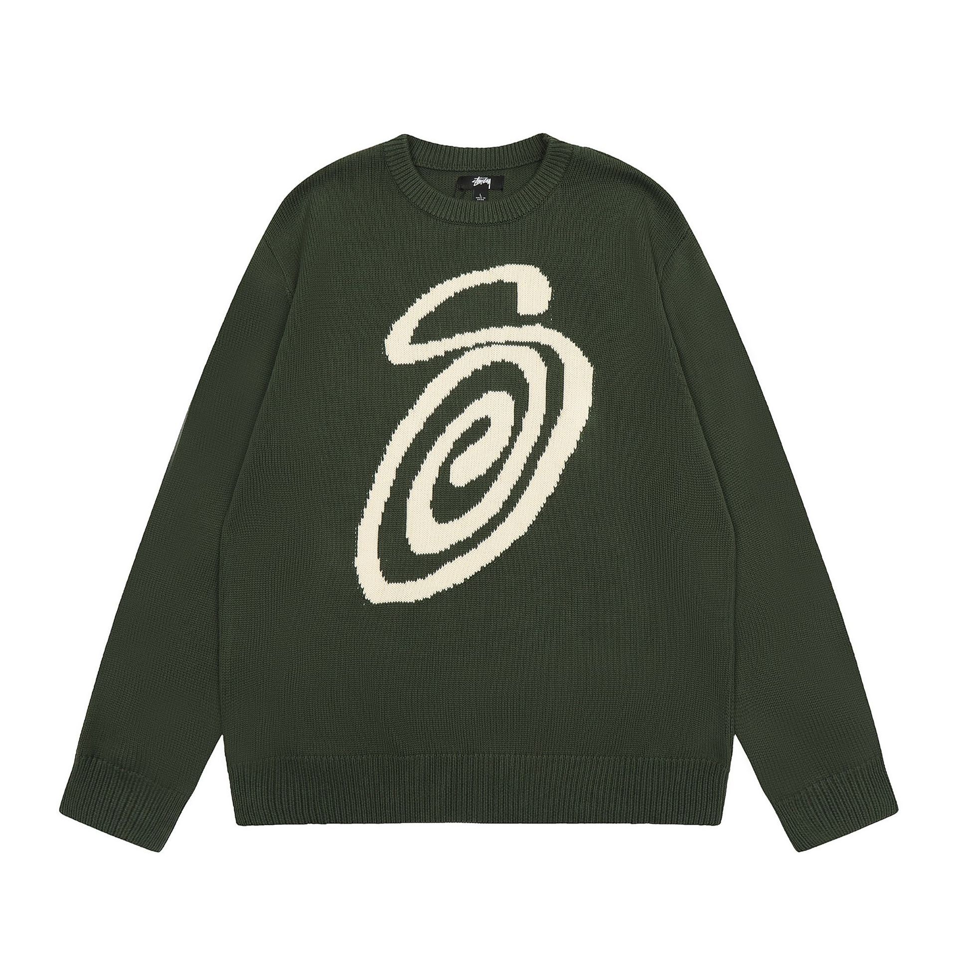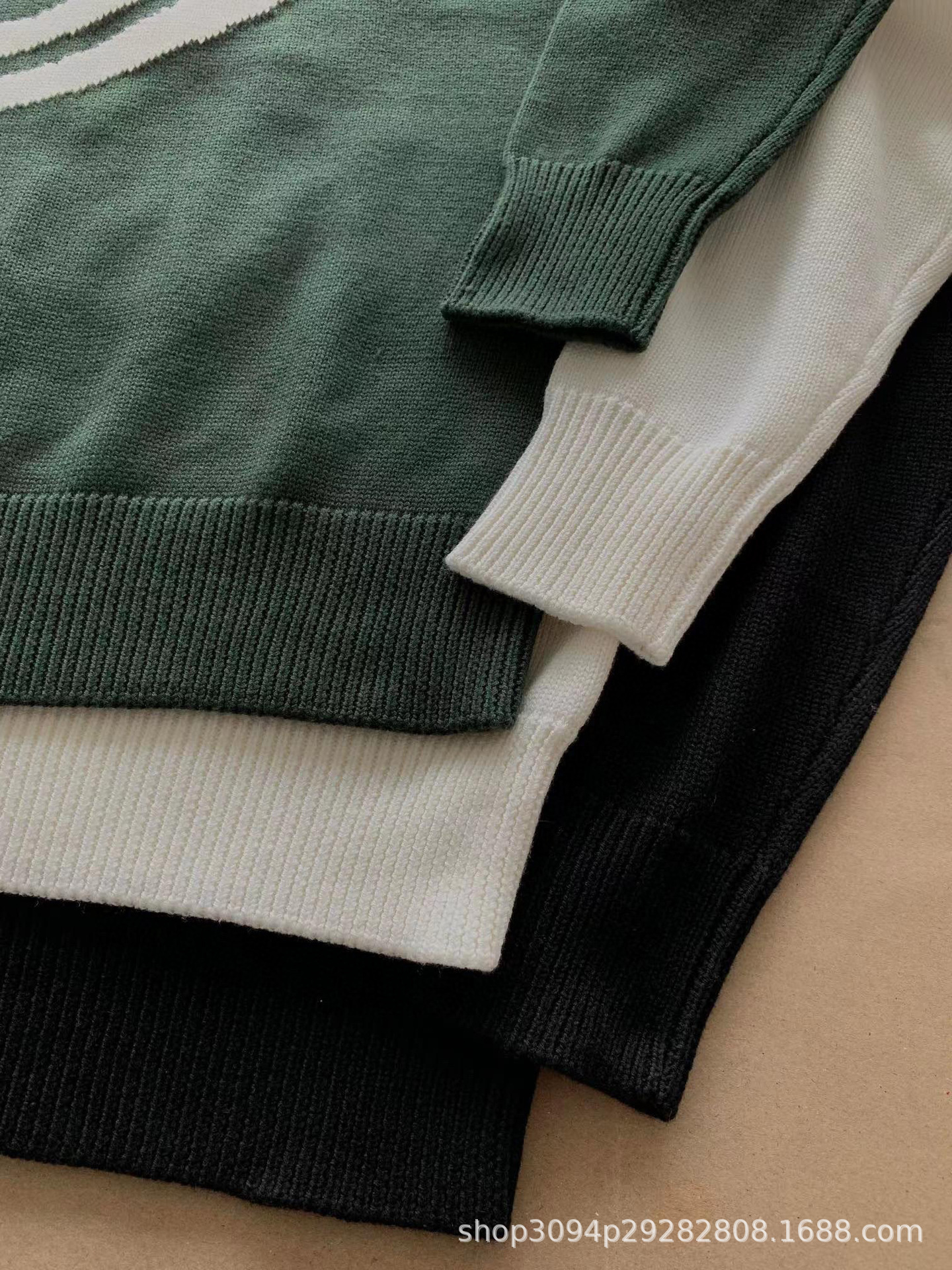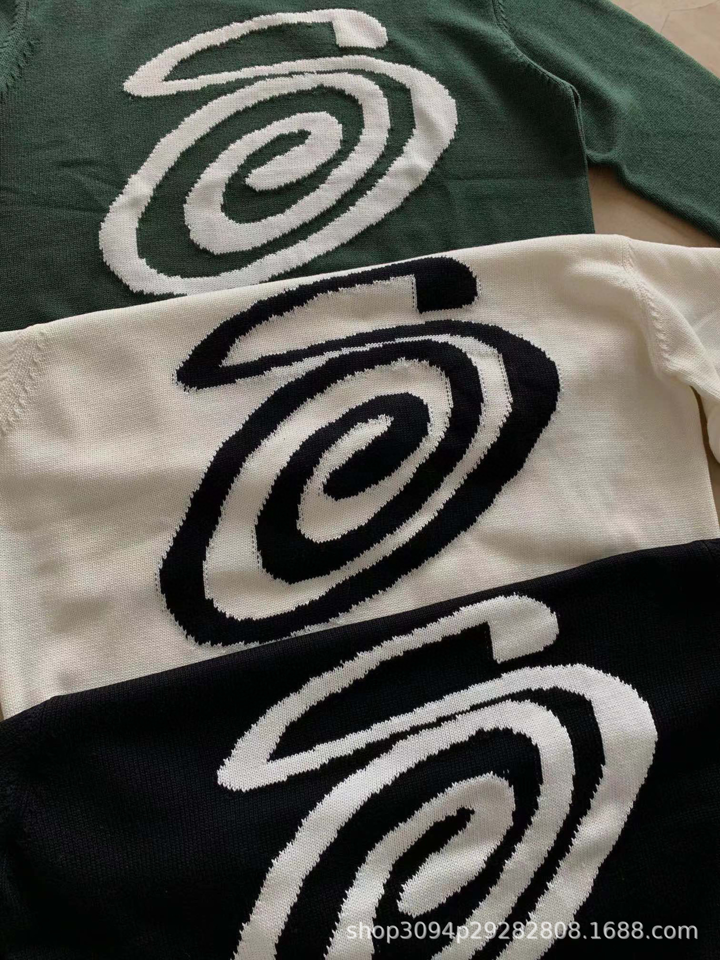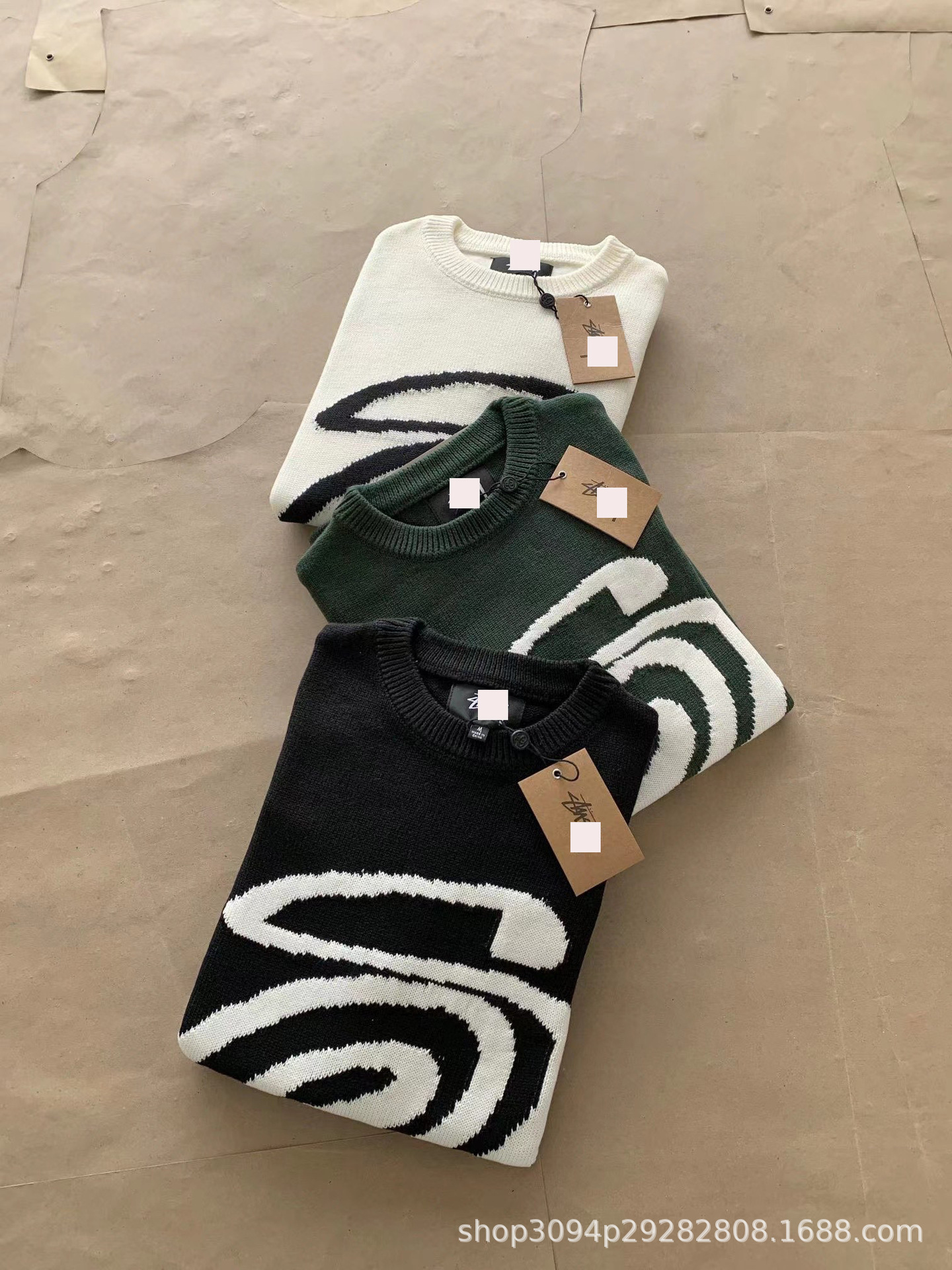 2023跨境欧美外贸现货新款S字母系列蚊香大提花Logo纯色圆领毛衣