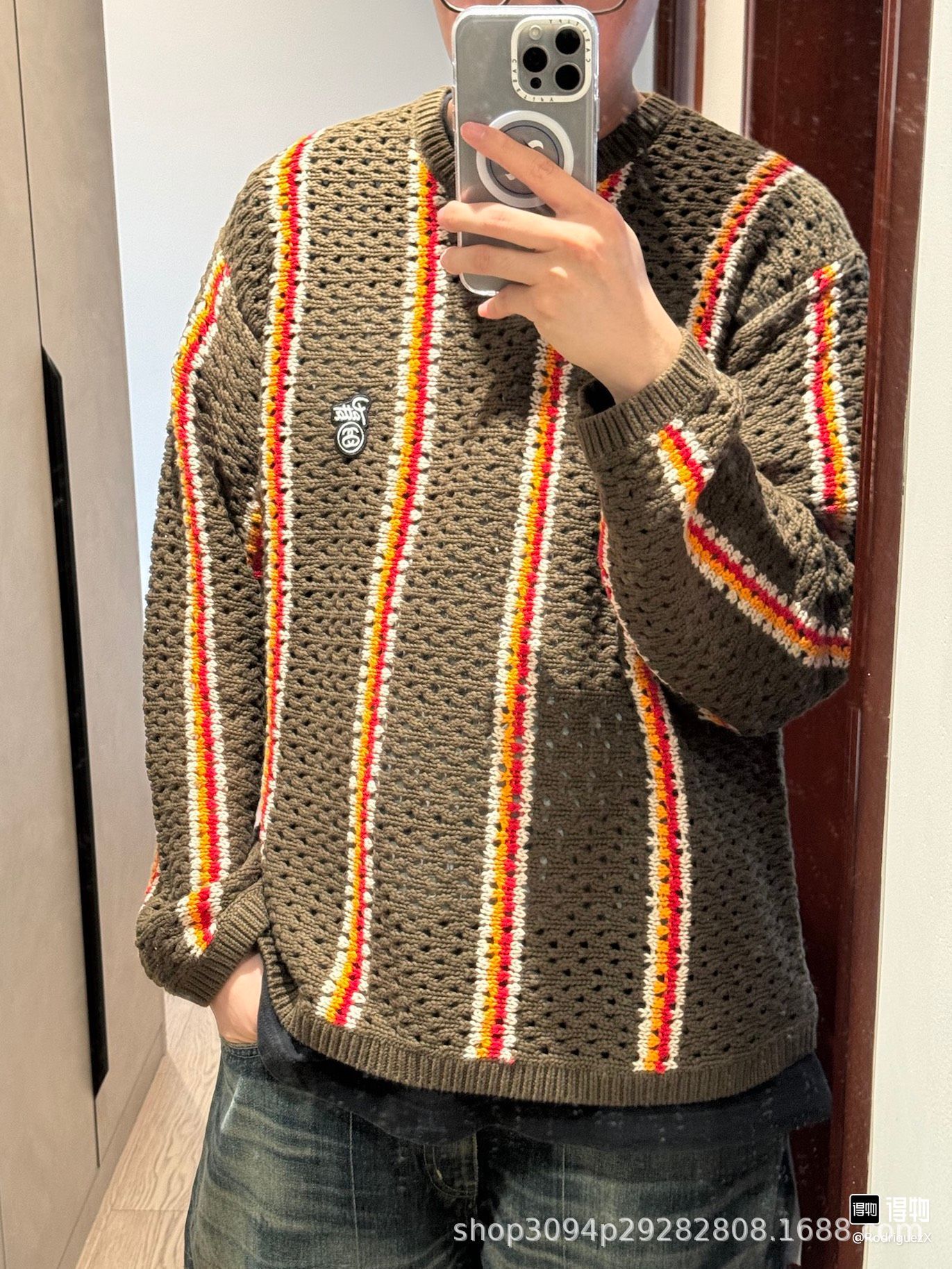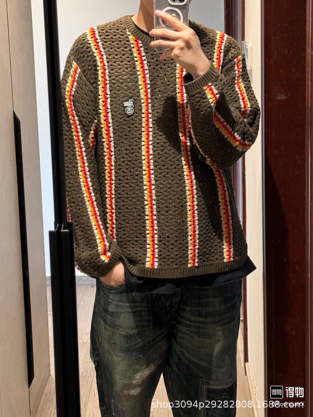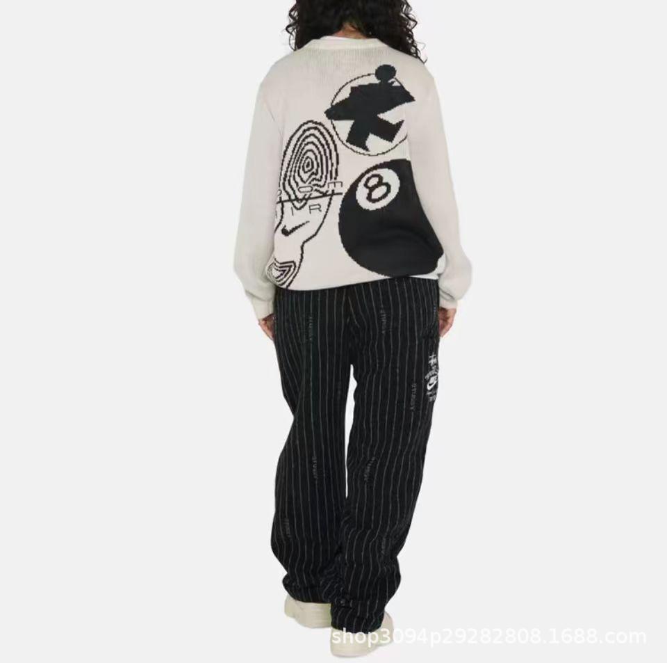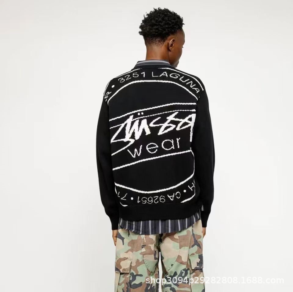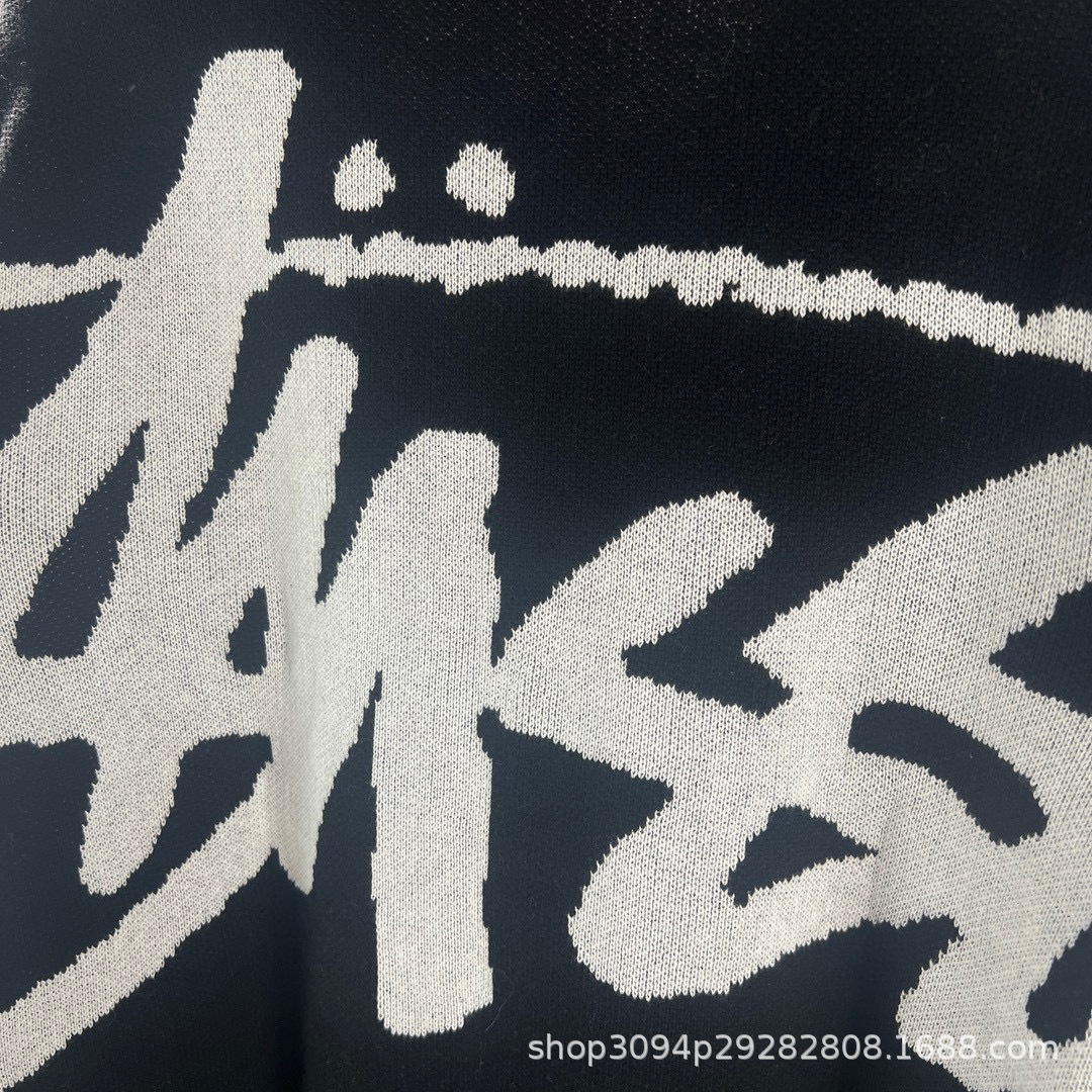 2023跨境欧美外贸现货新款S字母系列蚊香大提花Logo纯色圆领毛衣