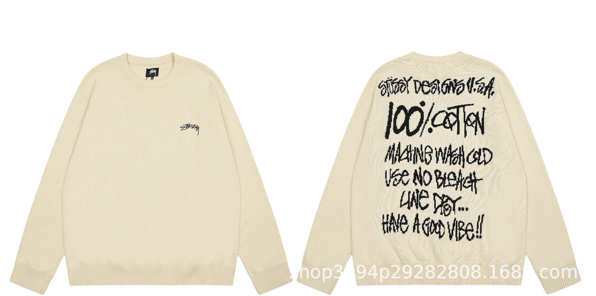 2023 Cross-border European and American Foreign Trade in stock New S-letter Series Mosquito-repellent Incense Jacquard Logo Solid Color Crewneck Sweater