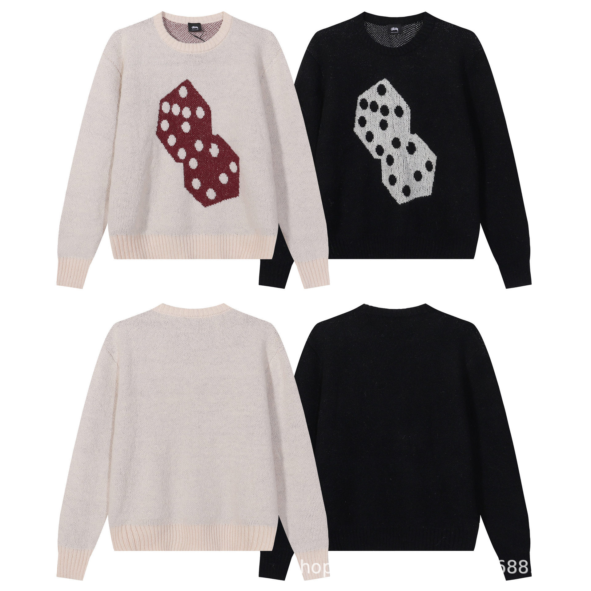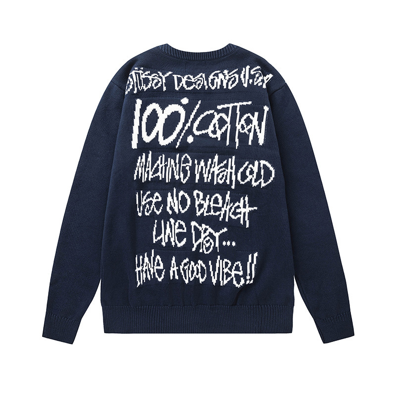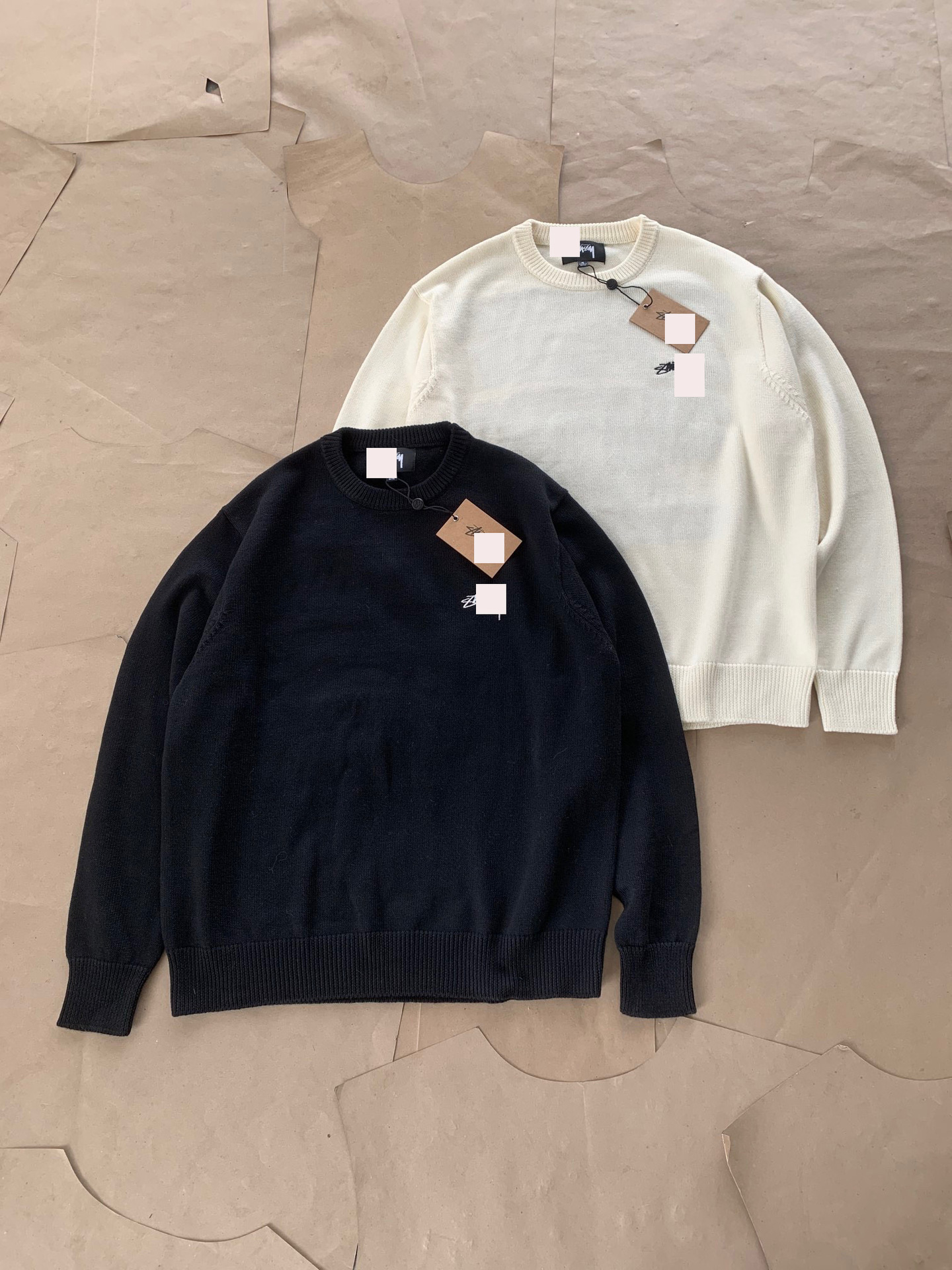 23S斯图STU新款针织衫弧形字母印花男女同款毛衣情侣百搭纯棉长袖
