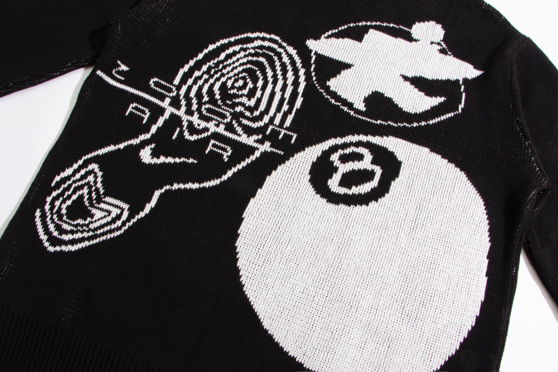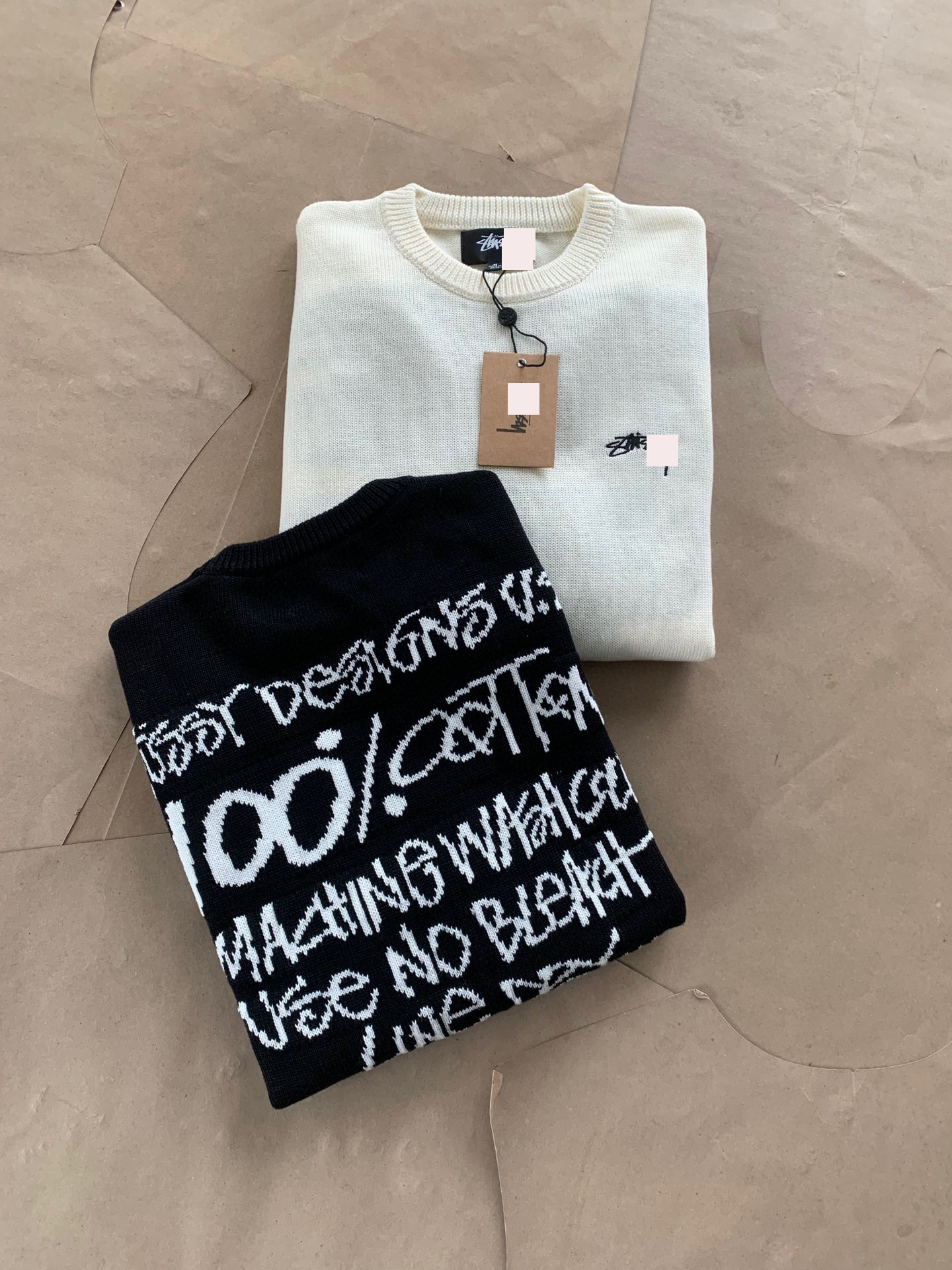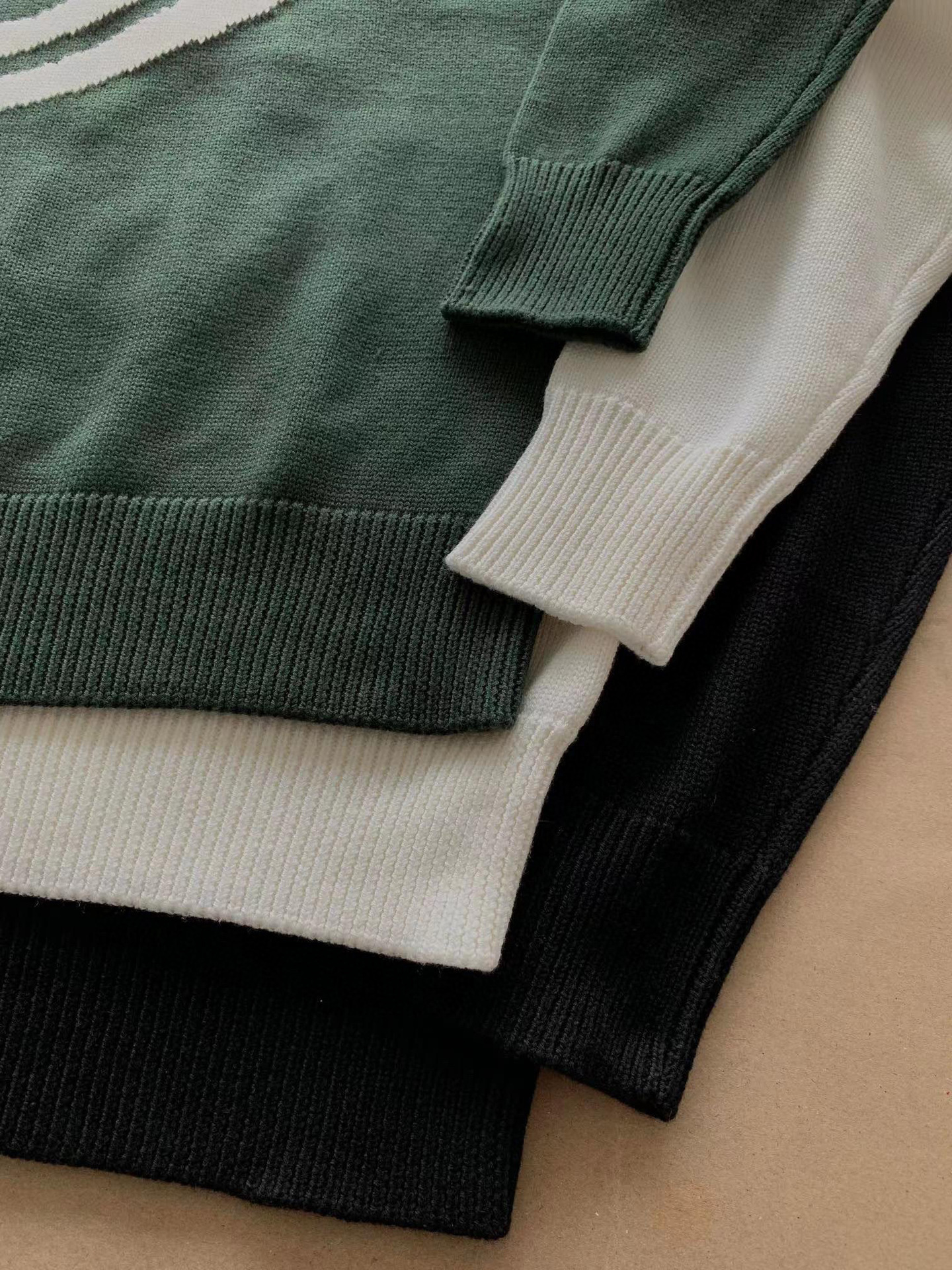 23S斯图STU新款针织衫弧形字母印花男女同款毛衣情侣百搭纯棉长袖