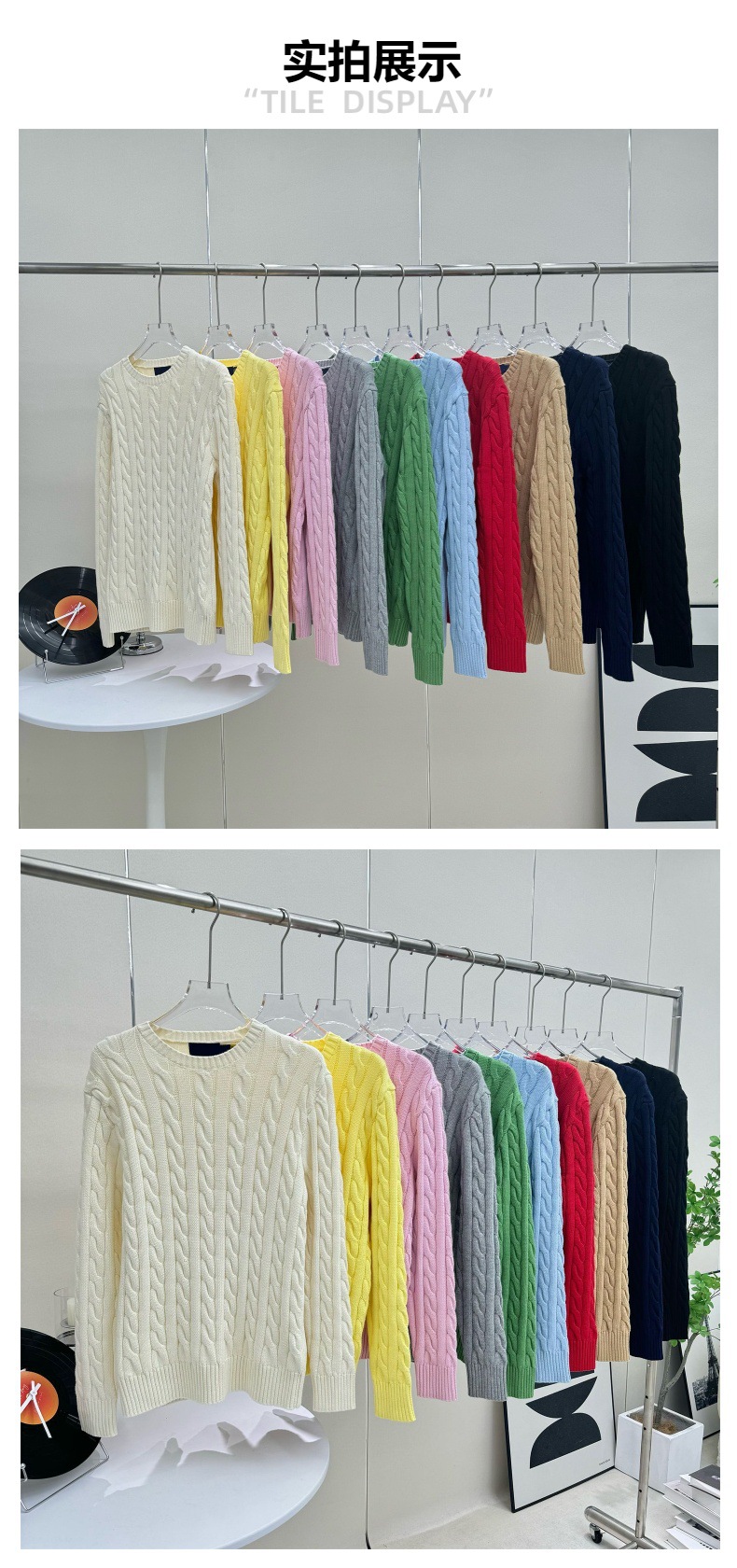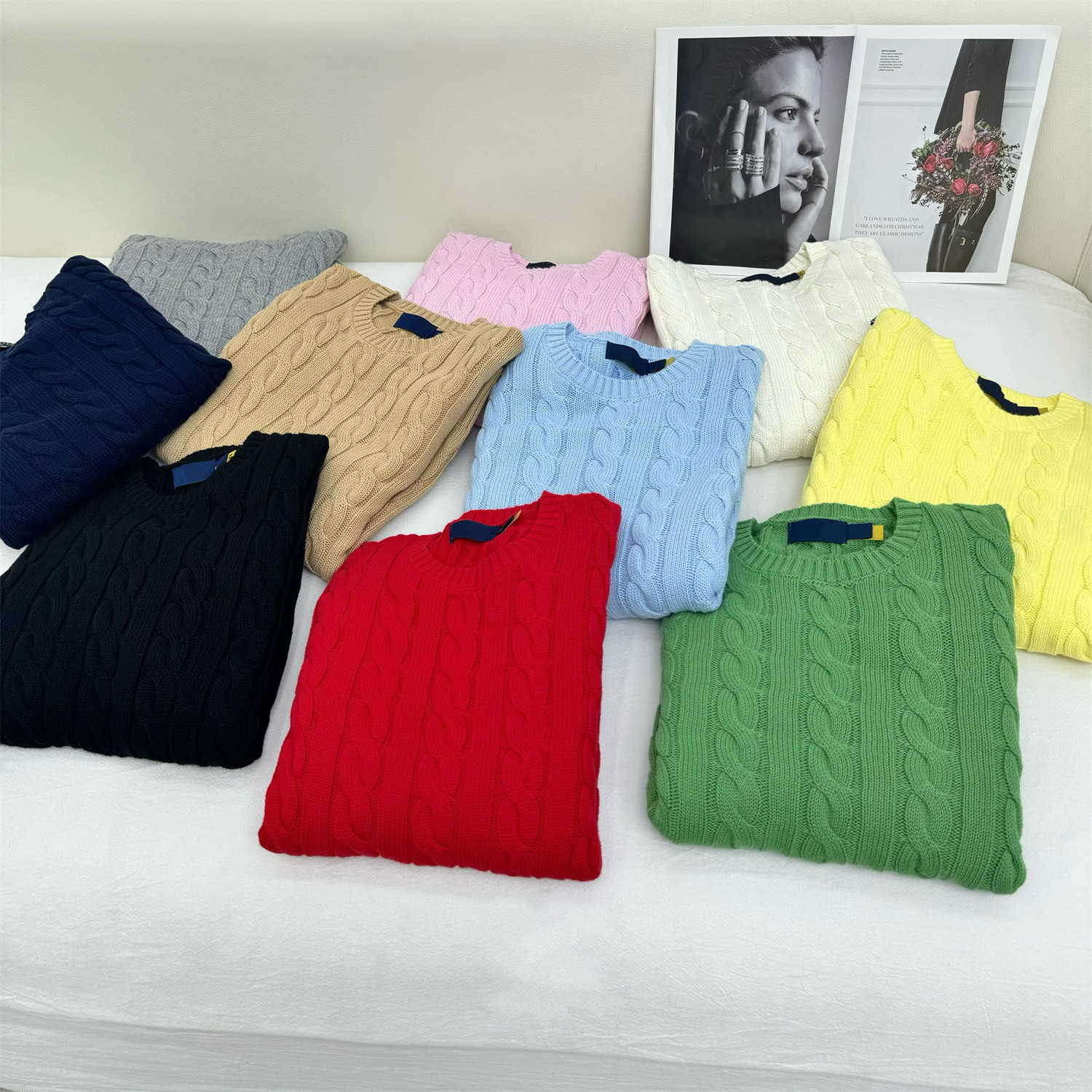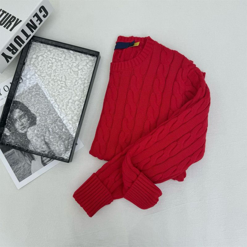 RL Ralph Pony Embroidered Autumn and Winter Round Neck Twist Long Sleeve Sweater Loosen