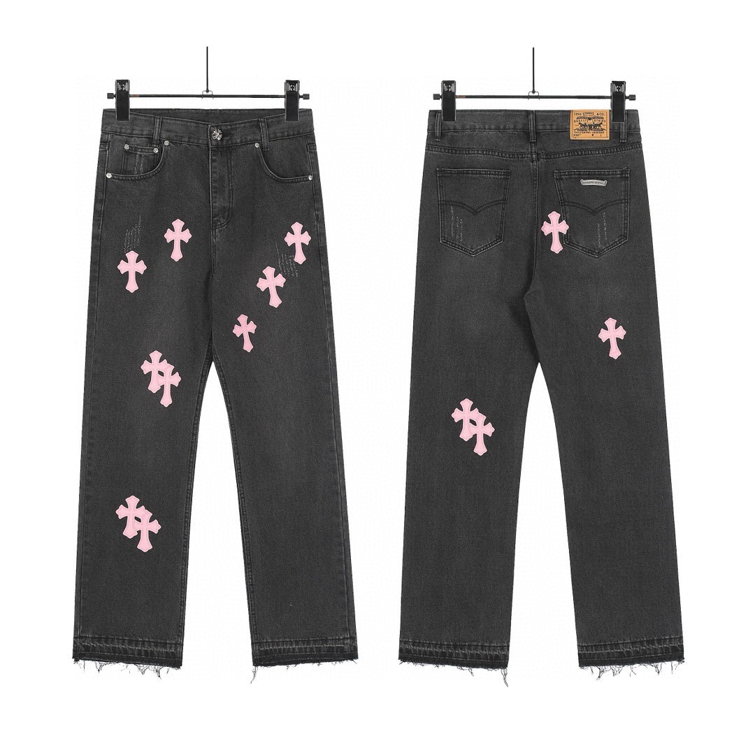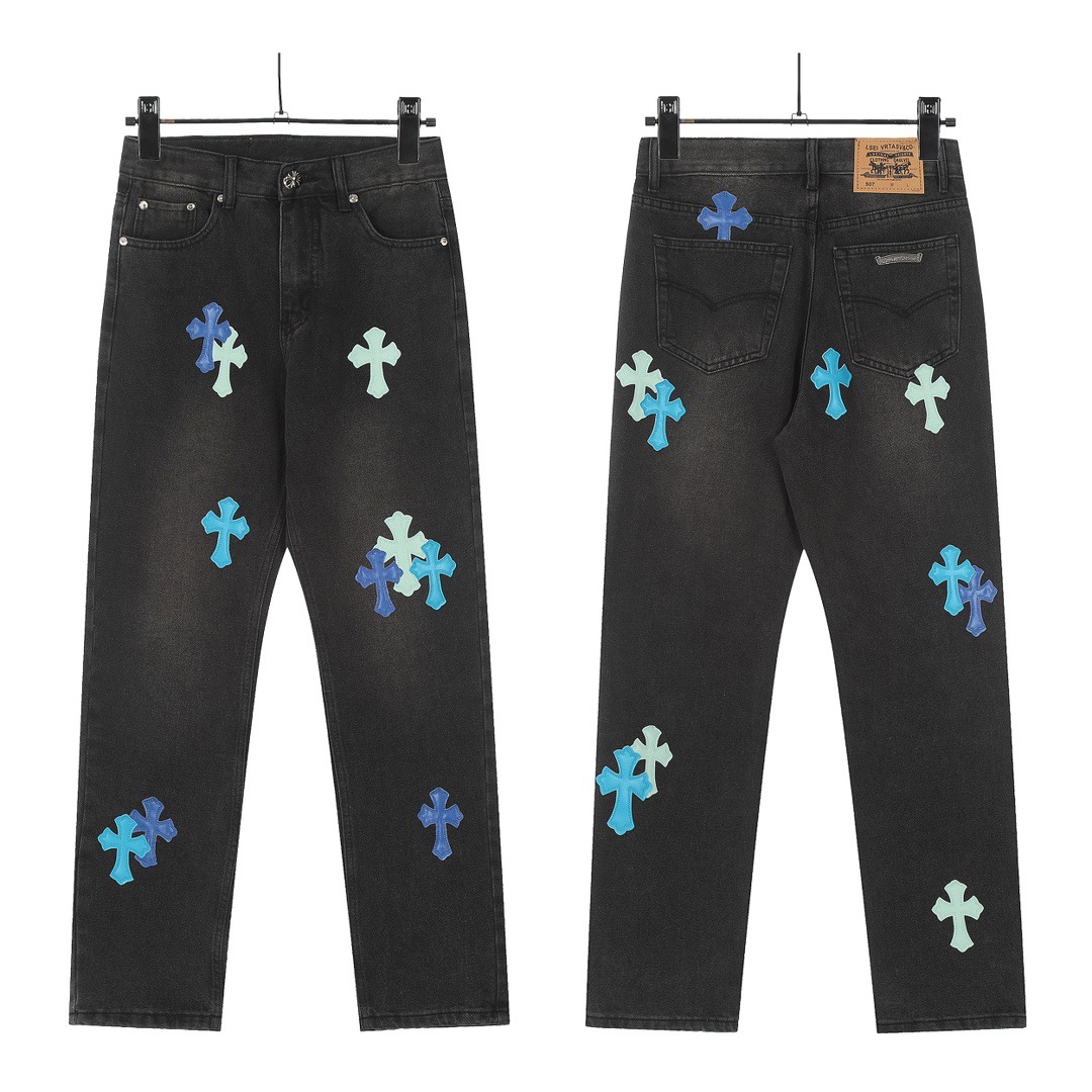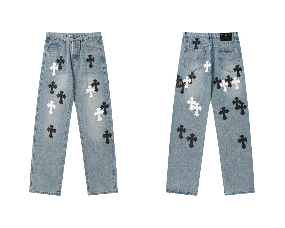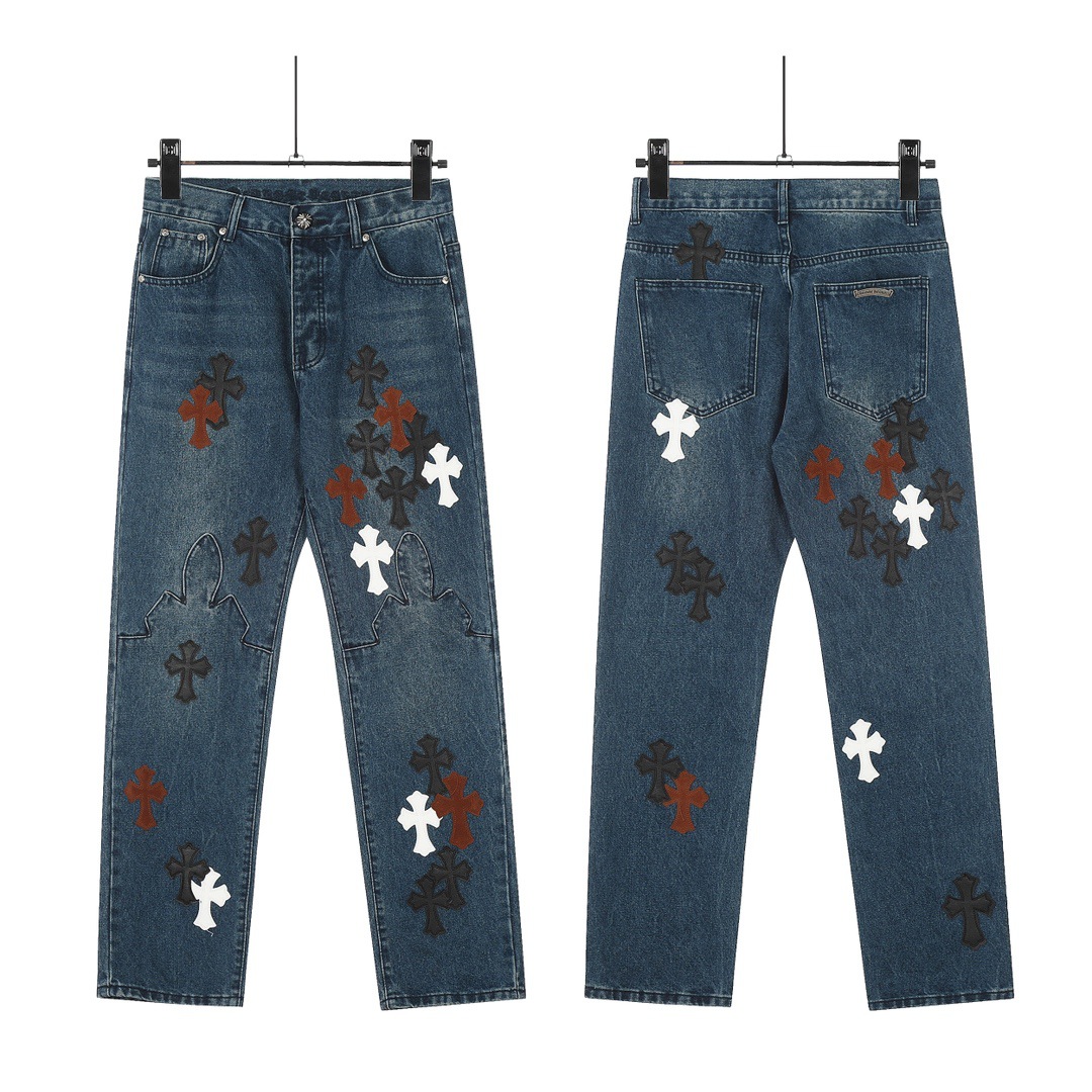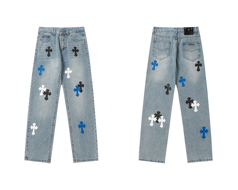 24 cross-border trend card correct version of Cro classic color cross cobbled jeans men and women in one wholesale
