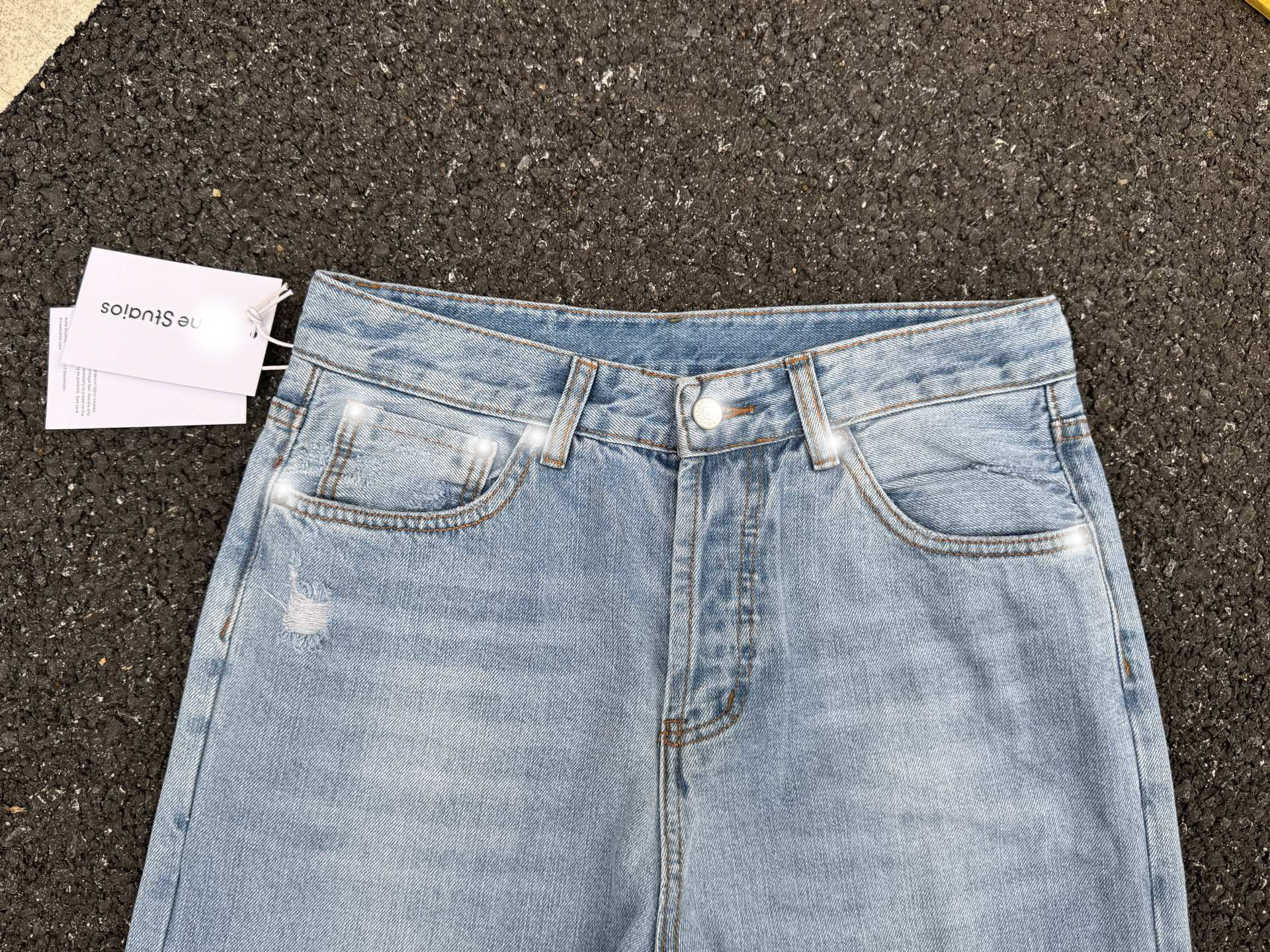 2024A classic light blue loose straight tubular leg pants American jeans of the same fashion