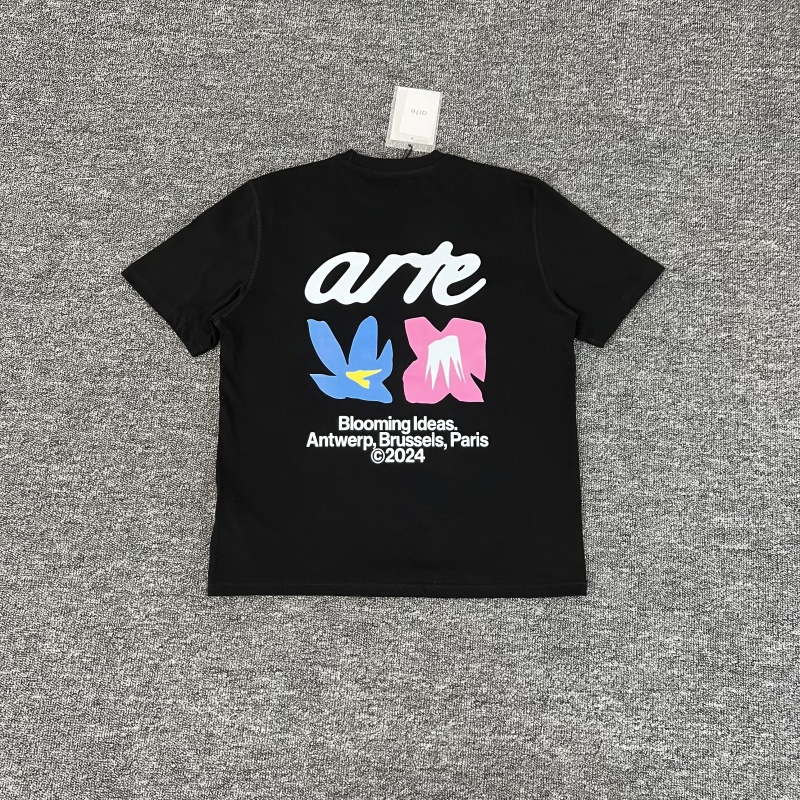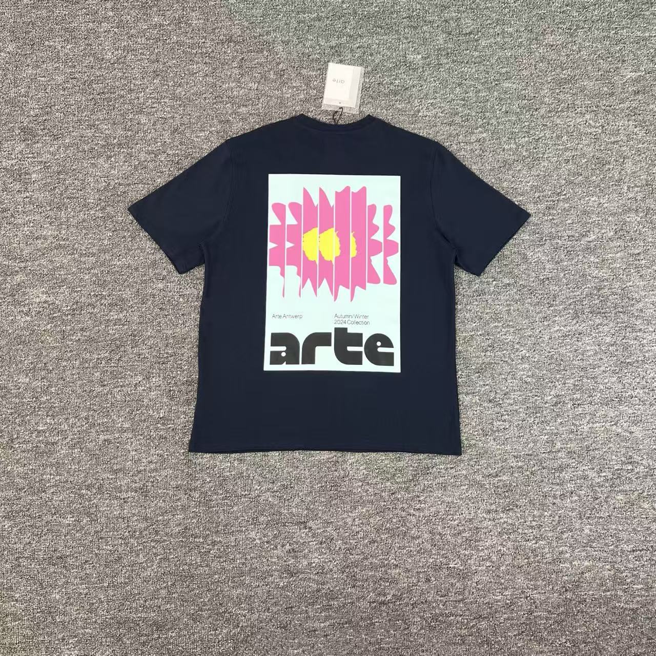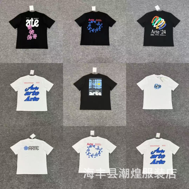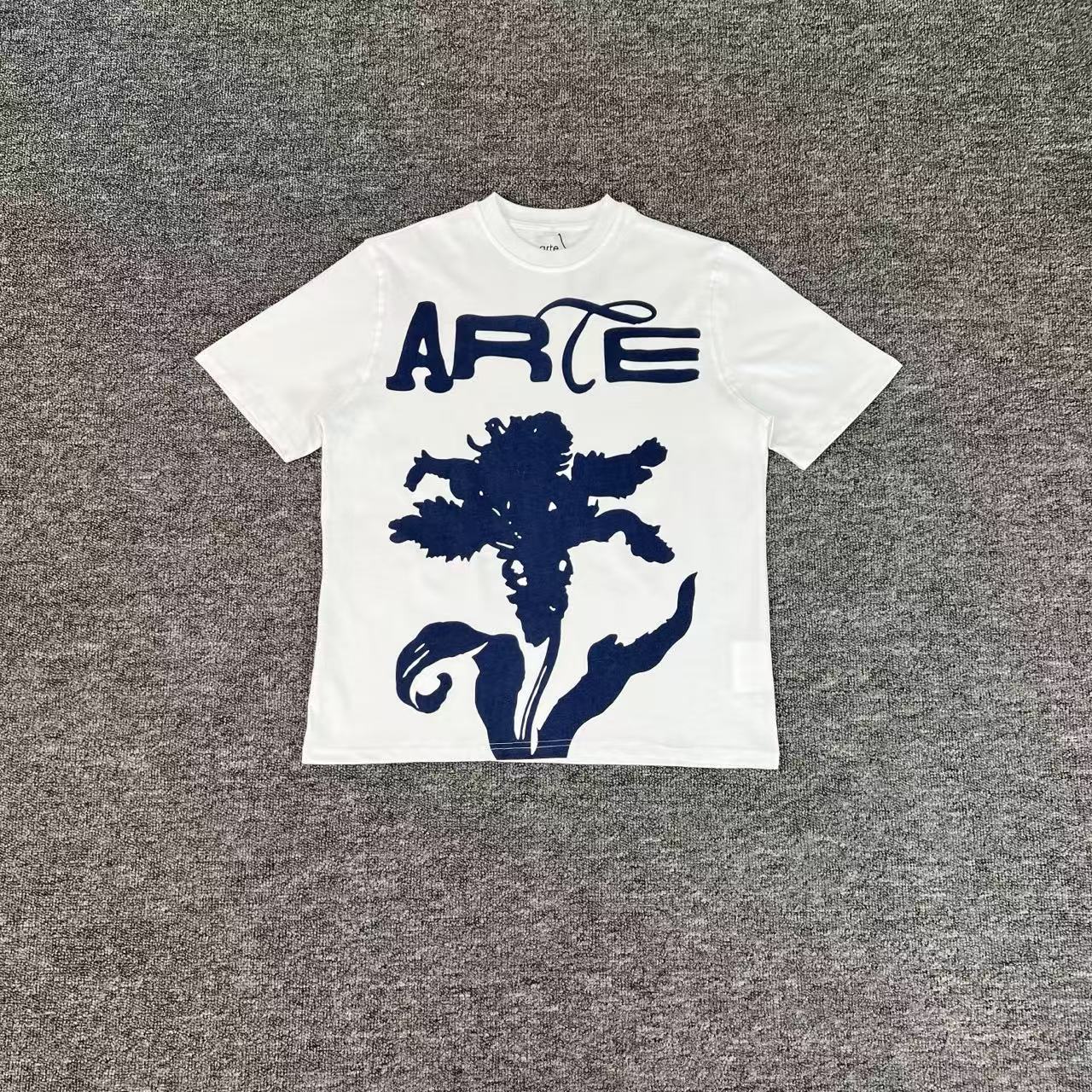 Cross-border Foreign Trade Trendy Brand Arte New Arrival Flower Leaf Rose Letter Printing Men's and Women's Couples Short-sleeved T-shirt Trendy