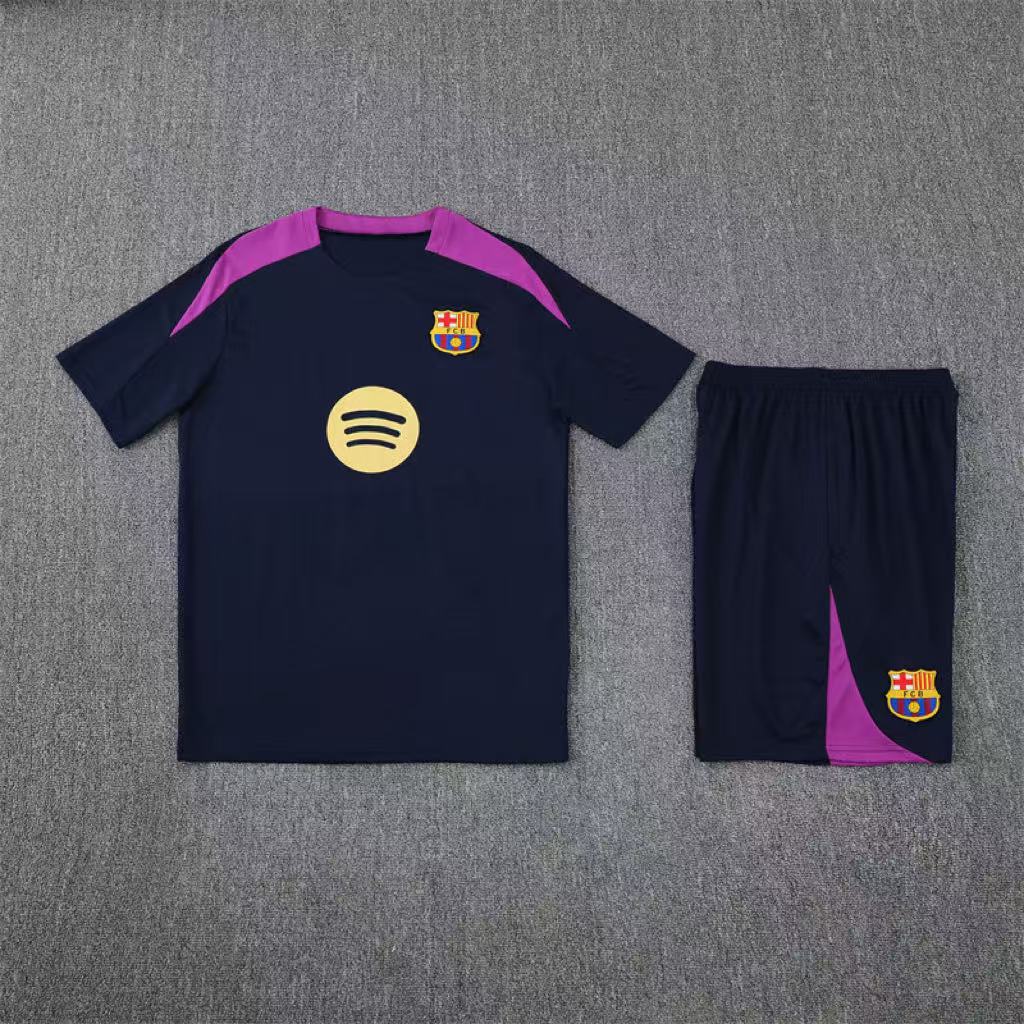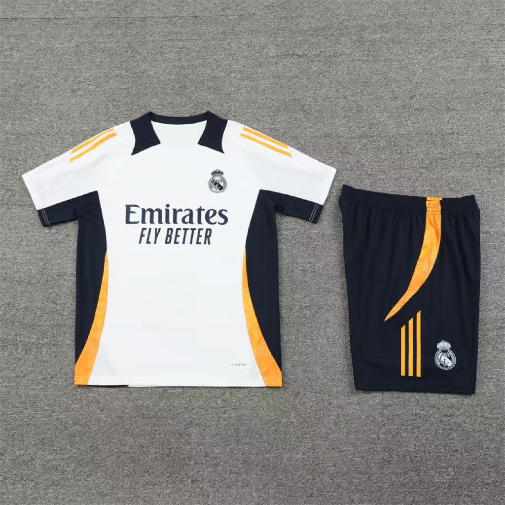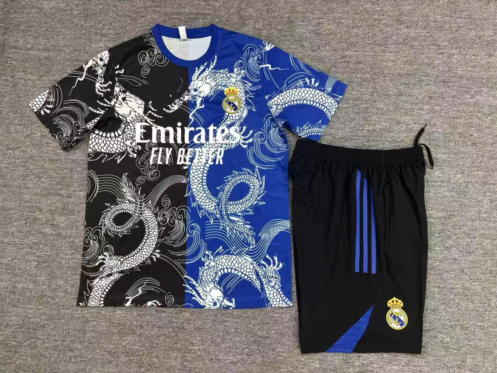 New Real Madrid Barcelona Club Children's Training Clothes Sports suit Casual Short-sleeved Double Zipper Pocket Embroidery