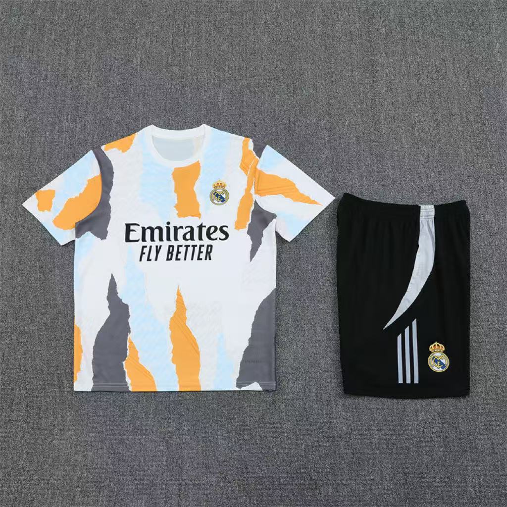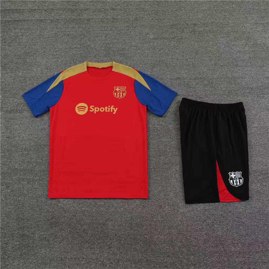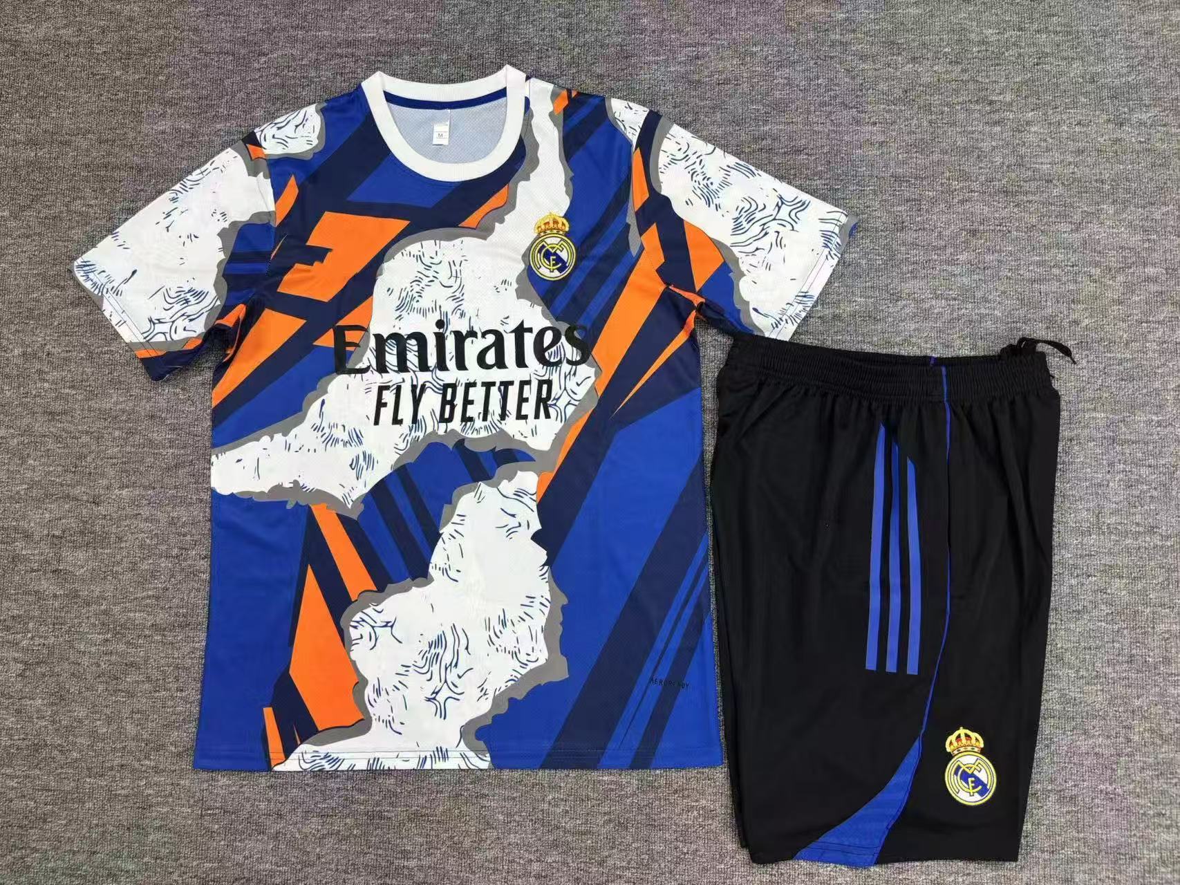 New Real Madrid Barcelona Club Children's Training Clothes Sports suit Casual Short-sleeved Double Zipper Pocket Embroidery