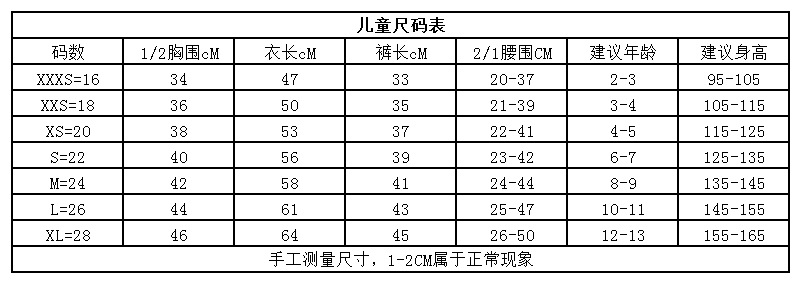 16码, 18码, 20码, 22码, 24码, 26码, 28码