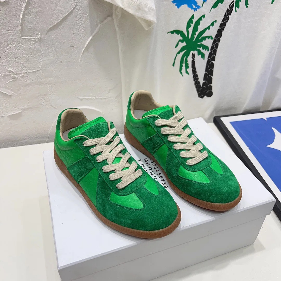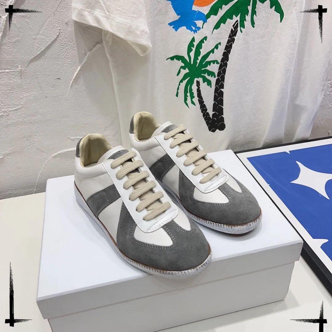 in stock 25 High Version Cowhide Vintage German Training Shoes Men's and Women's White Shoes Leather Soft Leather Couple Forrest Gump Training Board Shoes