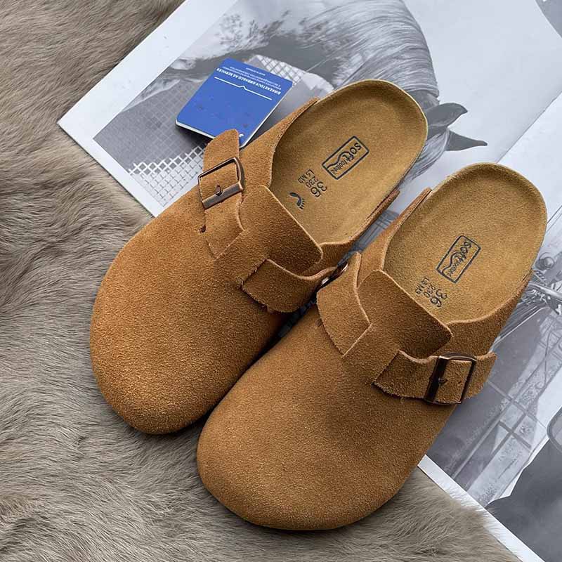 Genuine Leather Boken Slippers for Women 2025 New Outwear Toe Half-Drag Thick Bottom All-Match BK Retro Slip-on Lazy Shoes