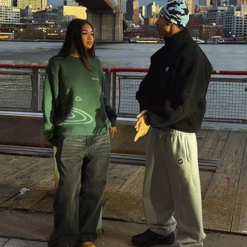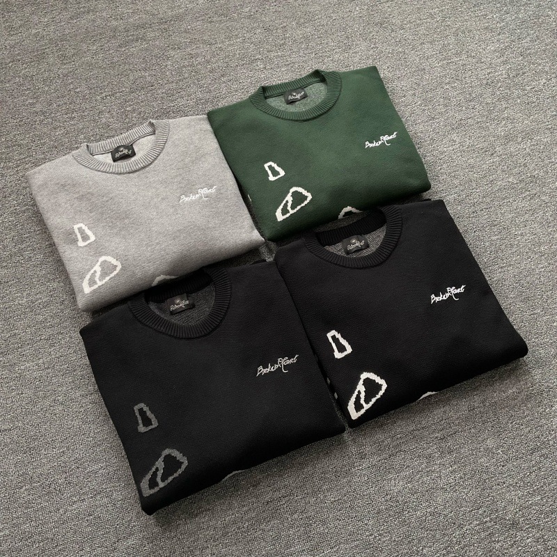 Broken Planet planet embroidered logo knitted American street men and women with collar sweater