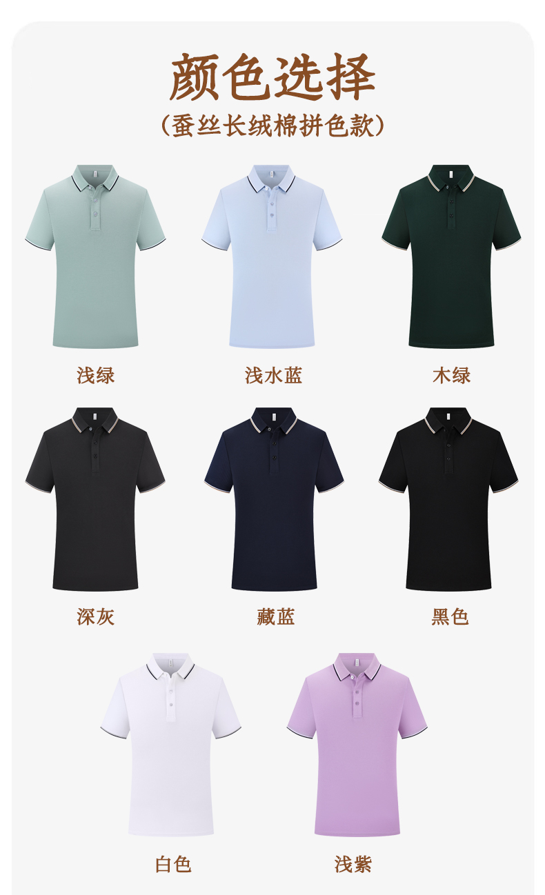 --------------酷爽长绒棉纯色款:68元-------------- 纯色款-藏青 纯色款-黑色 纯色款-花灰 纯色款-白色 纯色款-粉紫 纯色款-鱼水蓝 纯色款-豆绿 纯色款-松木杏 纯色款-大红 纯色款- 克莱因蓝 纯色款-深灰 --------------拼色珠地提花领款:68元-------------- 提花领-鱼水蓝 提花领-豆绿 提花领-花灰 提花领-大红 提花领-克莱因蓝 提花领-藏青 提花领- 黑色 提花领-白色 --------------蚕丝长绒棉拼色款:78元-------------- 蚕丝拼色款-浅绿 蚕丝拼色款-浅水蓝 蚕丝拼色款-木绿 蚕丝拼色款-藏蓝 蚕丝拼色款-黑色 蚕丝拼色款-白色 蚕丝拼色款-浅紫 蚕丝拼色款-深灰 --------------氨纶长绒棉拼色款:78元-------------- 氨纶拼色款-红色 氨纶拼色款-黑色 氨纶拼色款-杏色 氨纶拼色款-粉色 氨纶拼色款-天蓝 氨纶拼色款-深海蓝 氨纶拼色款-草绿 氨纶拼色款-藏蓝 氨纶拼色款-白色 --------------杜邦索罗纳抗菌款:88元-------------- 索罗纳抗菌-黄色 索罗纳抗菌-橙色 索罗纳抗菌-果绿 索罗纳抗菌-鱼水蓝 索罗纳抗菌-白色 索罗纳抗菌-粉色 索罗纳抗菌-黑色 索罗纳抗菌-杏色 索罗纳抗菌-藏蓝 索罗纳抗菌-铁灰