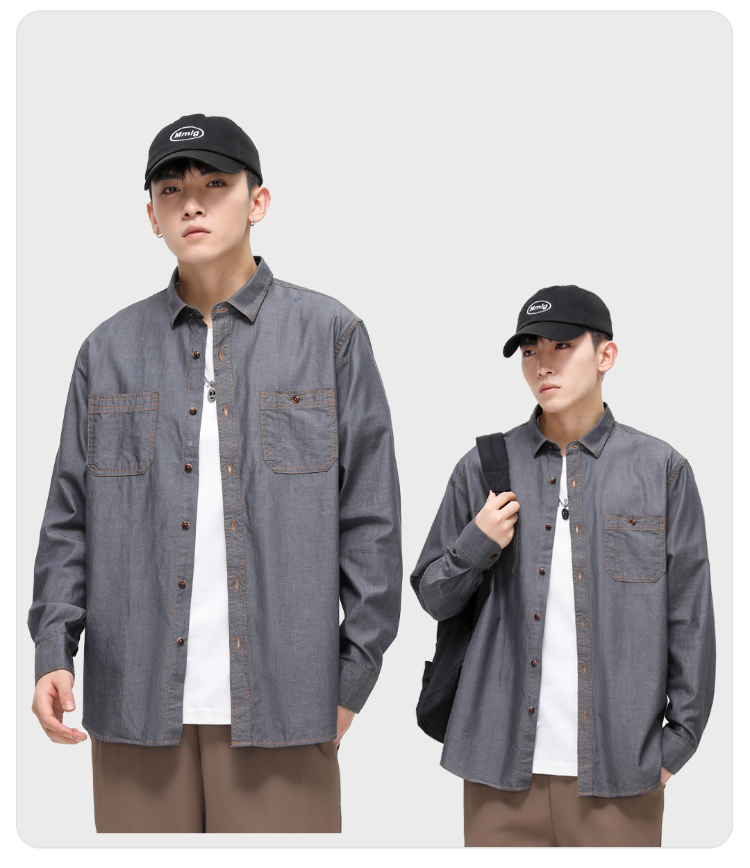 東雨男装秋冬男士牛仔衬衫休闲仿牛仔衬衣外套男时尚男装上衣批发