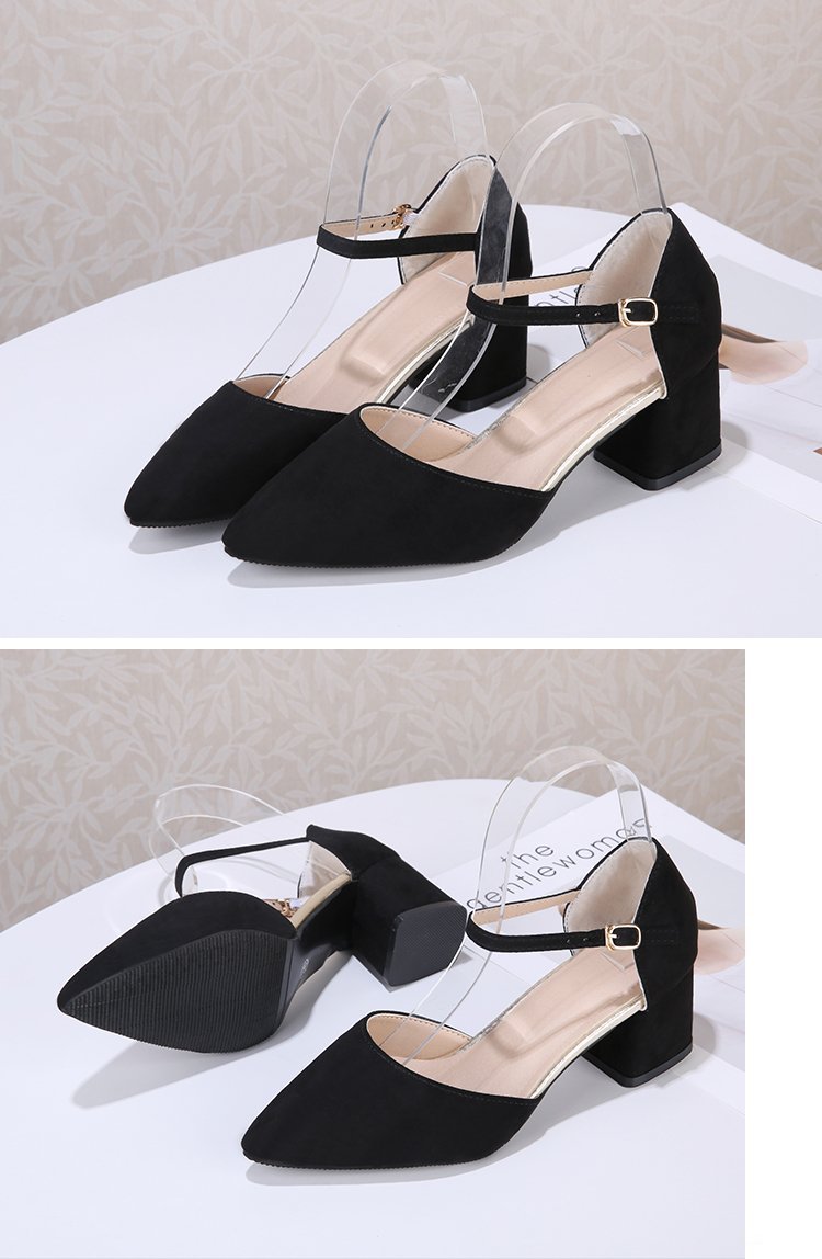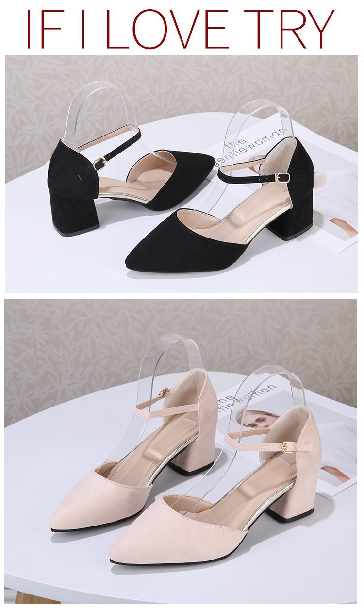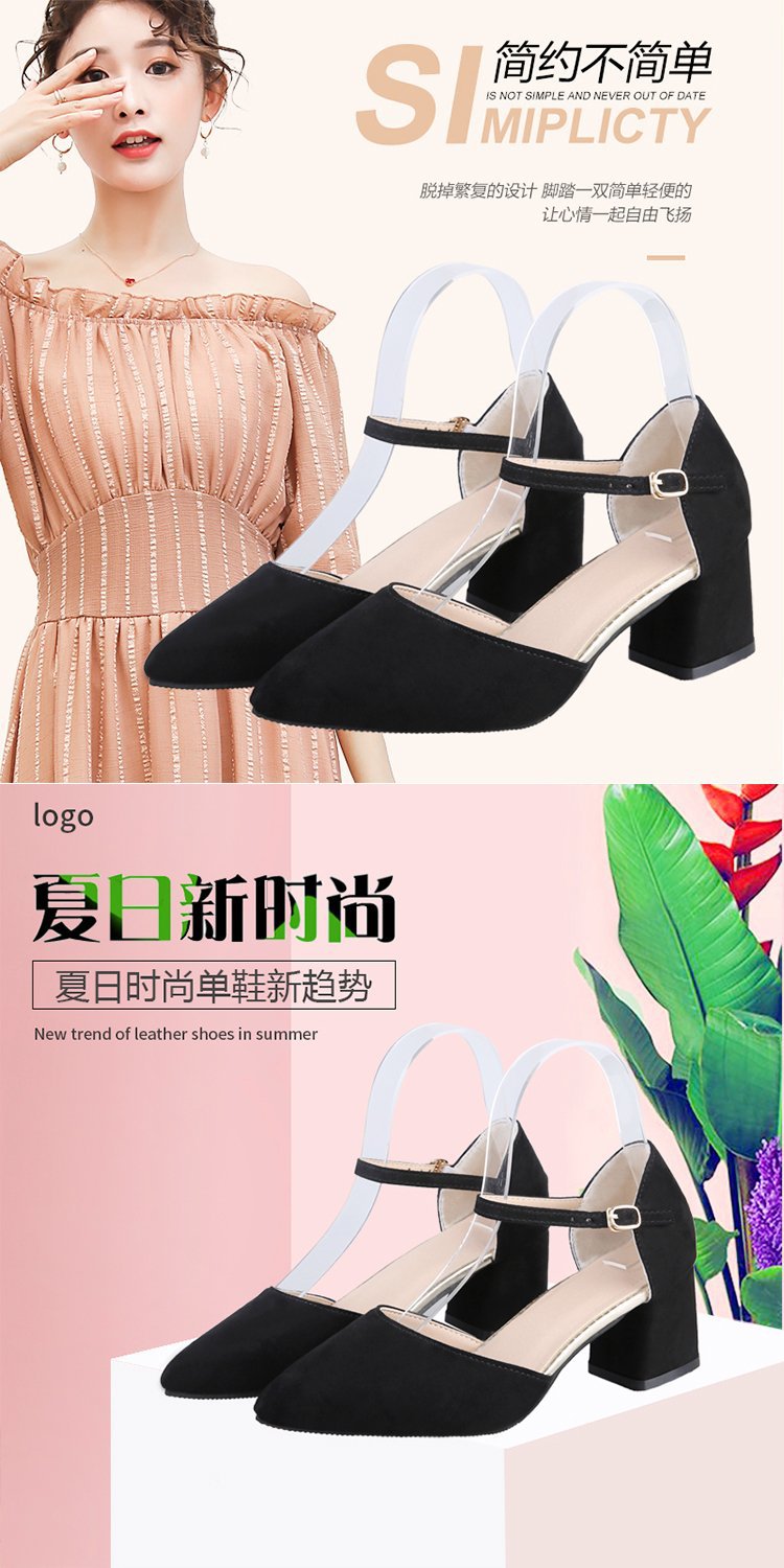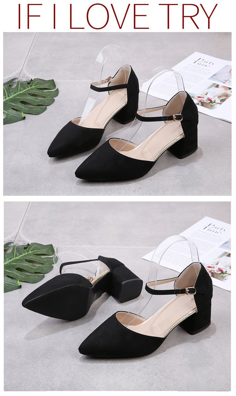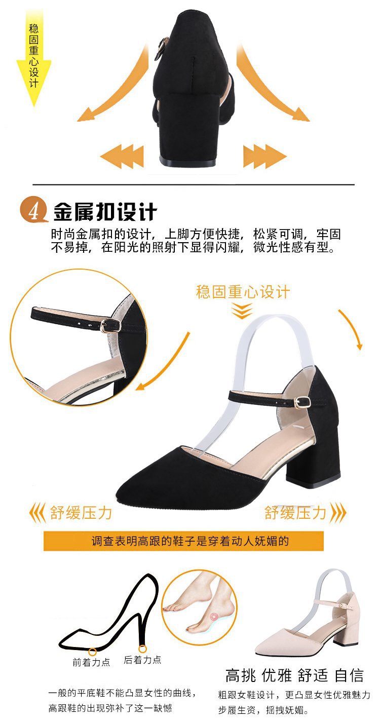 2024夏季新款女单鞋韩版尖头粗跟包跟侧空一字扣带女凉鞋批发