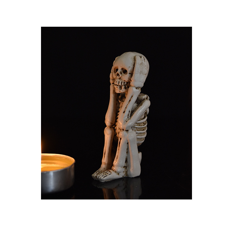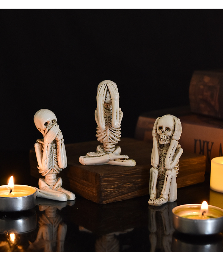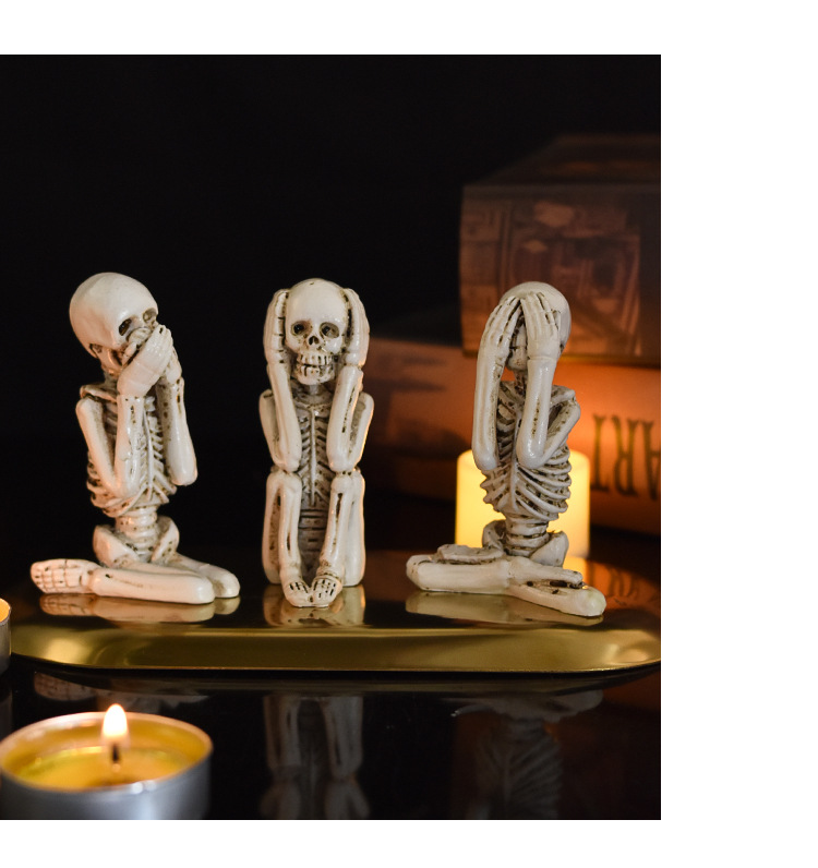 跨境万圣节骷髅头不听看说树脂工艺品摆件鬼节氛围恐怖装饰三件套